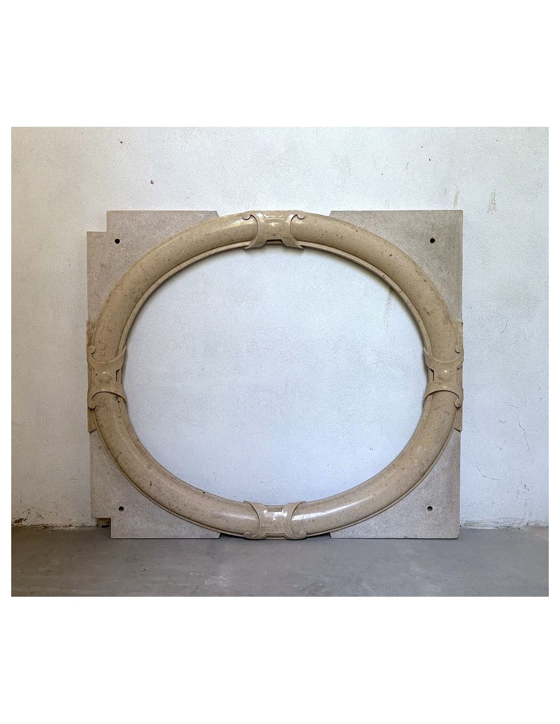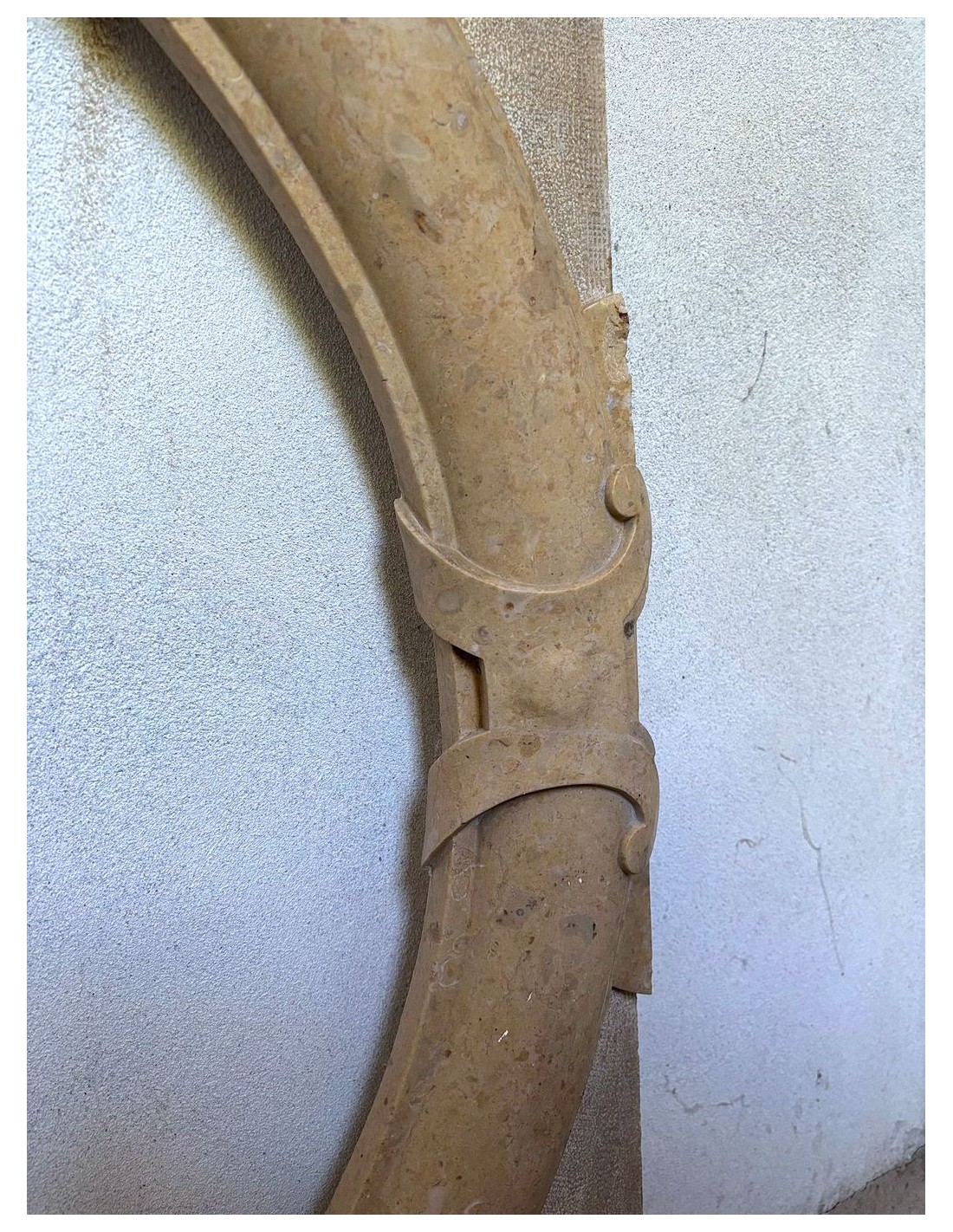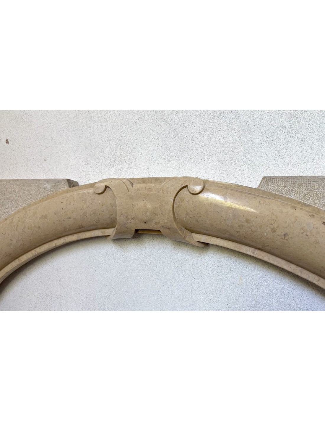 3) On the sides of the oval, which result in the classic “rope” color of Lunel marble, you see those “triangles” in other color.. Well, the difference in color is given only by the different finish of the same marble.... In the oval and the decorative cartouches the marble has been polished (and has a great patina..), while in the flat parts (the “triangles”) the marble surfaces have been “hammered” so that they come to a different, lighter color.. It was intended, in short, to make the carved (and more important) part stand out from the background part, reserved more for the practical setting up of the fireplace itself. It is in these four side parts, in fact, that the holes for attachment to the wall are located....