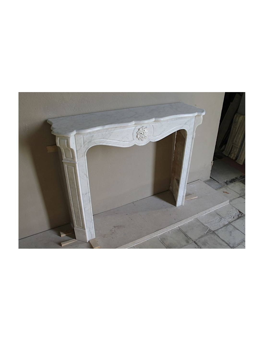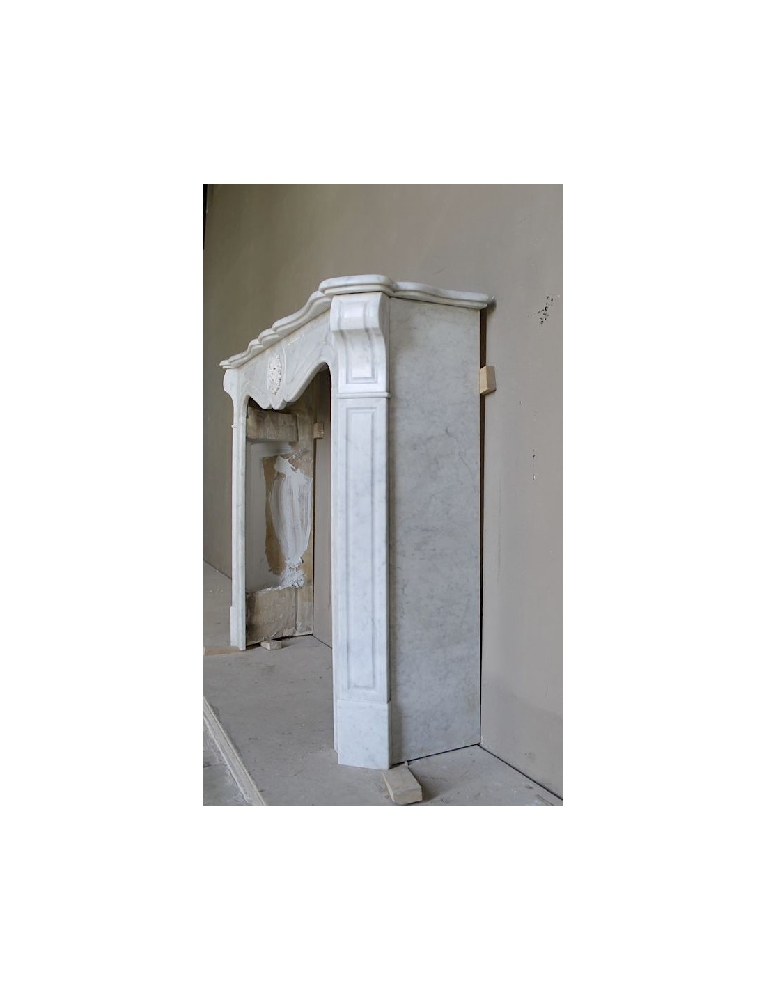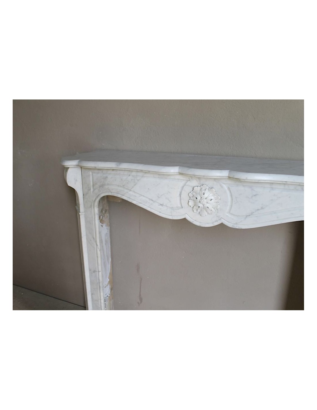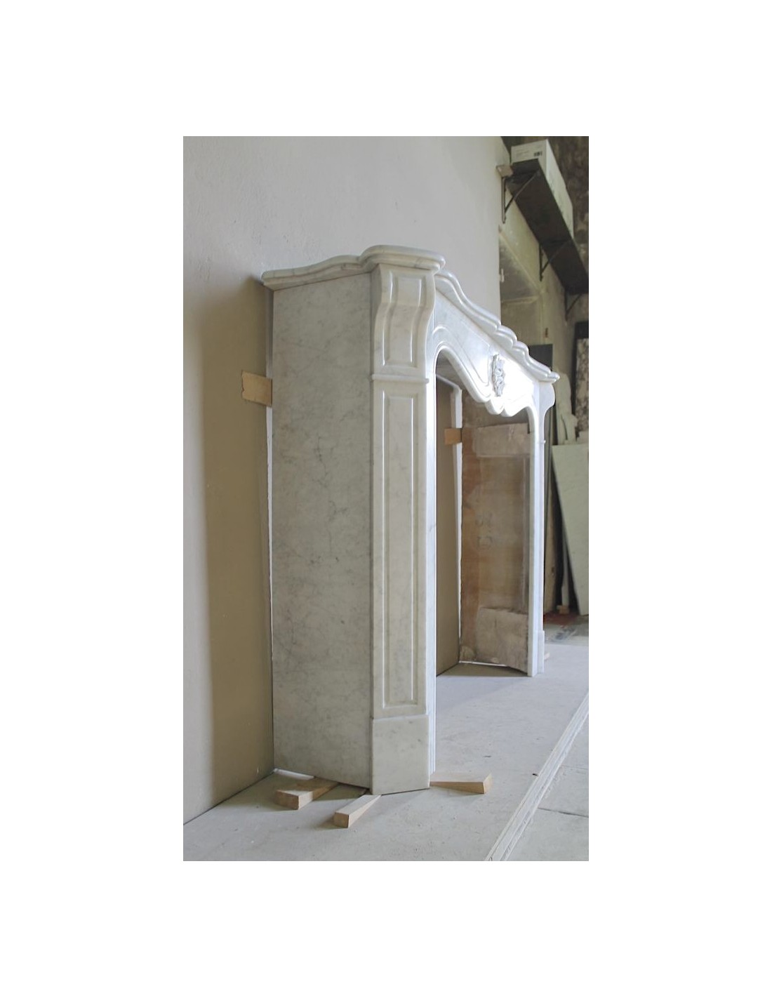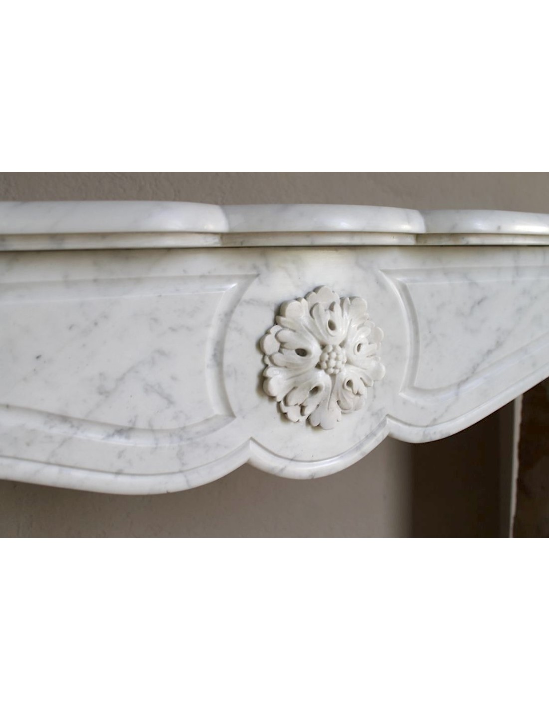This fireplace is part of the most numerous stylistic family in the world, that of the “Pompadour” fireplaces...Yet it is also a fireplace that is not only original, but even made in a single mantel, what insiders call a“unique piece”, a mantel that appears much more important than its brethren. And how does one explain such a difference?