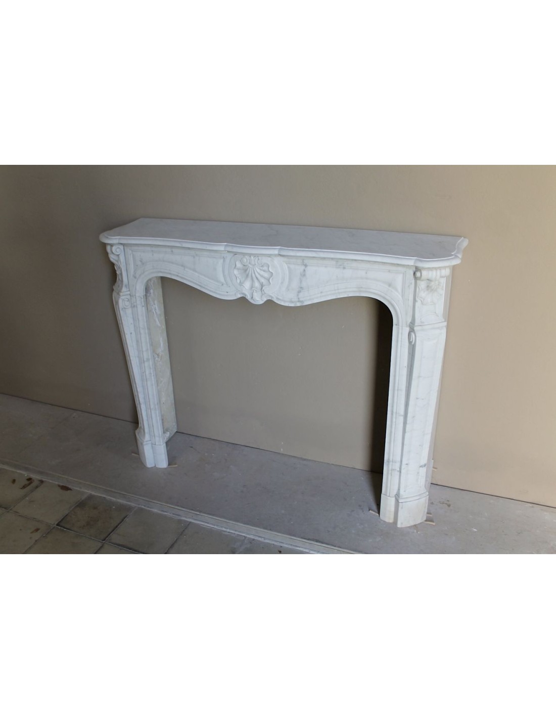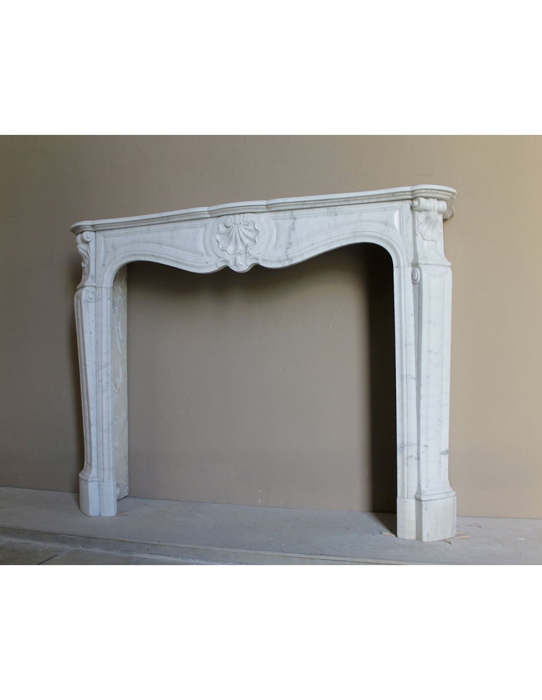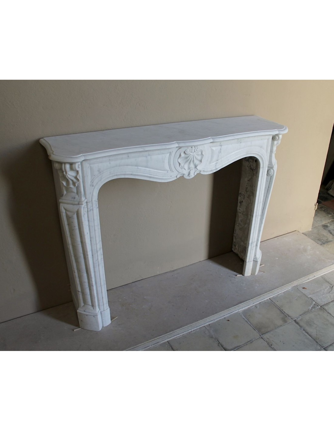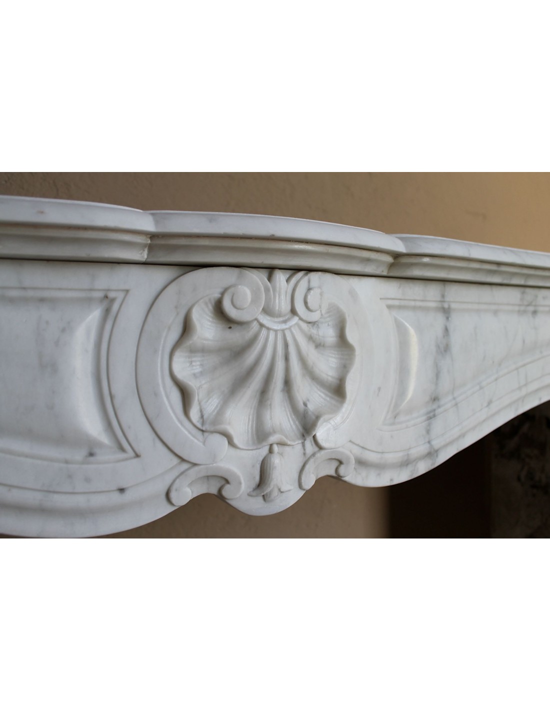 Louis XV “Trois Coquilles” fireplace mantel in white Carrara marble, Baroque style and 19th century, at a discounted price.