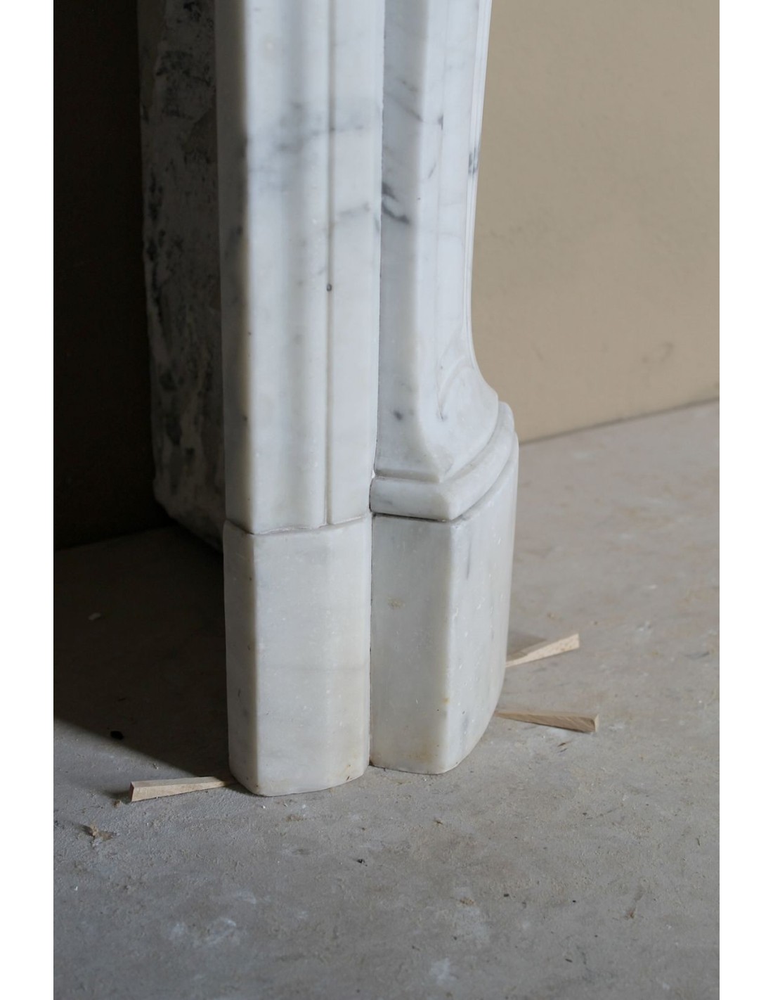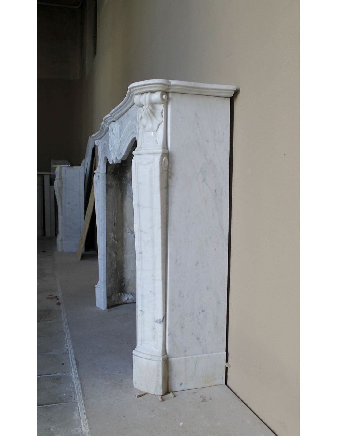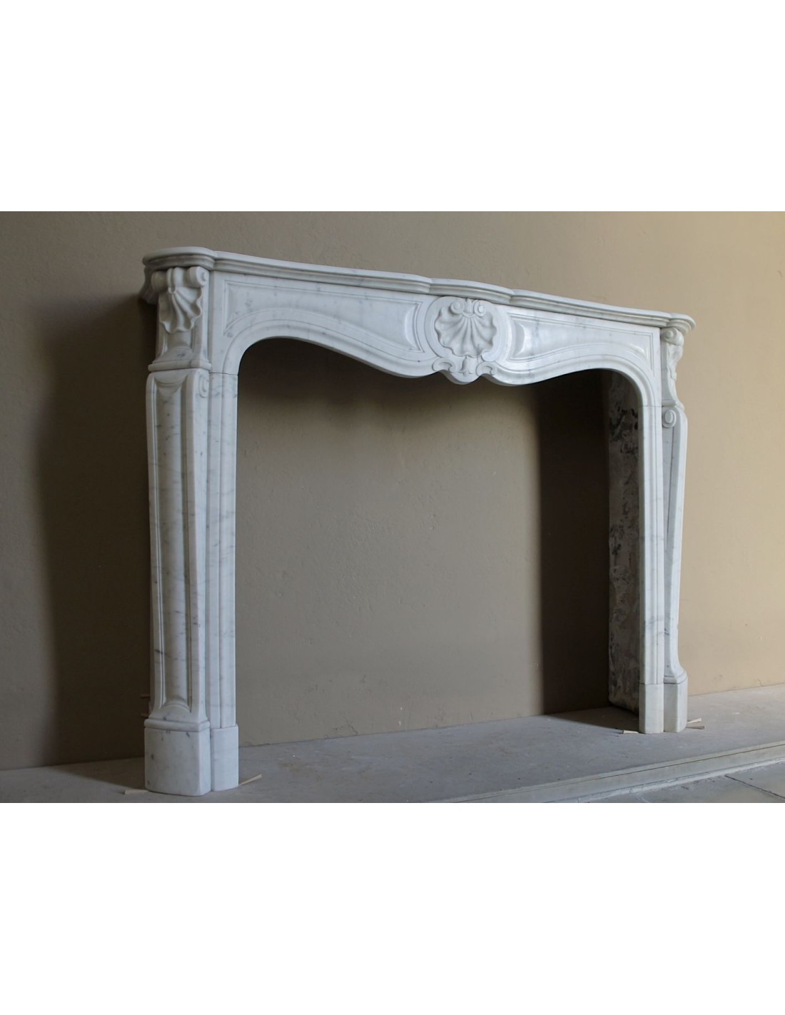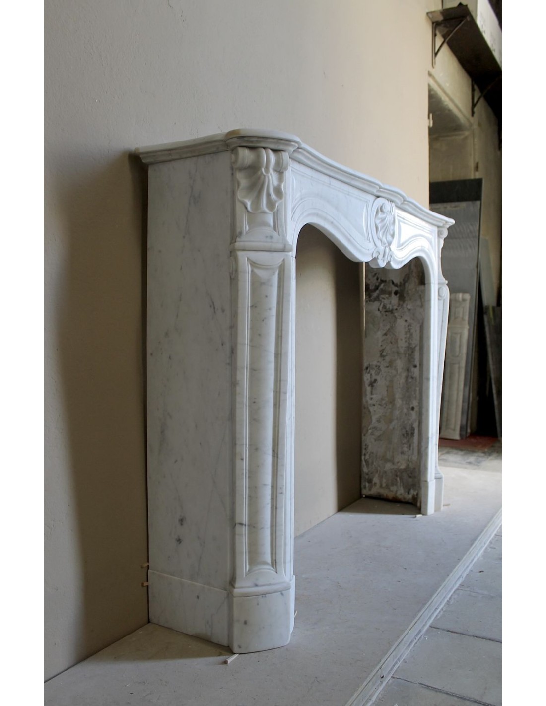 Louis XV “Trois Coquilles” fireplace mantel in white Carrara marble, Baroque style and 19th century, at a discounted price.
