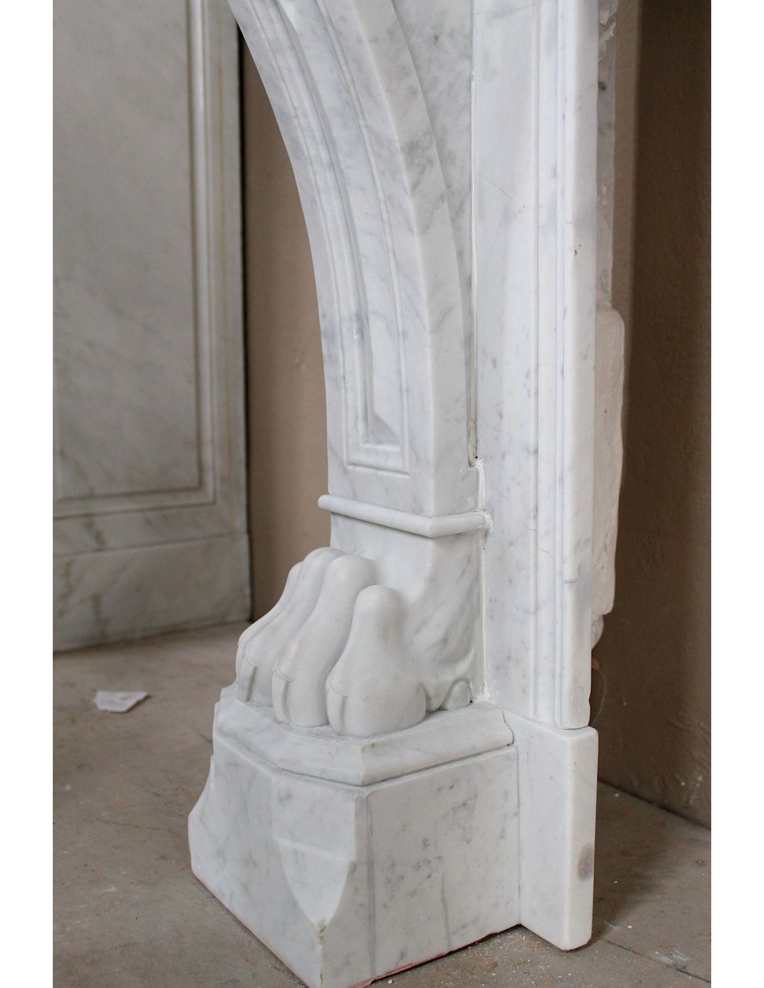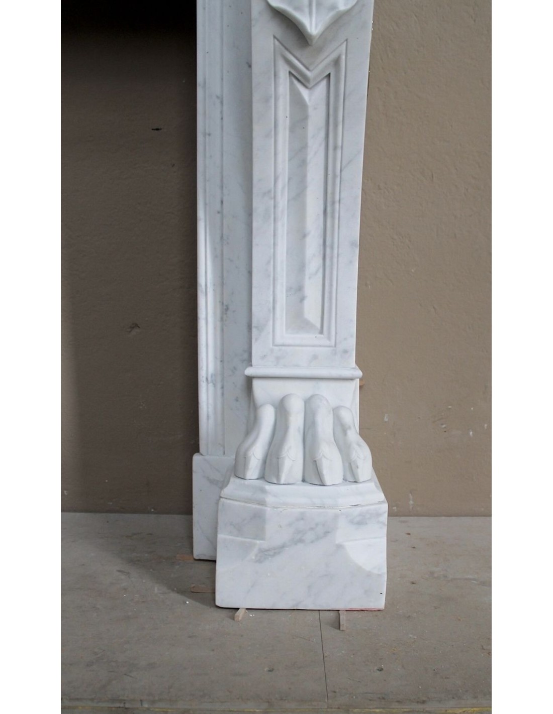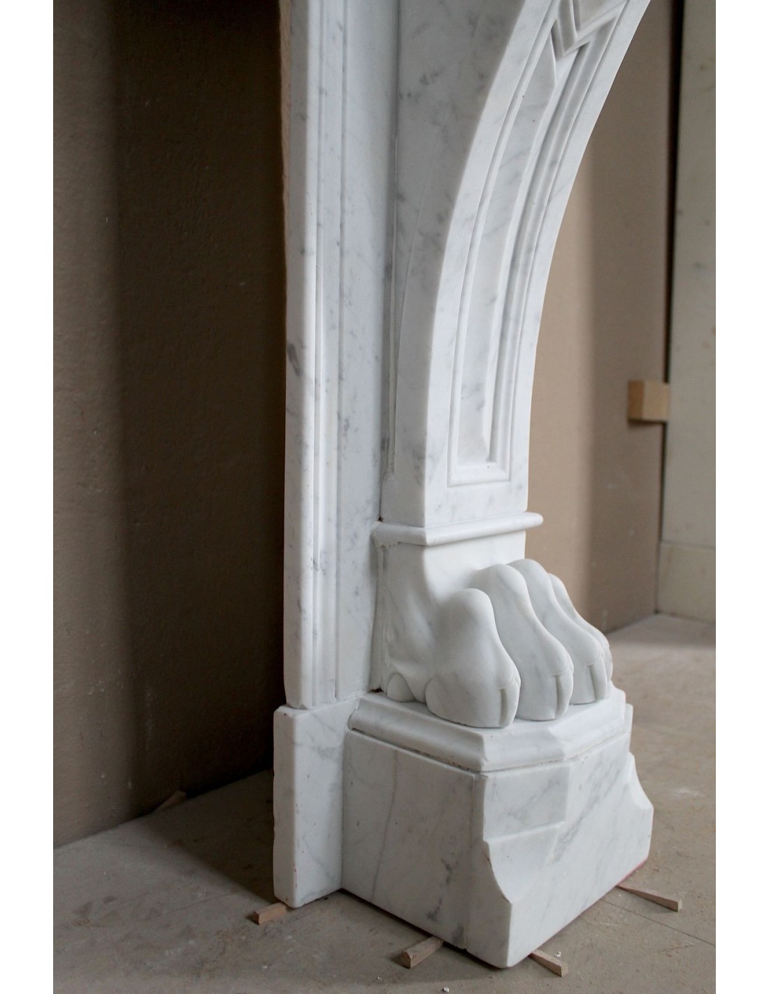 007 OCC FIREPLACE MANTEL “GRIFFE DE LION” IN WHITE CARRARA MARBLE WITH DIAMOND-POINT CARVING
