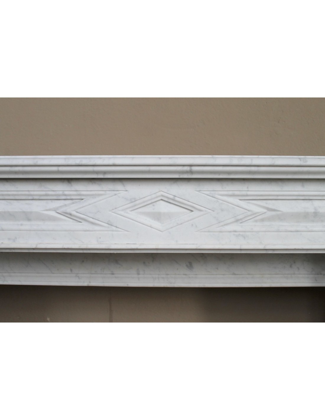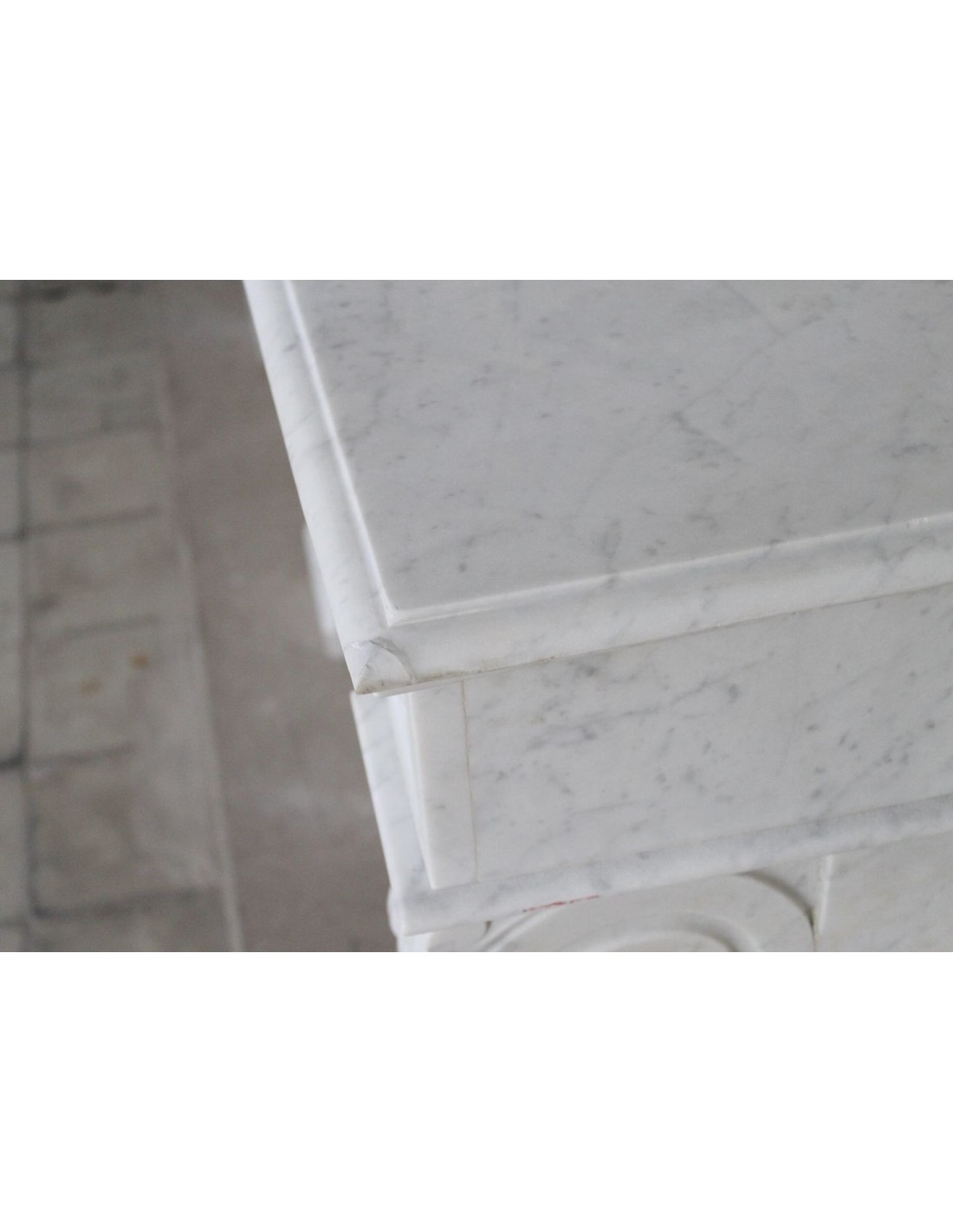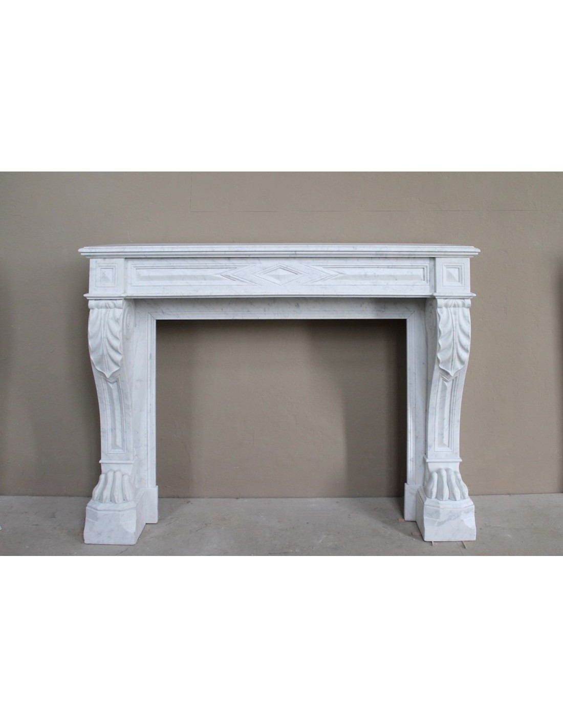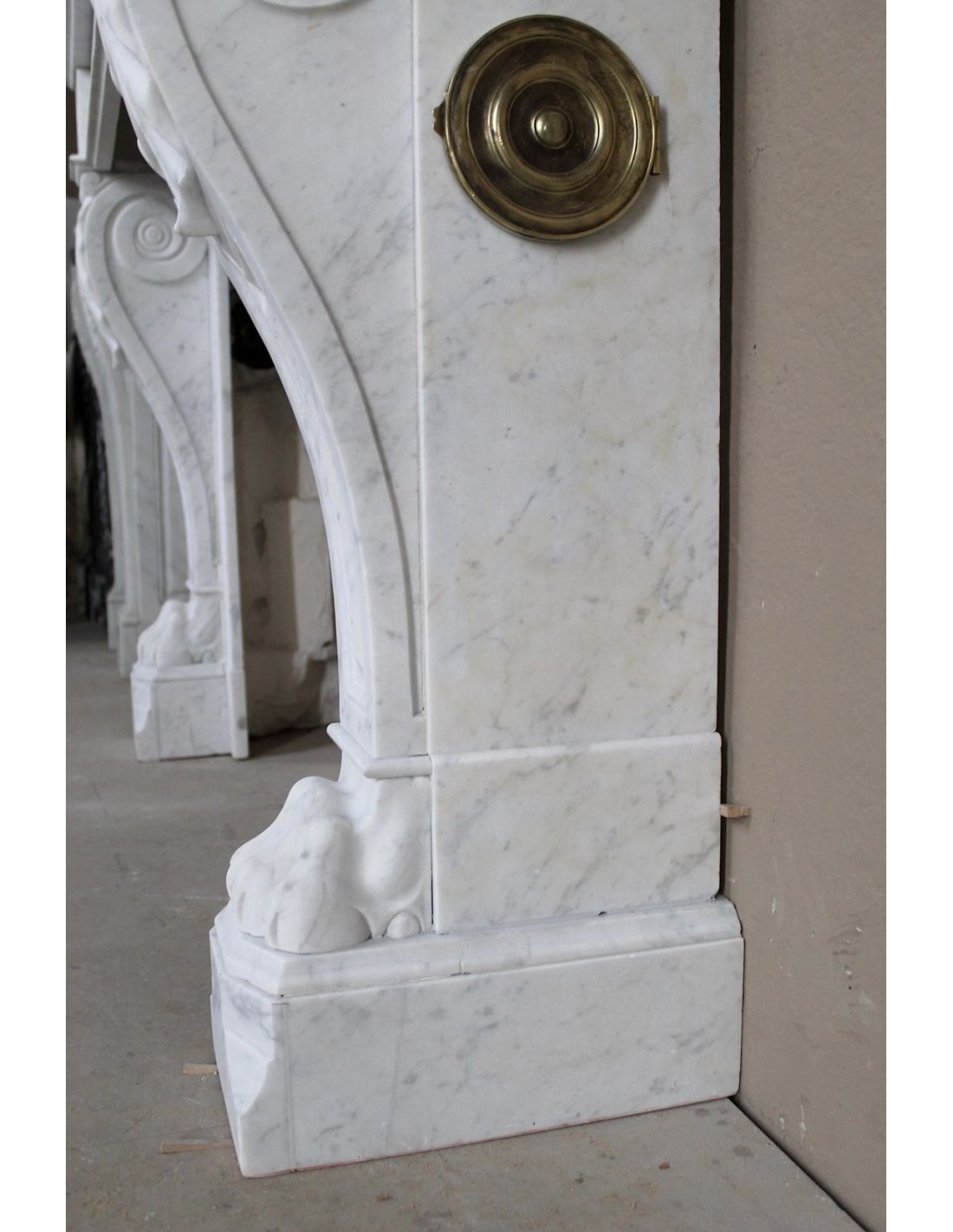 007 OCC FIREPLACE MANTEL “GRIFFE DE LION” IN WHITE CARRARA MARBLE WITH DIAMOND-POINT CARVING