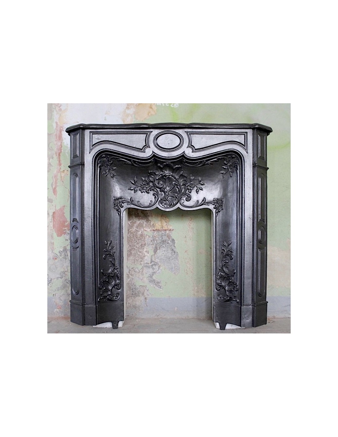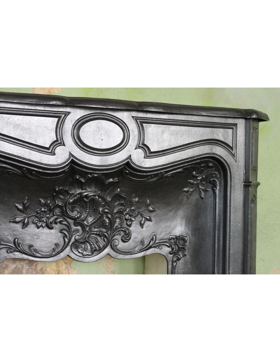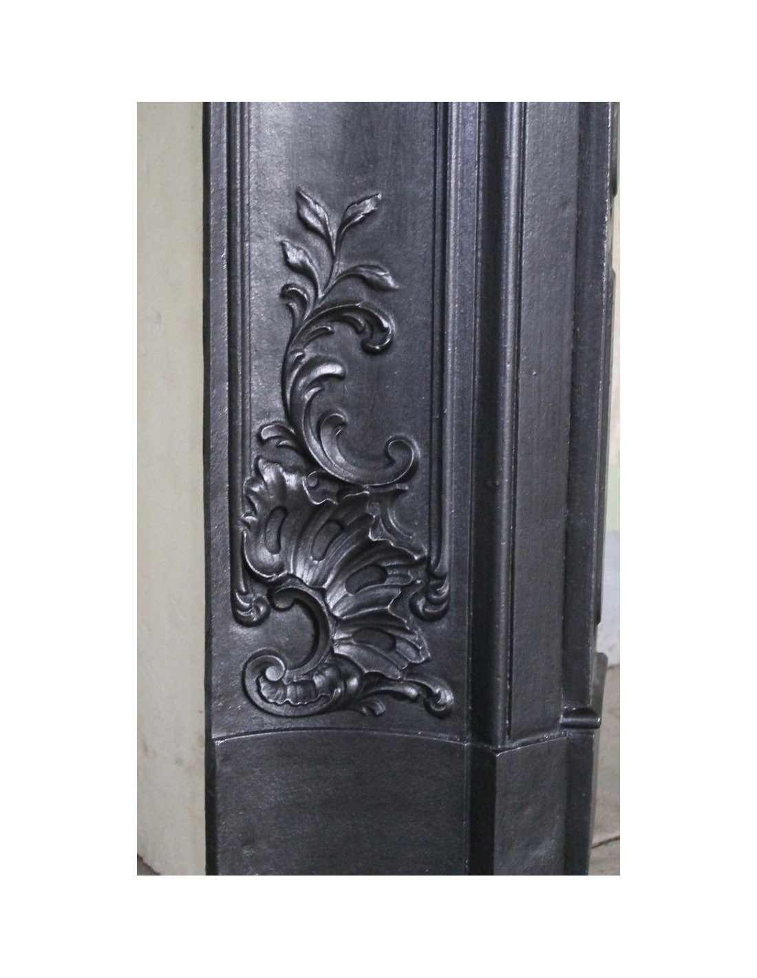 THIS CAST IRON FIREPLACE IS ONE OF THE MOST FAMOUS CAST IRON MANTELS AMONG THOSE SOURCED FROM THE PARISIAN AND HIGHLY RENOWNED "LARCHER" ART FOUNDRY.