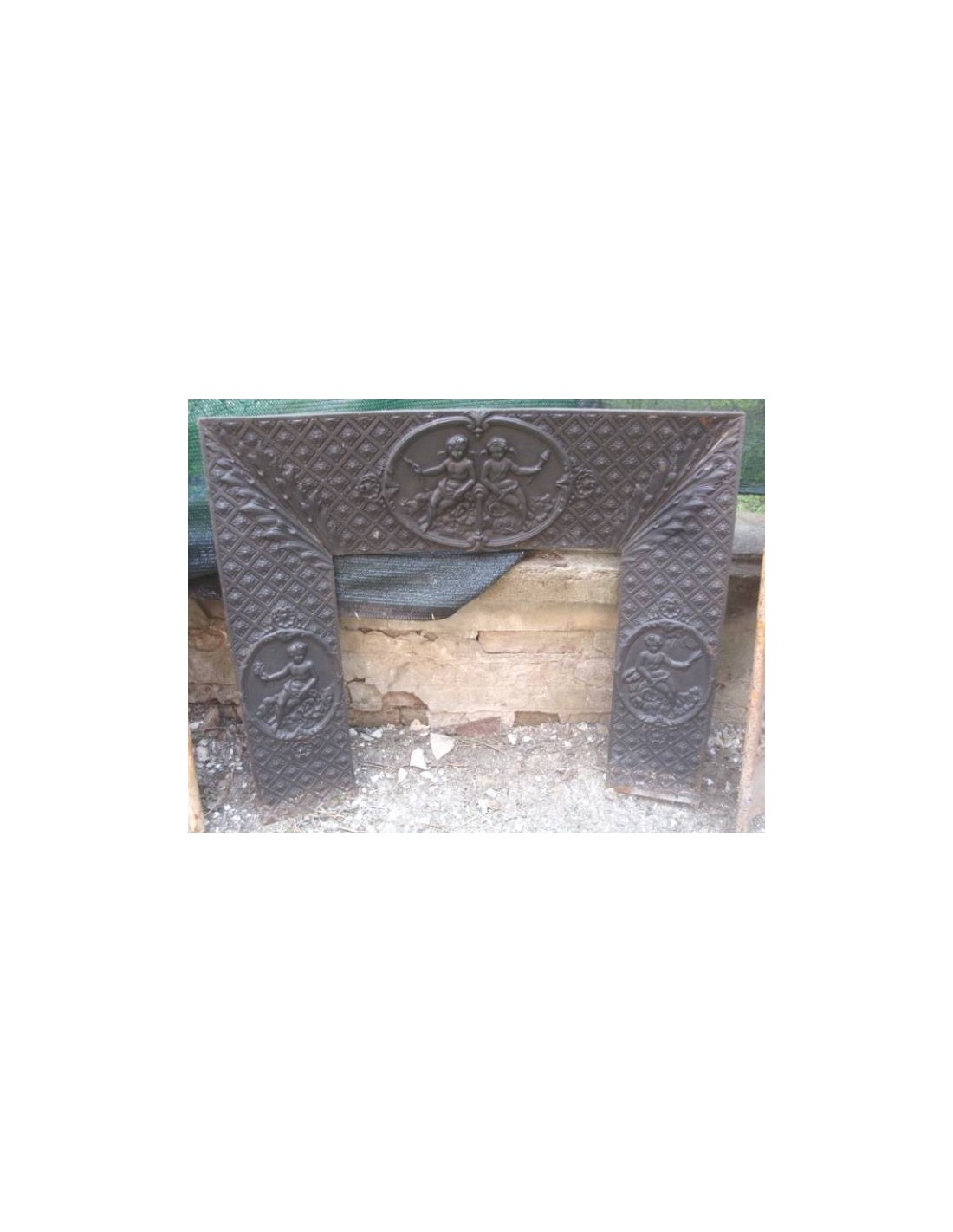 CONTROCUORE IN GHISA IDONEO A CAMINETTI LUIGI XVI O COMUNQUE A CAMINETTI NEOCLASSICI IN GENERE, EPOCA PRIMA META' OTTOCENTO, PERFETTISSIMA CONSERVAZIONE, PROVENIENZA PARIGI.
