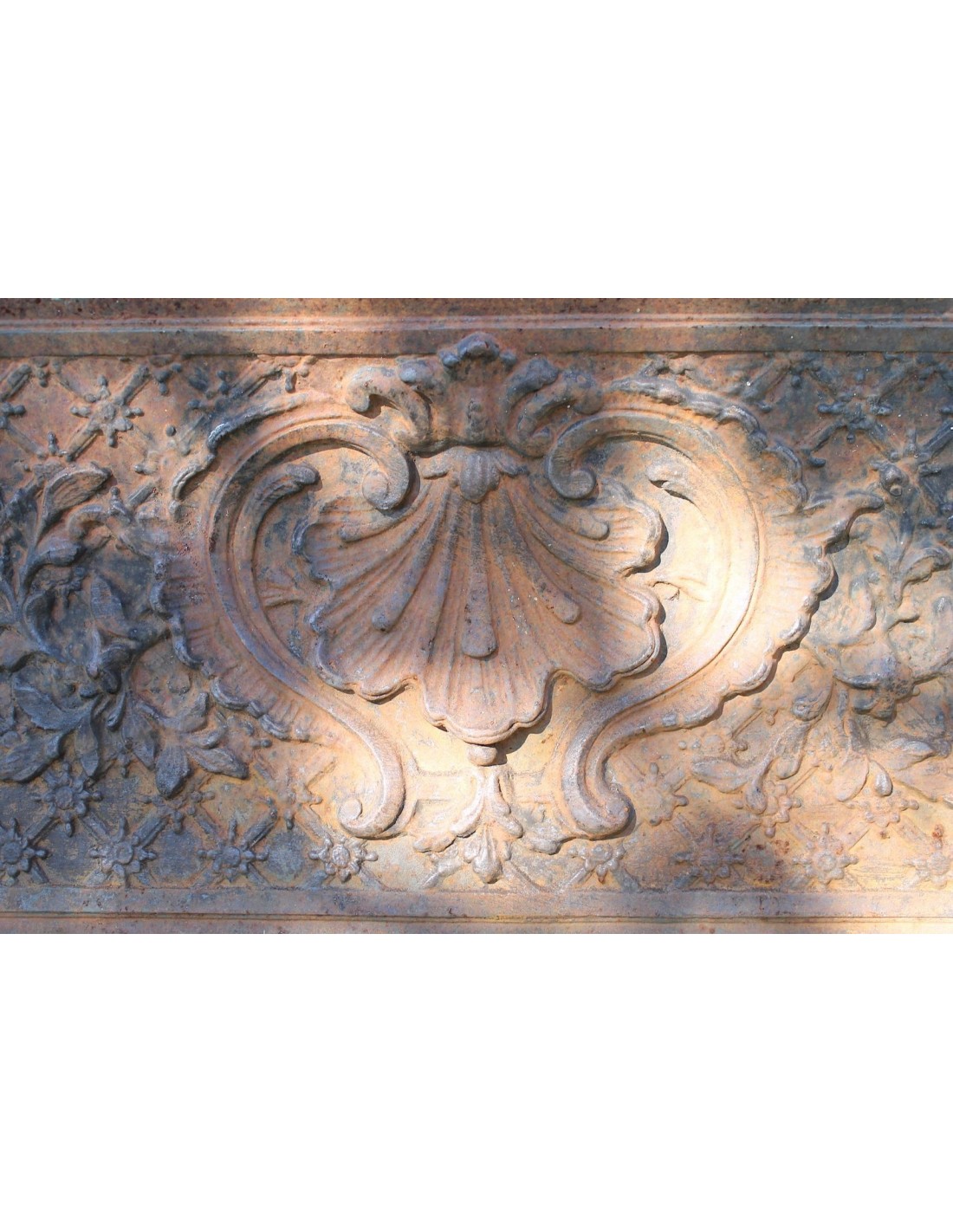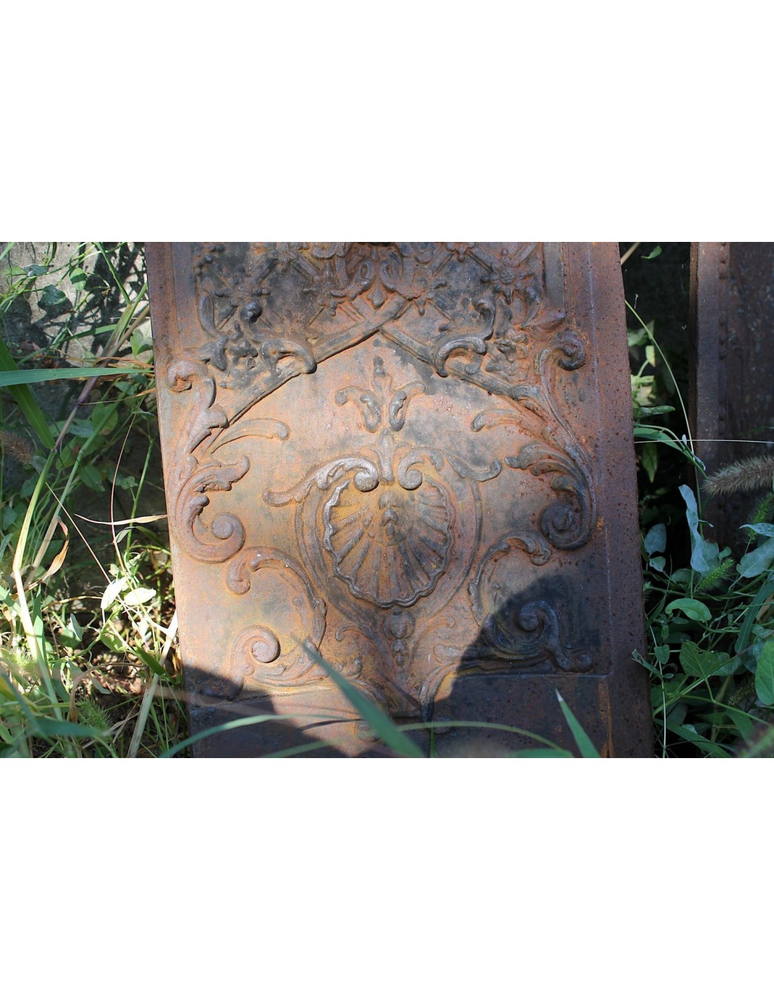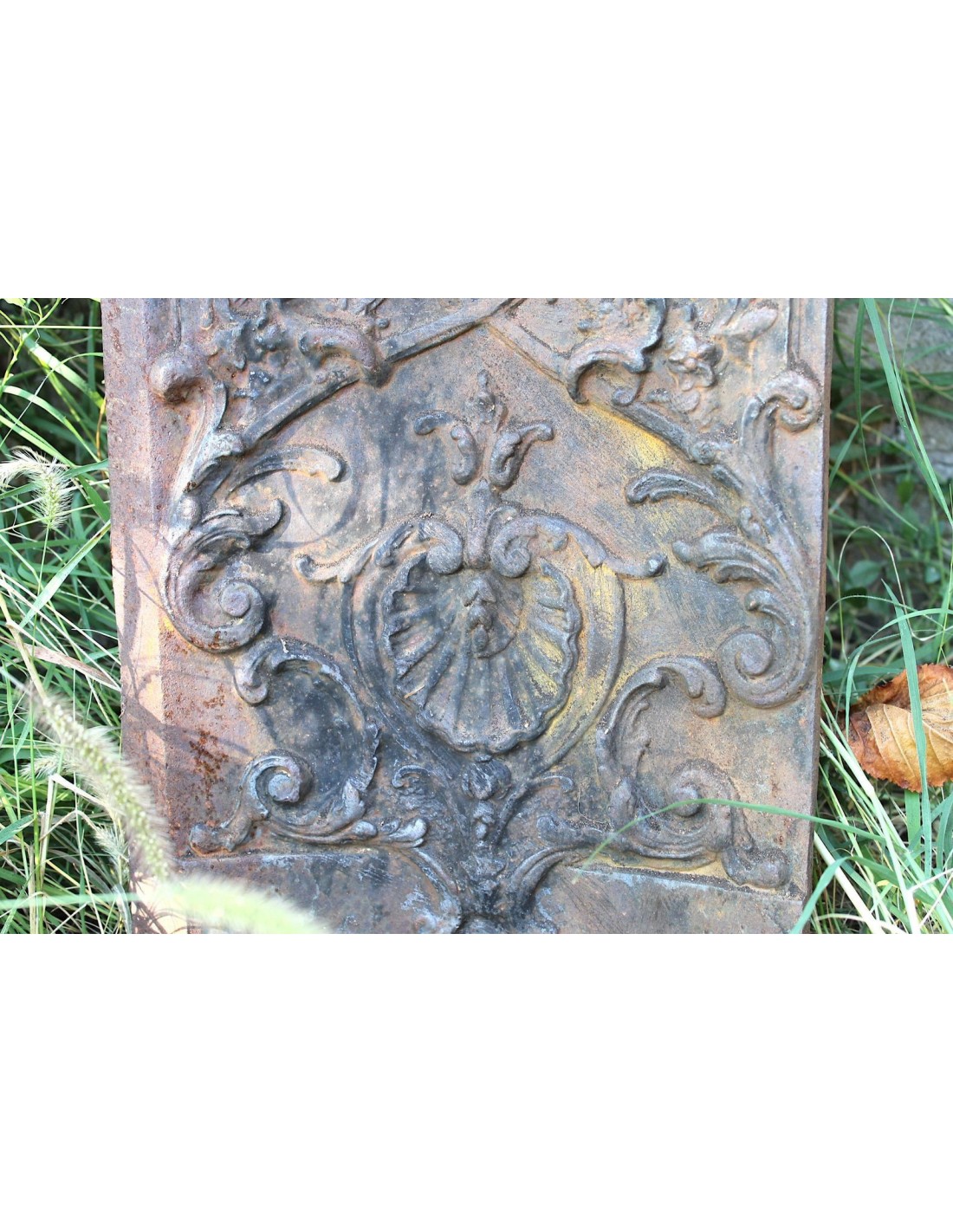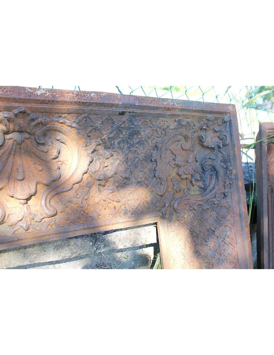 CG 048 ECCEZIONALE CONTROCUORE CAMINO LUIGI XVI "COQUILLE" IN FUSIONE DI GHISA D'ARTE