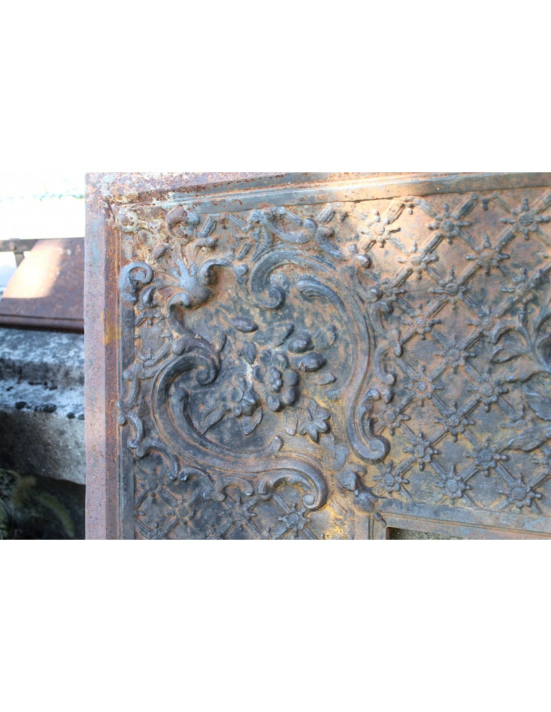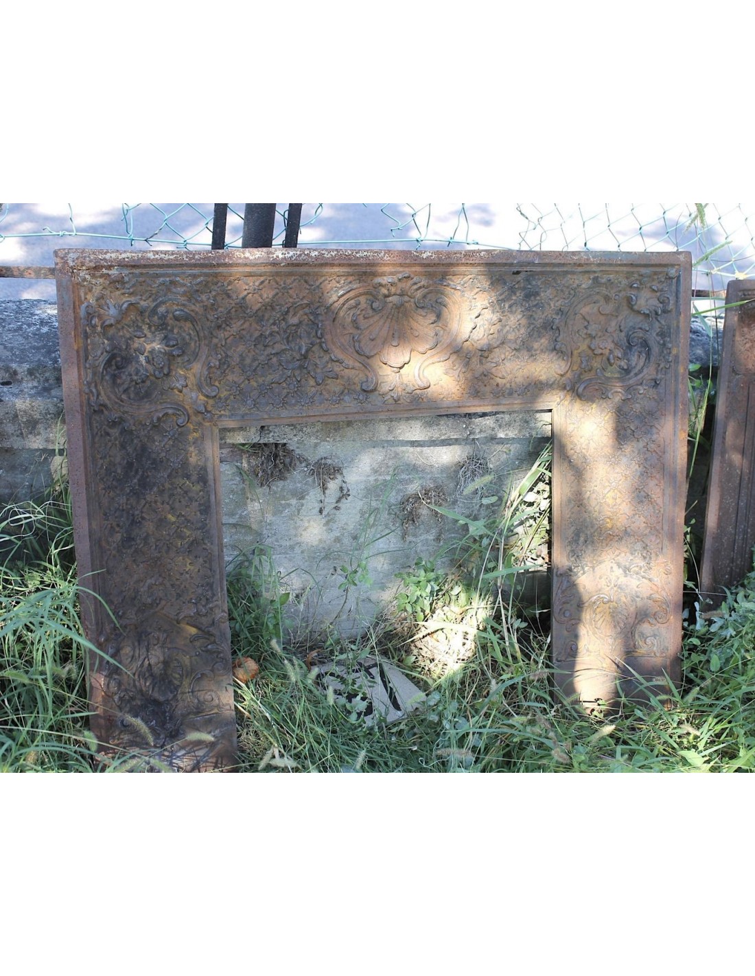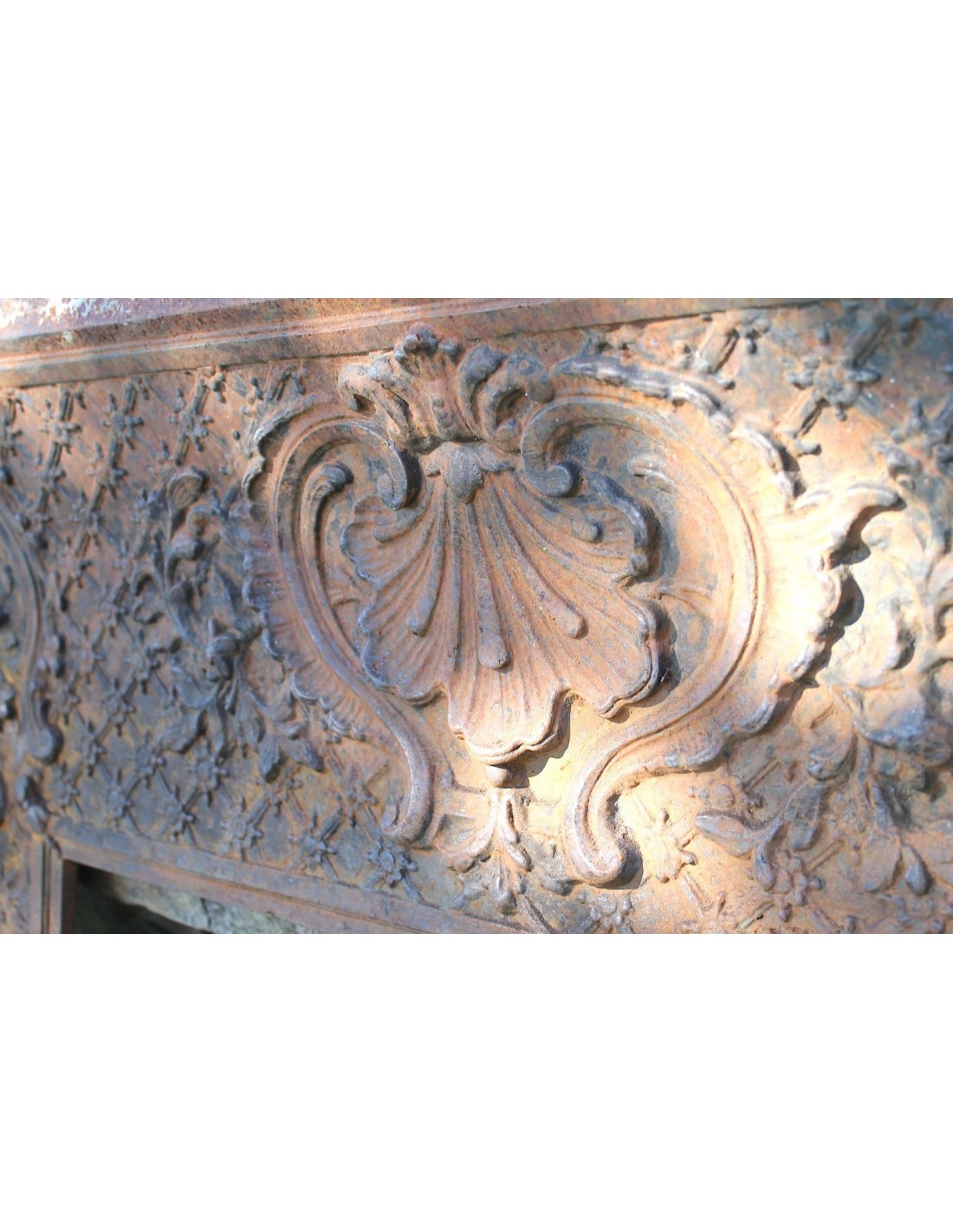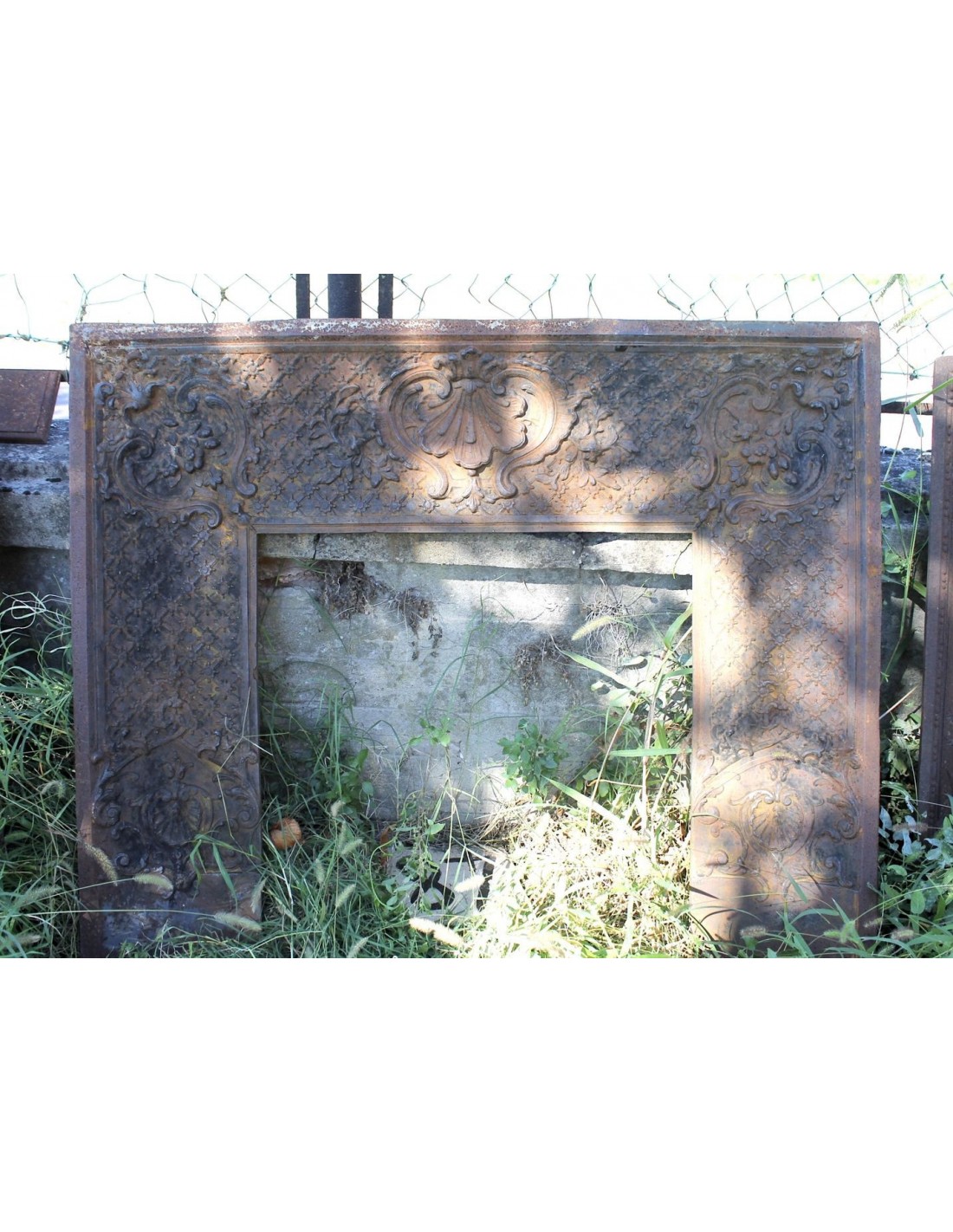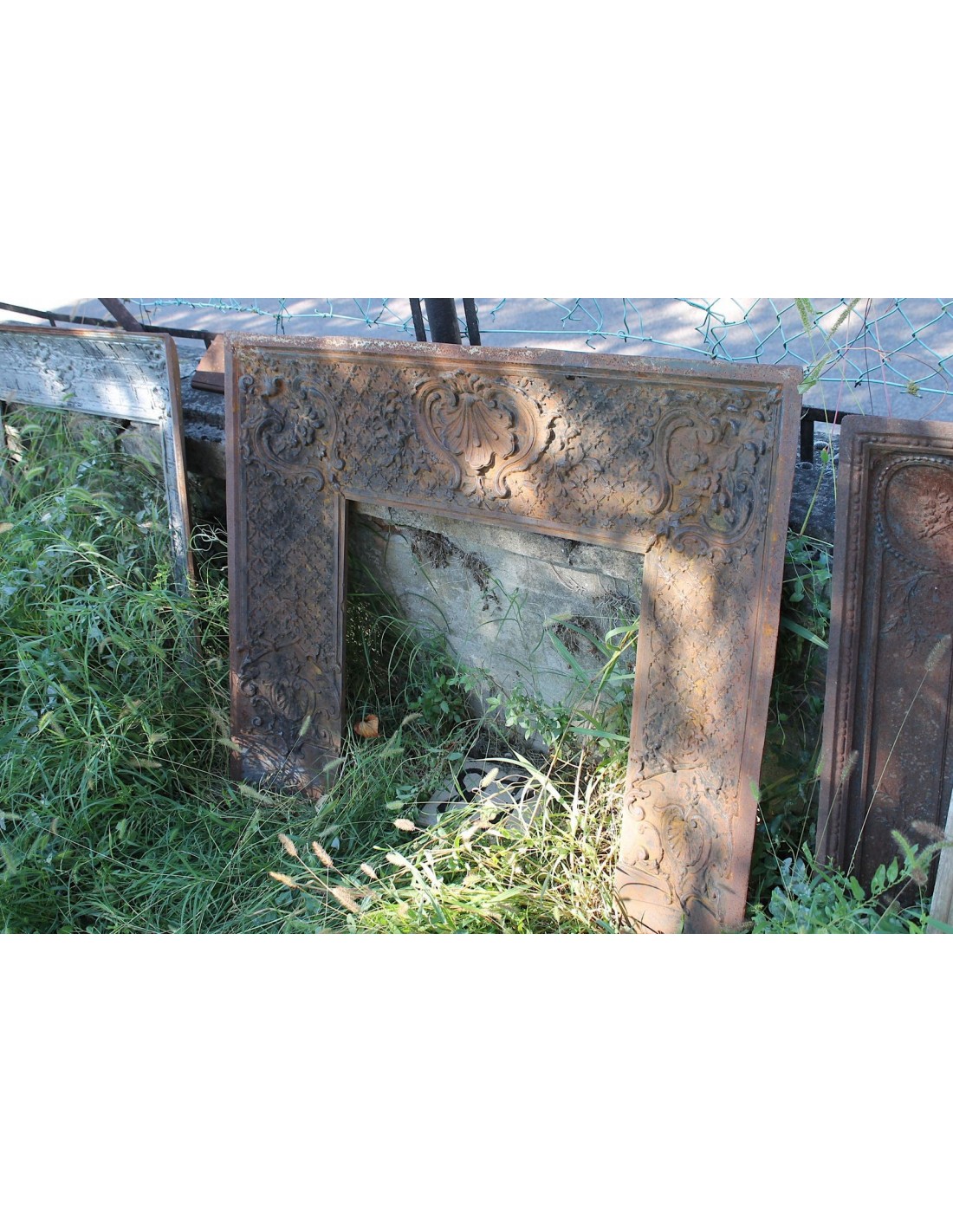 CG 048 ECCEZIONALE CONTROCUORE CAMINO LUIGI XVI "COQUILLE" IN FUSIONE DI GHISA D'ARTE
