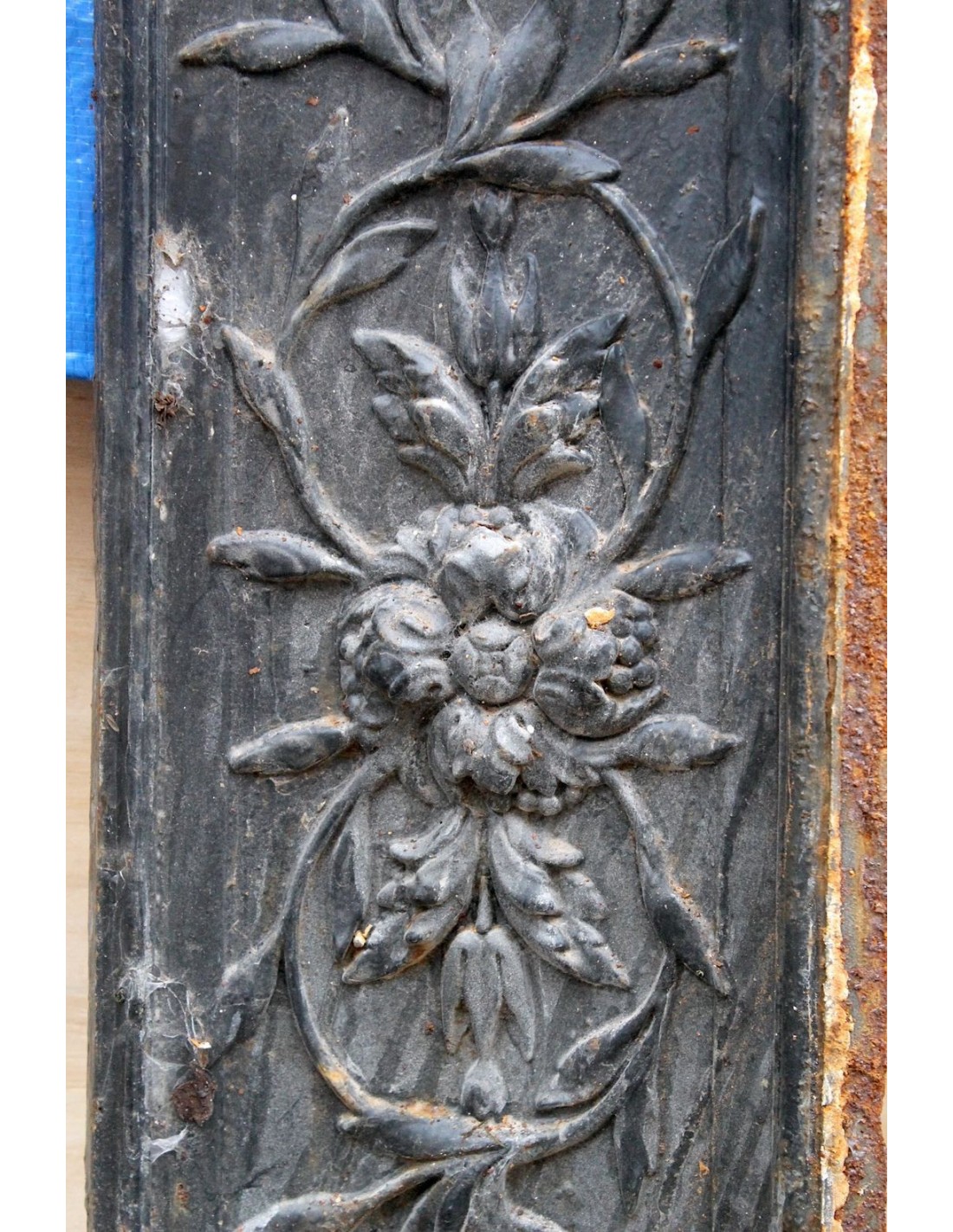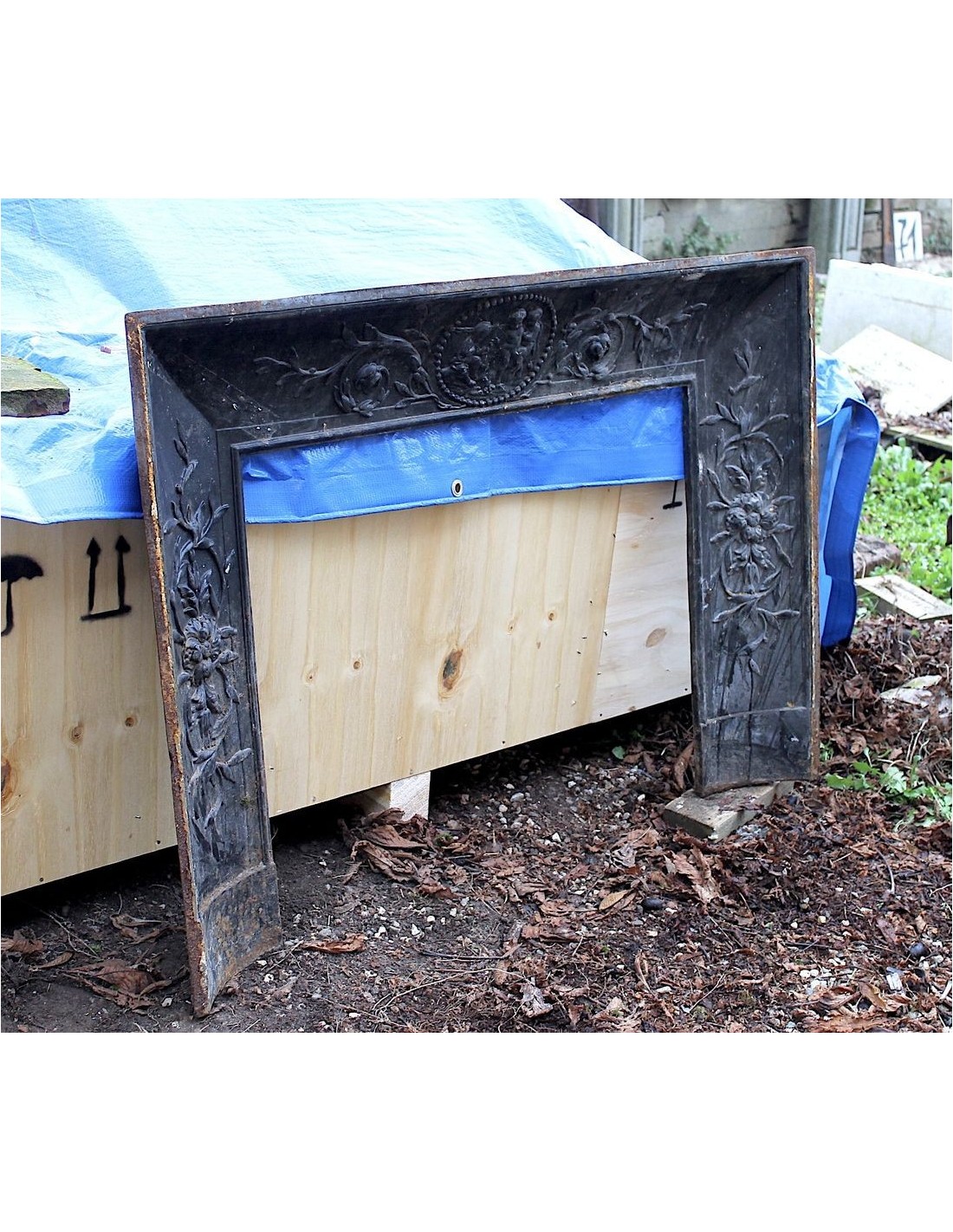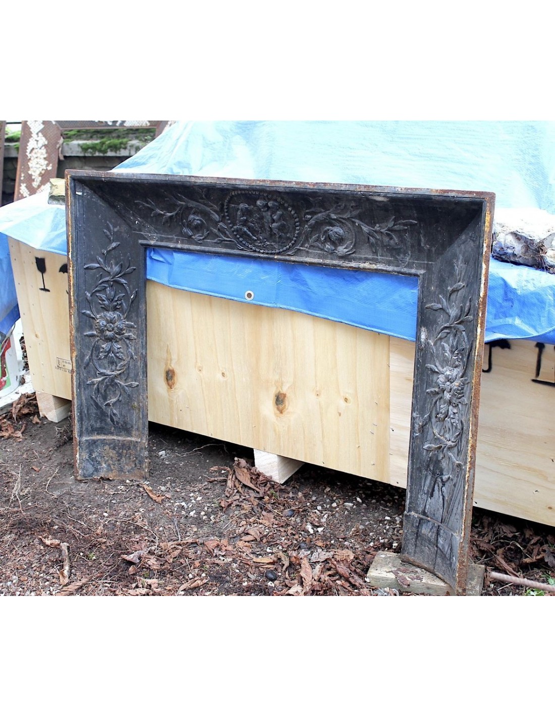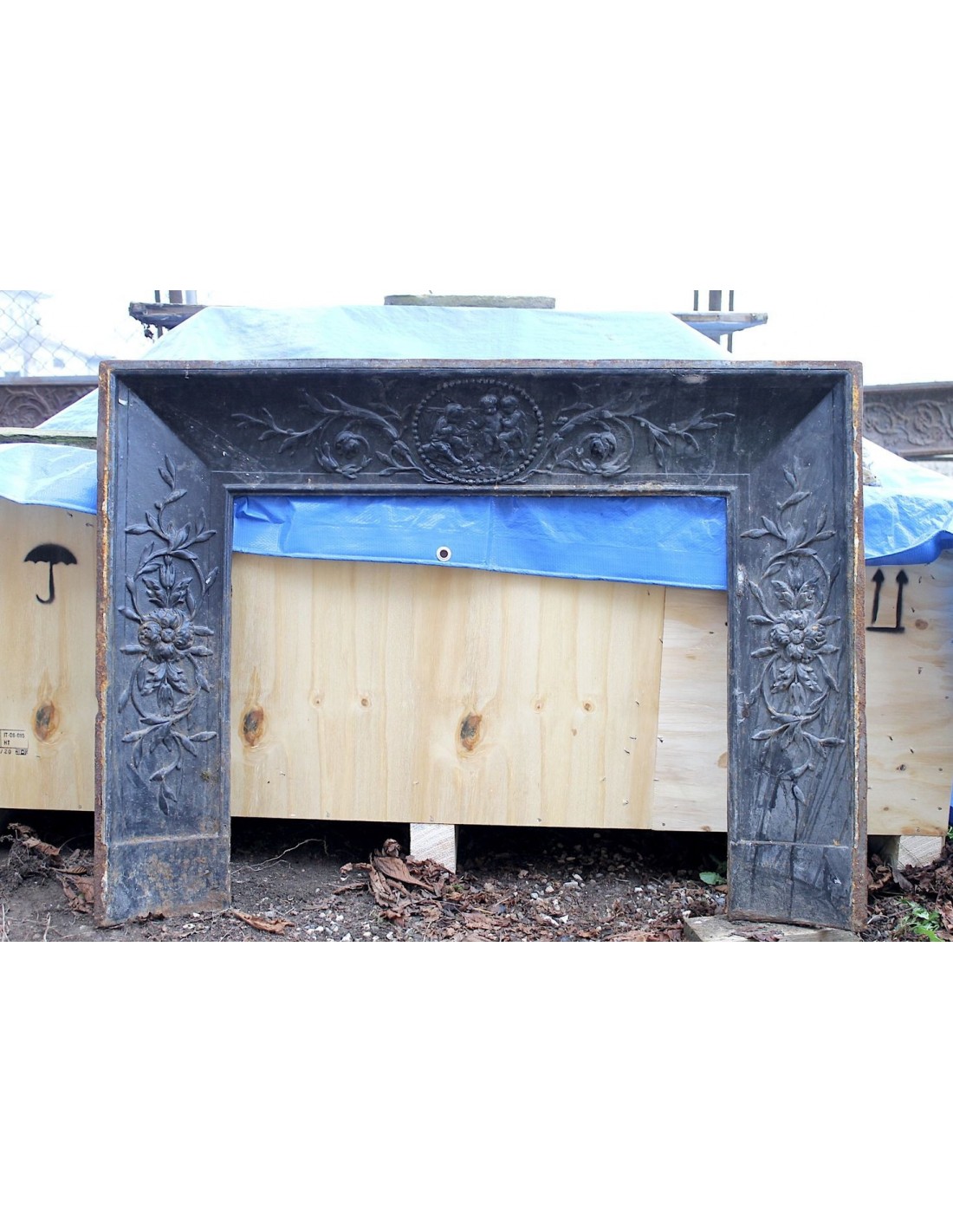 In particolare, l'esemplare che vi stiamo presentando reca al centro del frontale un trittico di putti intorno ad un fuoco, lo stesso "stampo" che anima uno dei caminetti più famosi della fonderia Larcher, il ricercatissimo "Cheminée Bebè".