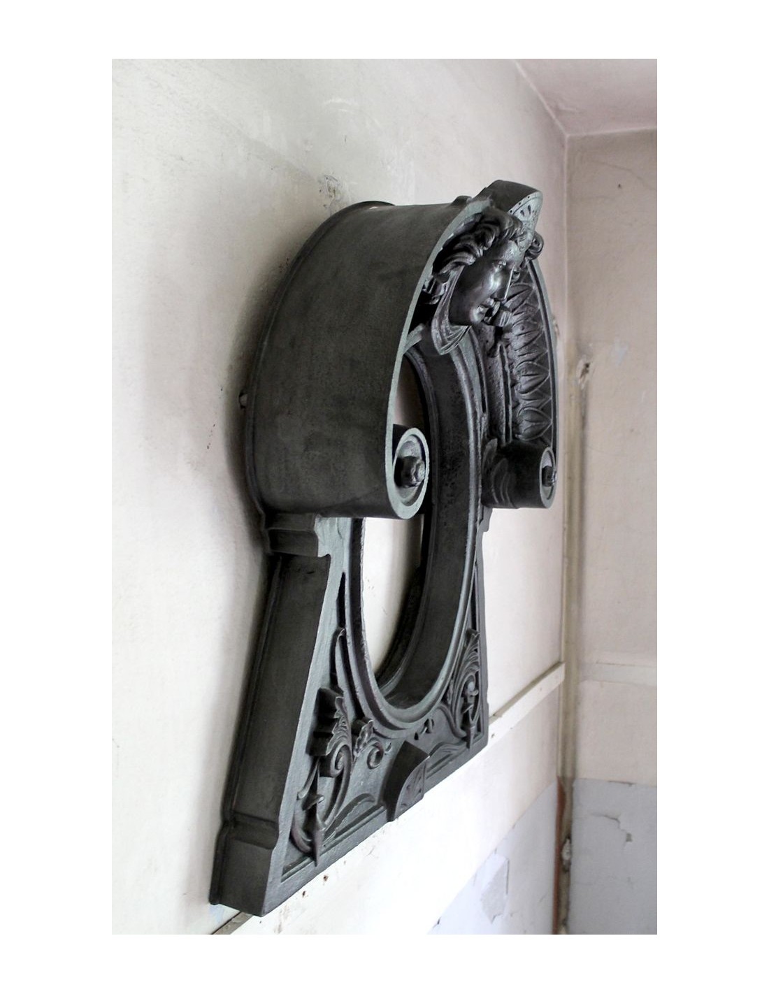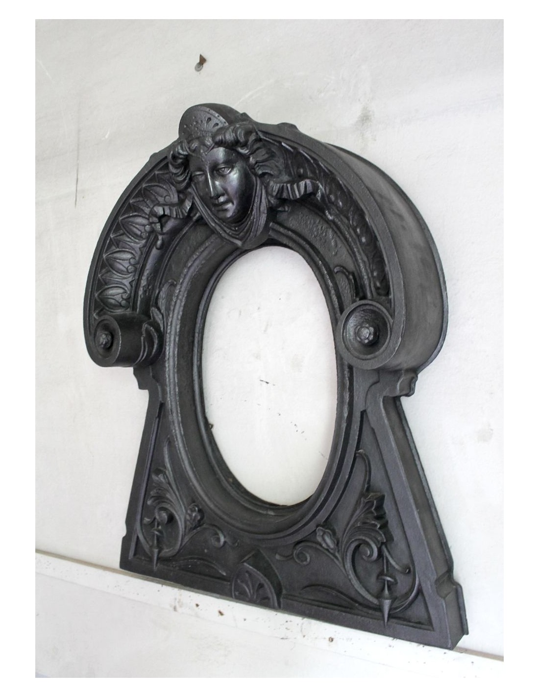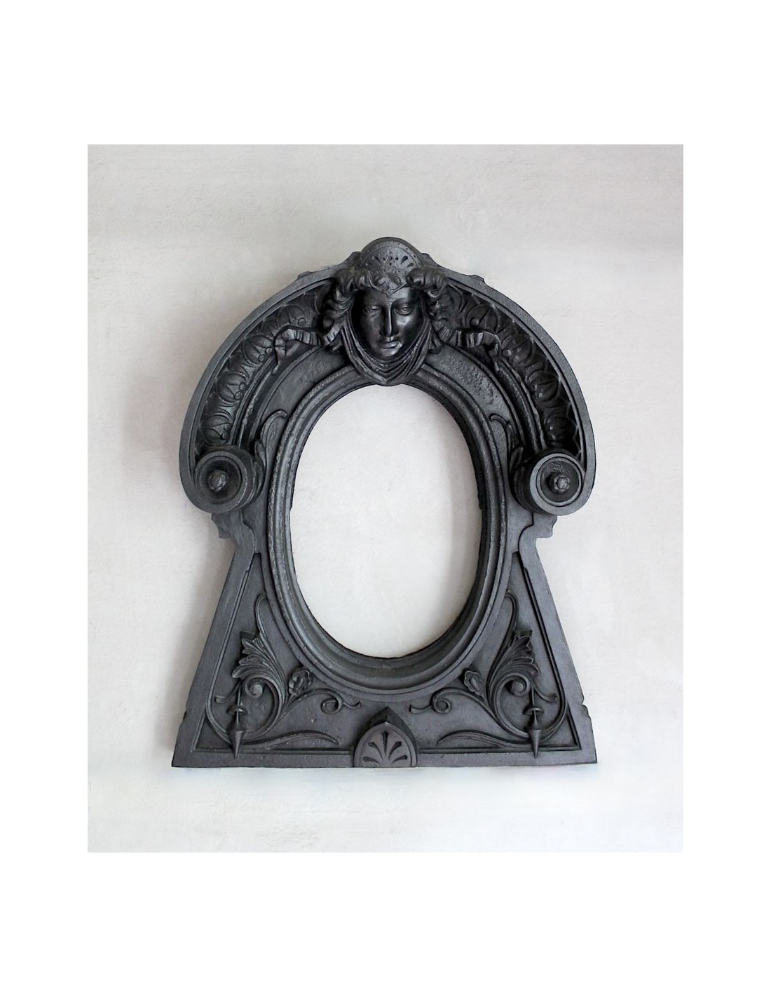 010GH TINY LOVELY ŒIL DE BŒUF “TÊTE DE FEMME” CAST IRON MANTELPIECE