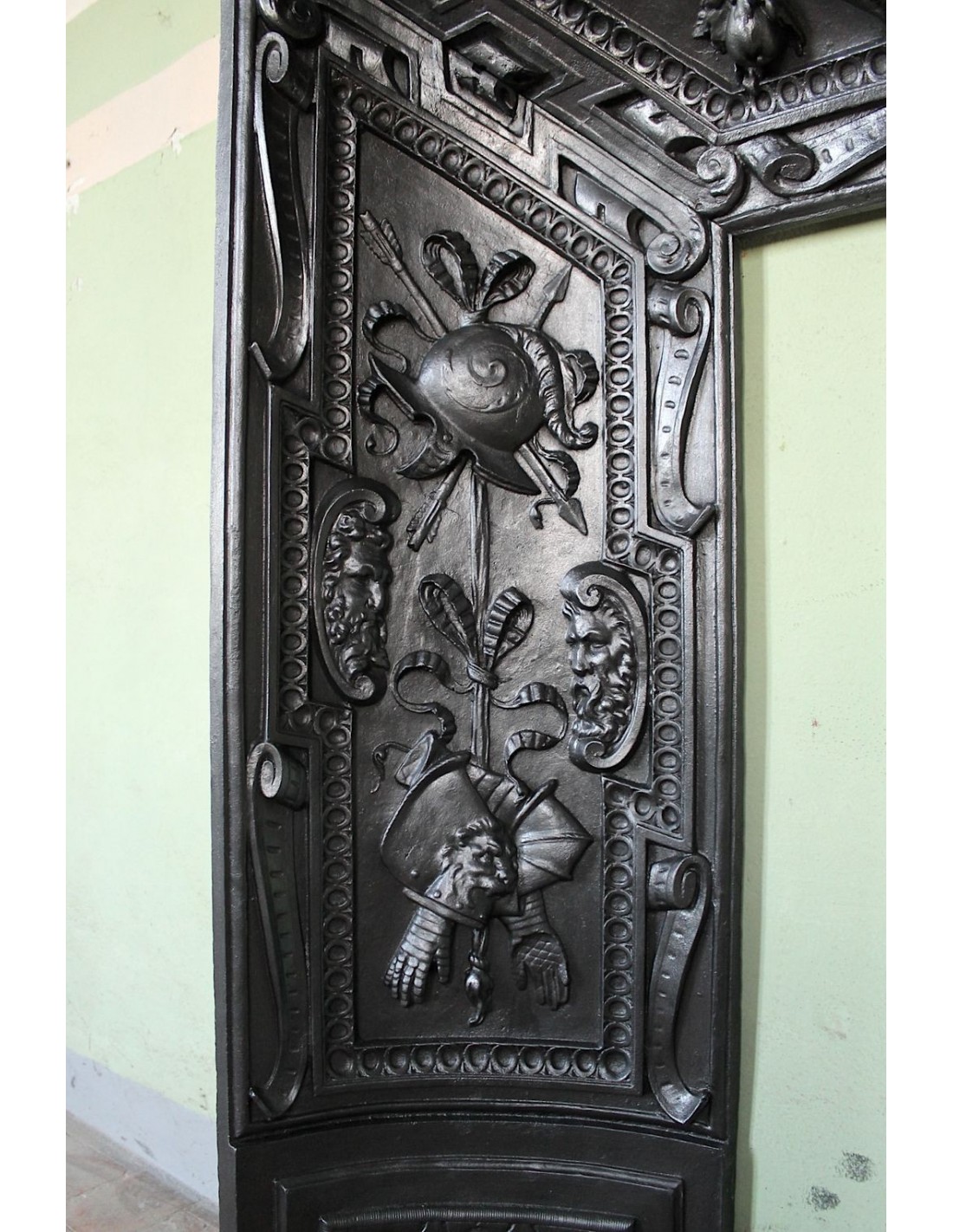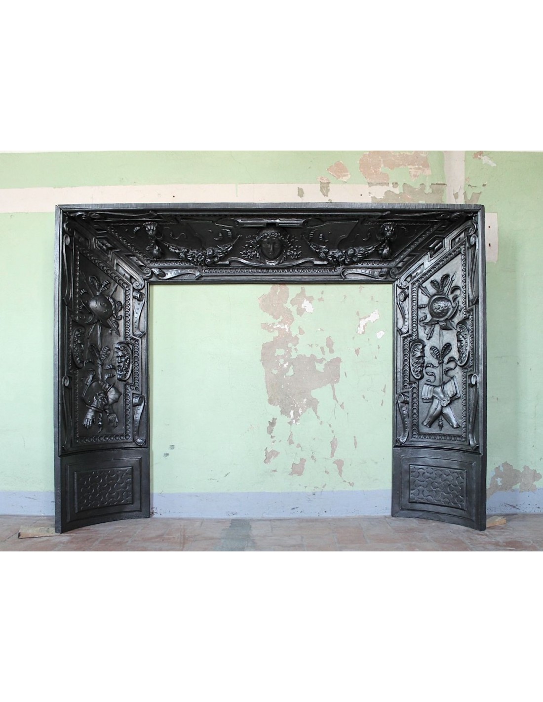 In short, this mantel was supposed to be THE CAST IRON INSERT OF POLYPHYMEUS OR SOME GIGANTIC GODS OF THE OLYMPUS.