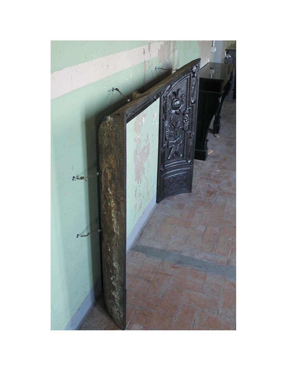 I think it essential to point out to those reading this page how this incredible mantel (evidently inspired by the classic “Contre-coeurs,” mostly also made of artistic cast iron) is THREE TIMES THE AVERAGE OF NORMAL CONTRE-COEUR.