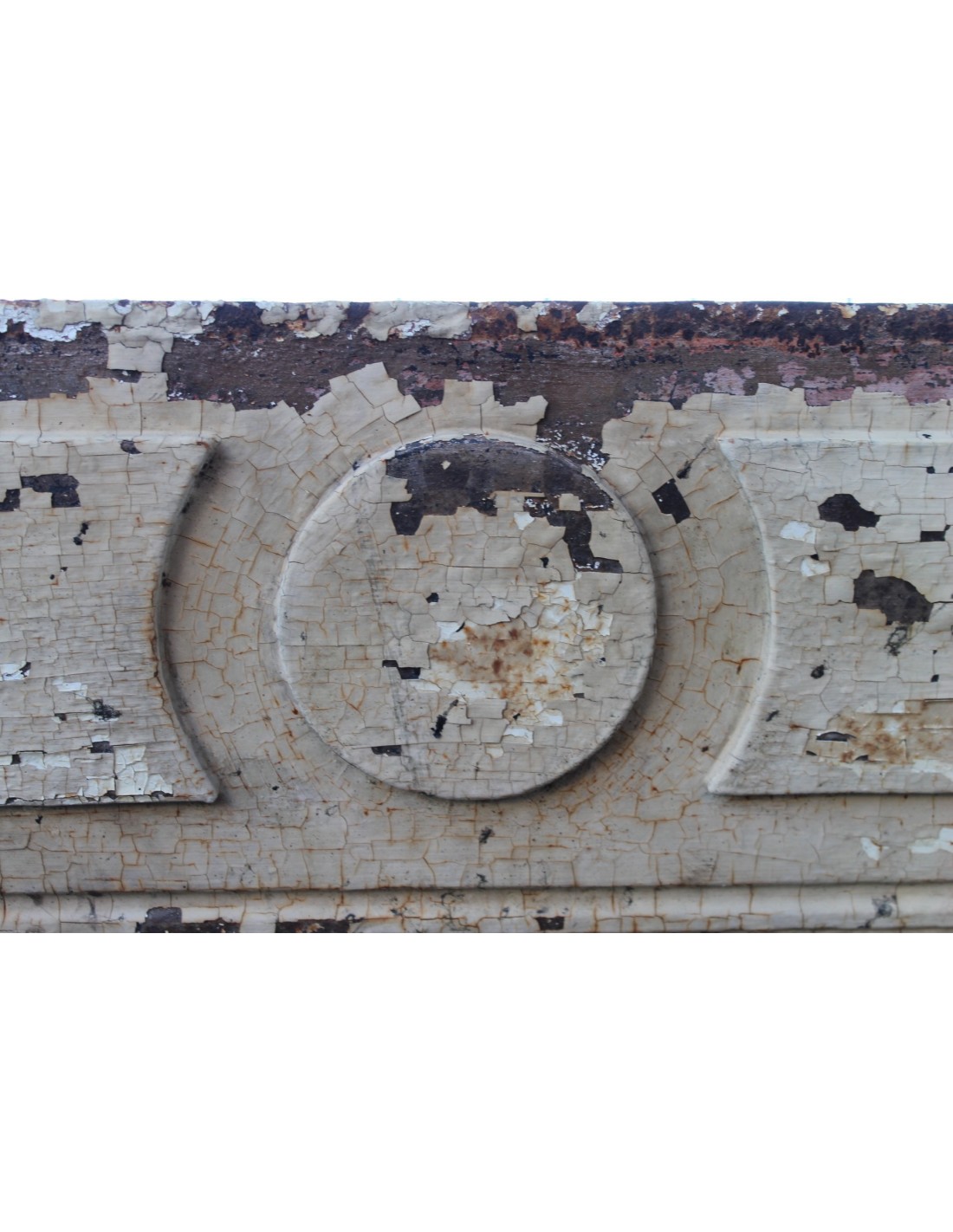 Questo particolarissimo esemplare (l'unico tra i quasi duecento controcuori del mio magazzeno) potrà certamente essere una originale cornice al vostro focolare, ma anche, data la sua linearità architettonica e decorativa, ben servire anche come stringibocca a camini neoclassici.