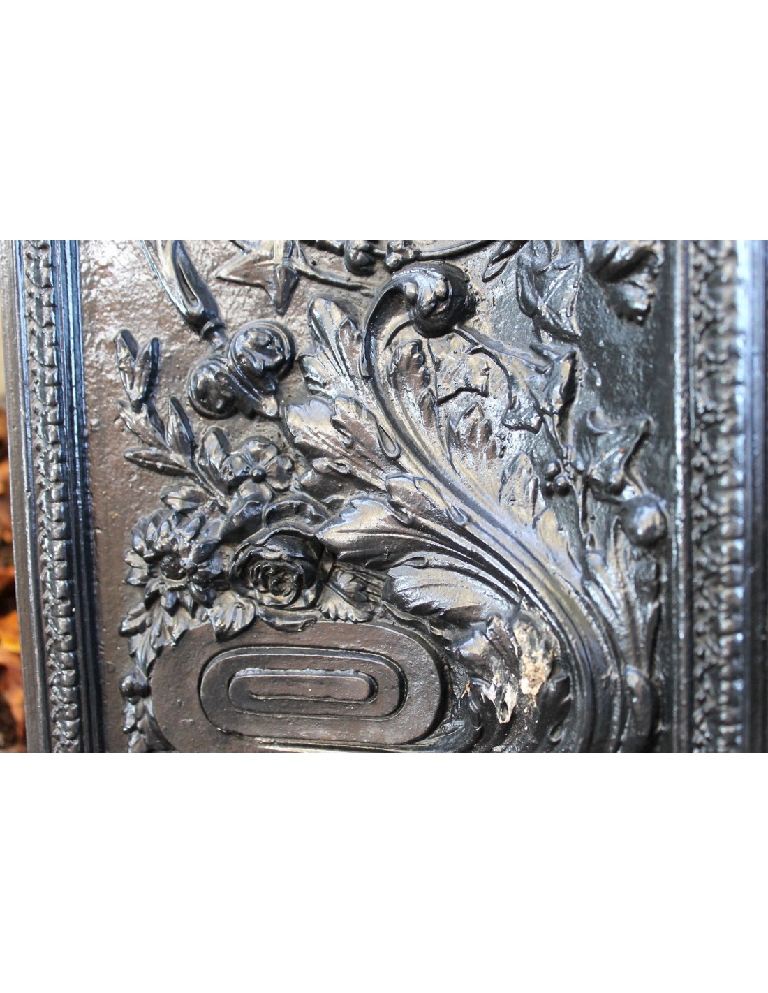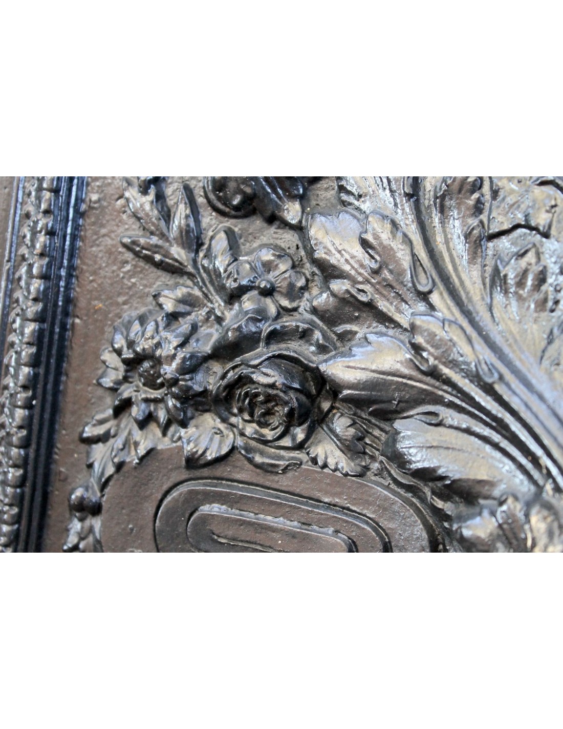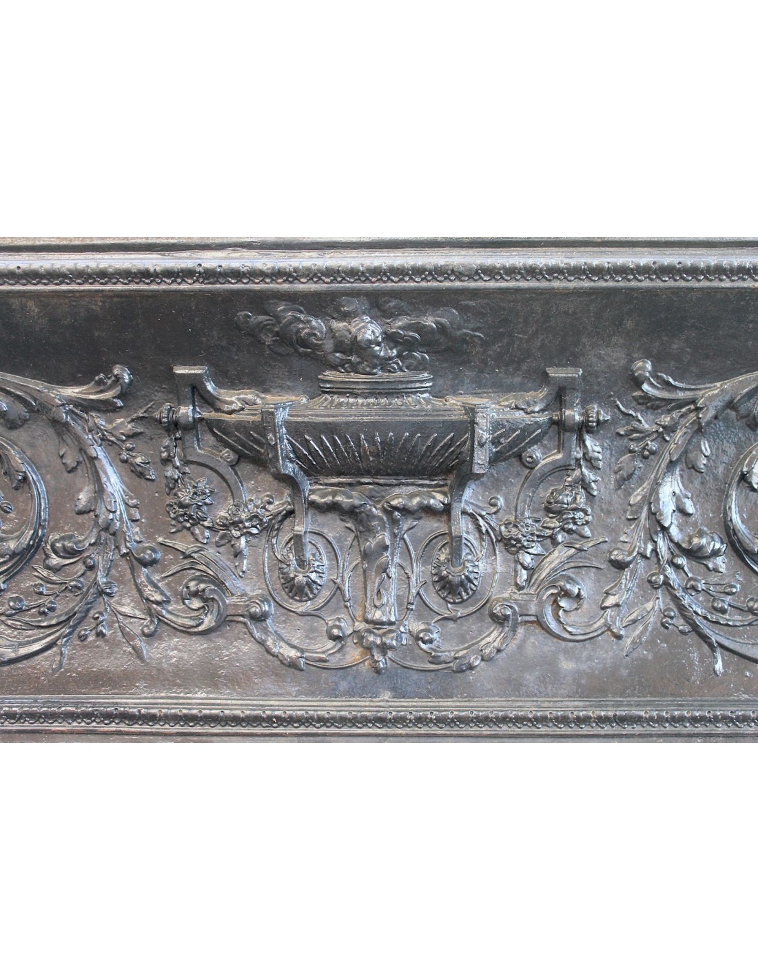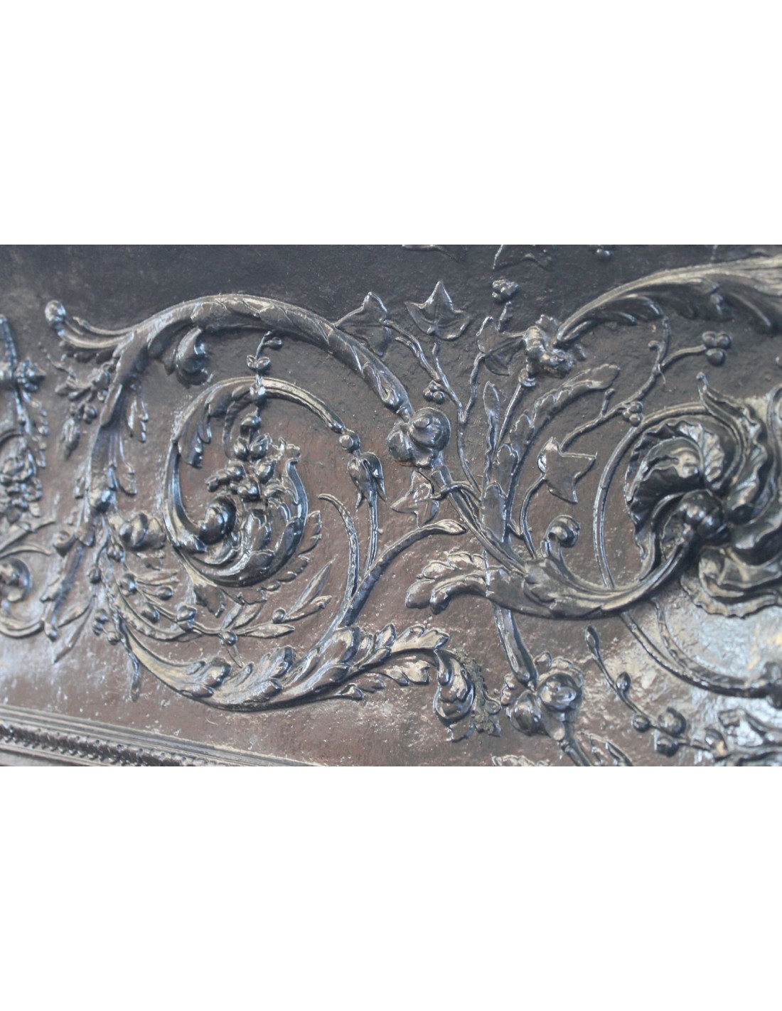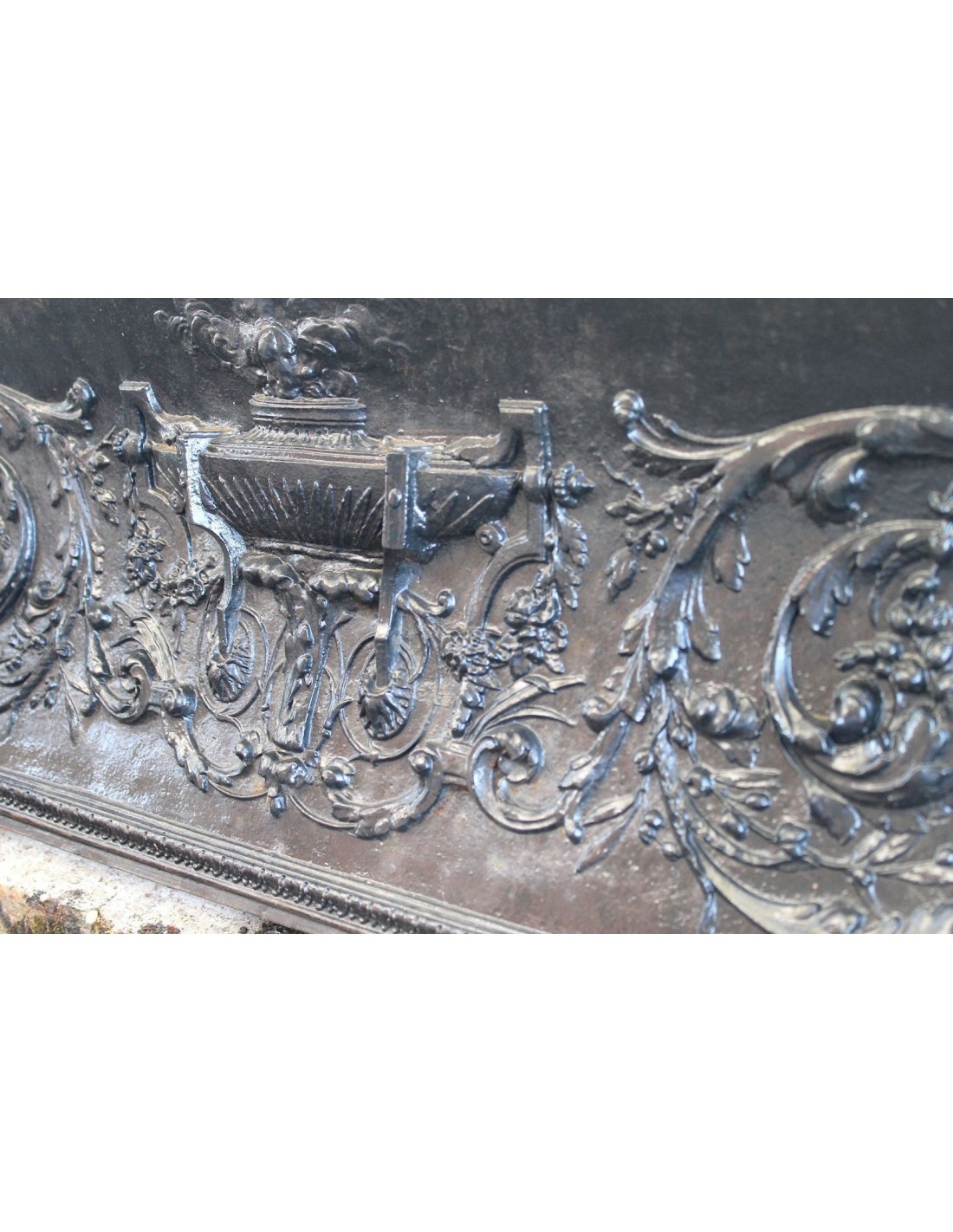 Quei torciglioni che dipartono dal bracere romano posto al centro del frontale trasmutano e digradano in "rami d'ulivo", di quercia, financo in ranuncoli di edera, in un "tutto" decisamente disteso, tanto che occupano praticamente ogni millimetro delle superfici disponibili.