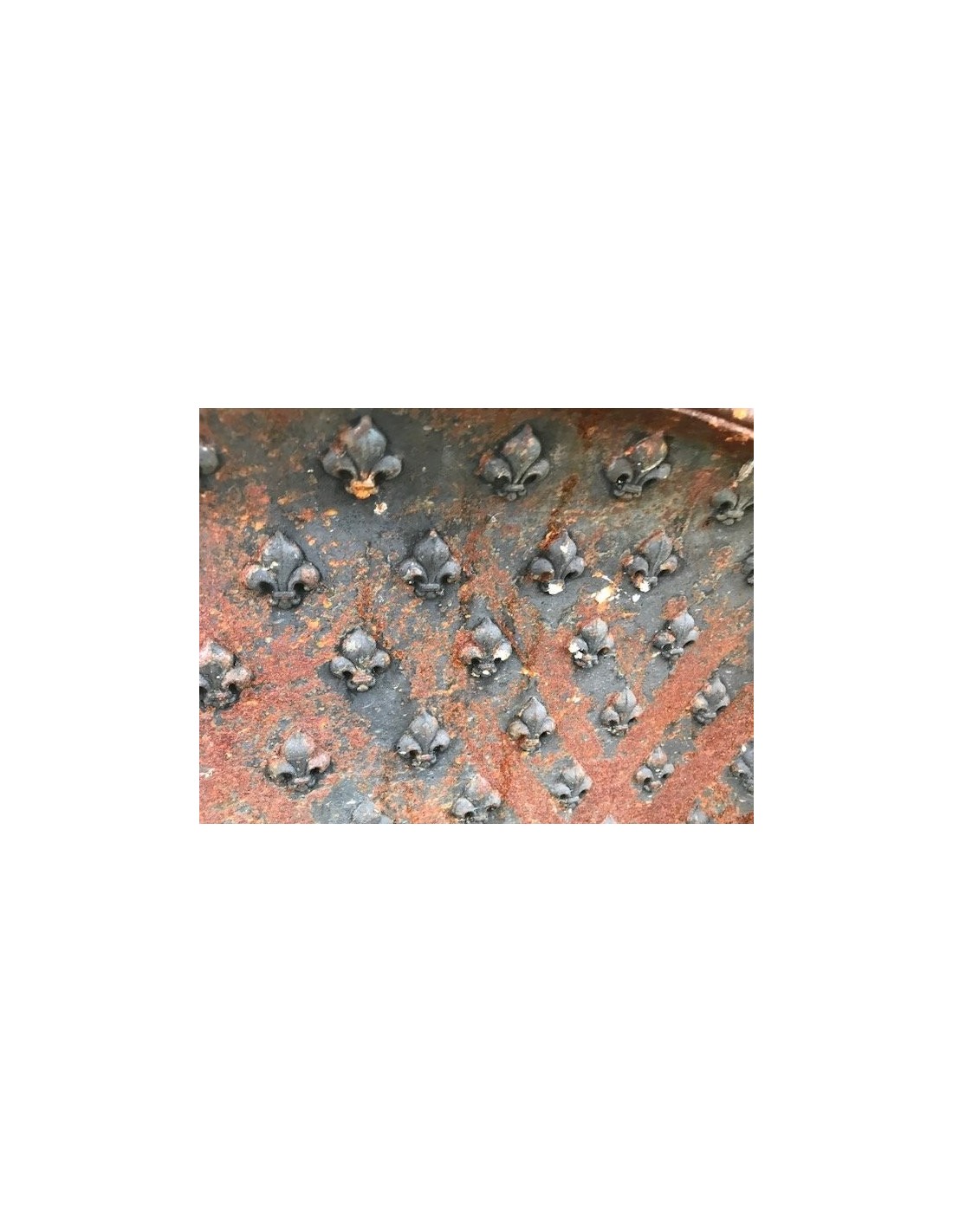 In più qui abbiamo un fondo esteticamente raffinatissimo, fatto di Fleur de Lys, oltre ad una abilità del maestro fonditore di quelle da rimarcare, vi basti far caso alla notevole protuberanza di questi gigli rispetto alla superfice del manufatto e pensare a quanto sia complicato estrarre da uno stampo di terra figure così PERFETTE.