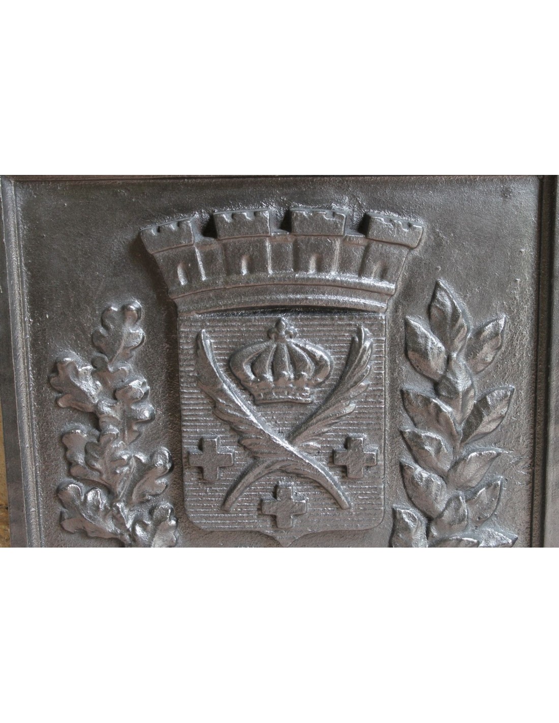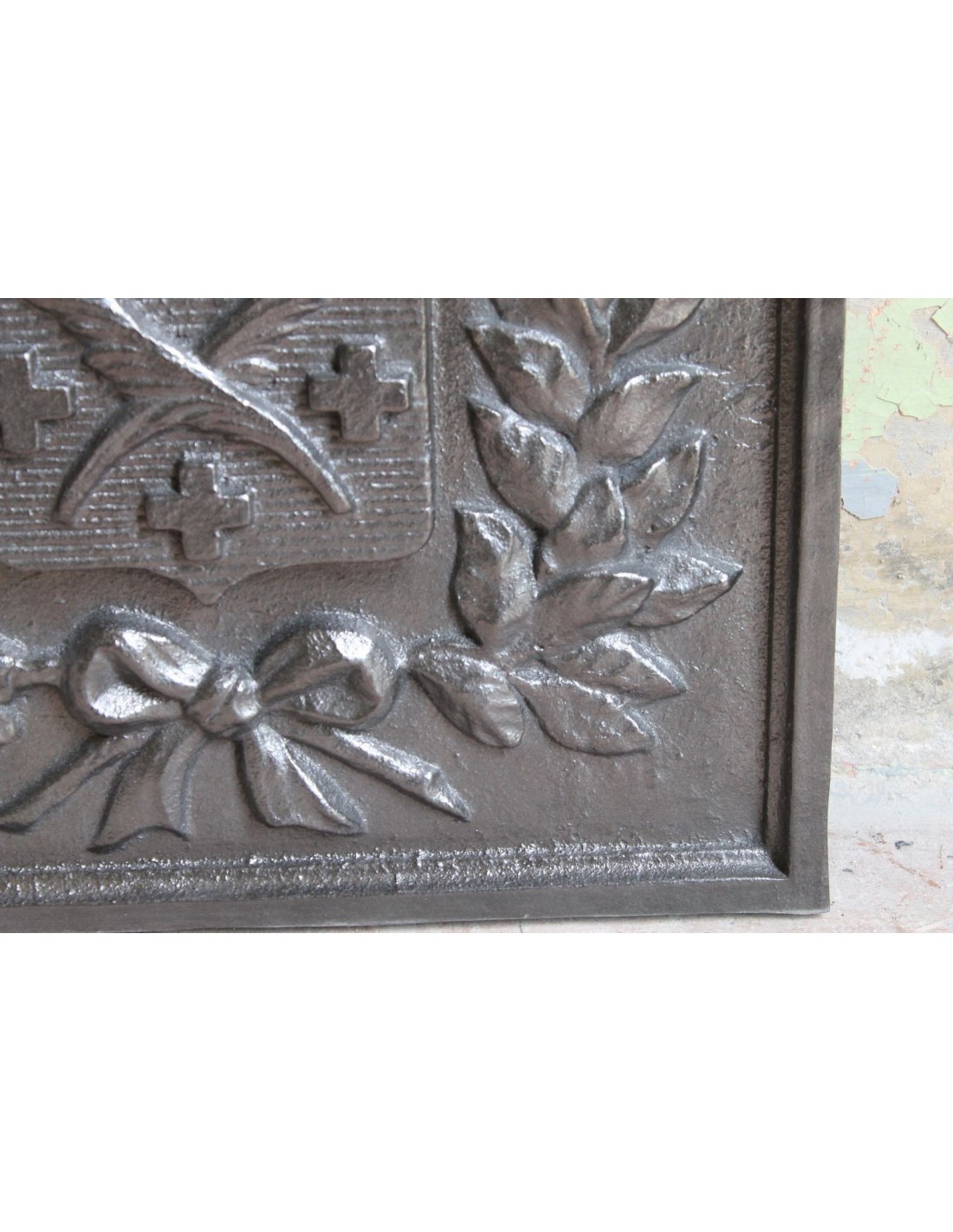 PIASTRA DI FONDO CAMINETTO RICHIAMANTE GLI ELEMENTI CLASSICI DELLA COSIDDETTA "PLAQUE DE L'ARMEE", MA IN UNA ORIGINALISSIMA INTERPRETAZIONE..