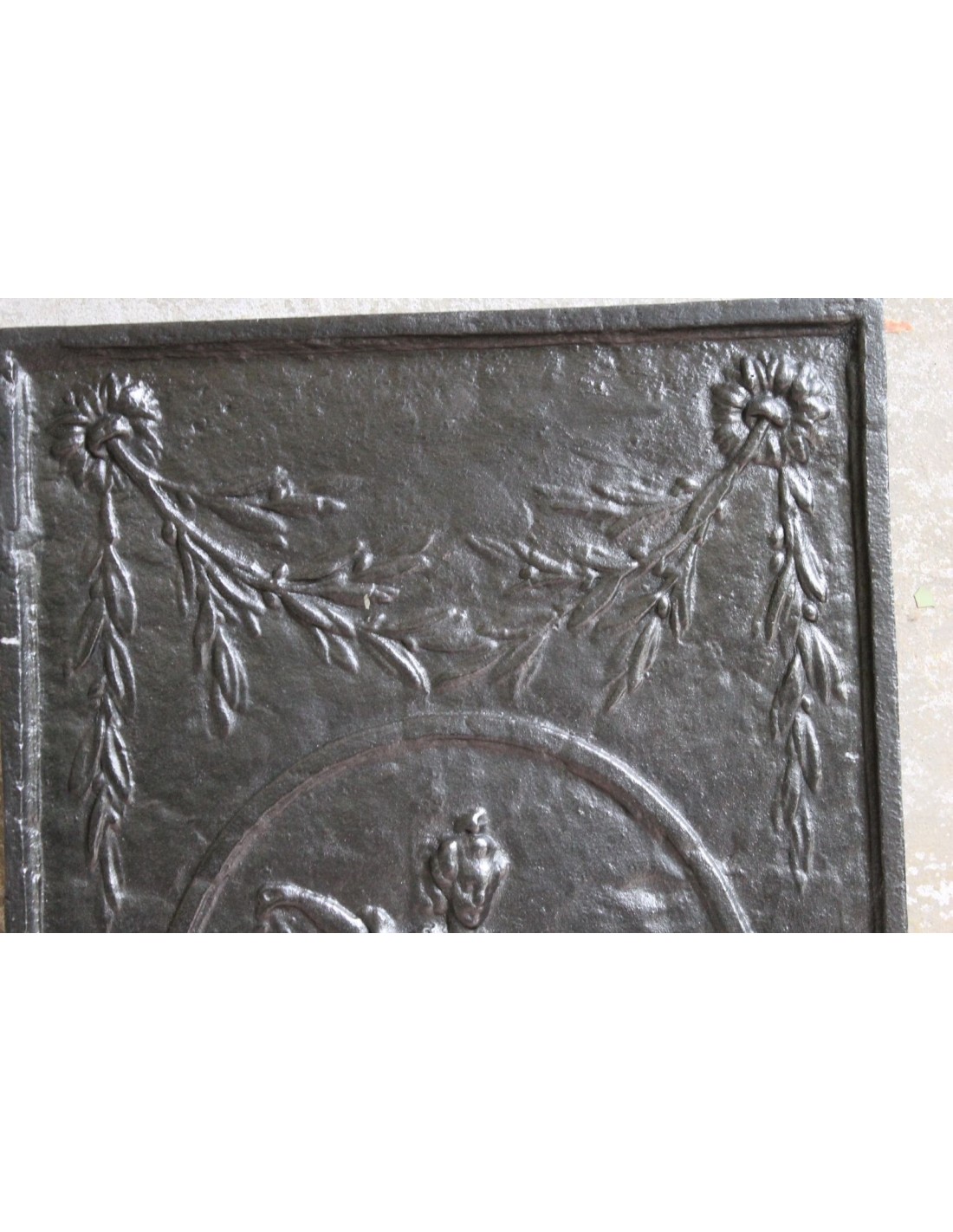 PIASTRA IN GHISA PER FONDALE CAMINETTO, EPOCA META' OTTOCENTO, PERFETTA CONSERVAZIONE, PROVENIENZA (E DA DOVE POTEVA SORTIRE UNA "COSA" TANTO AGGRAZIATA?!) PARIGI...