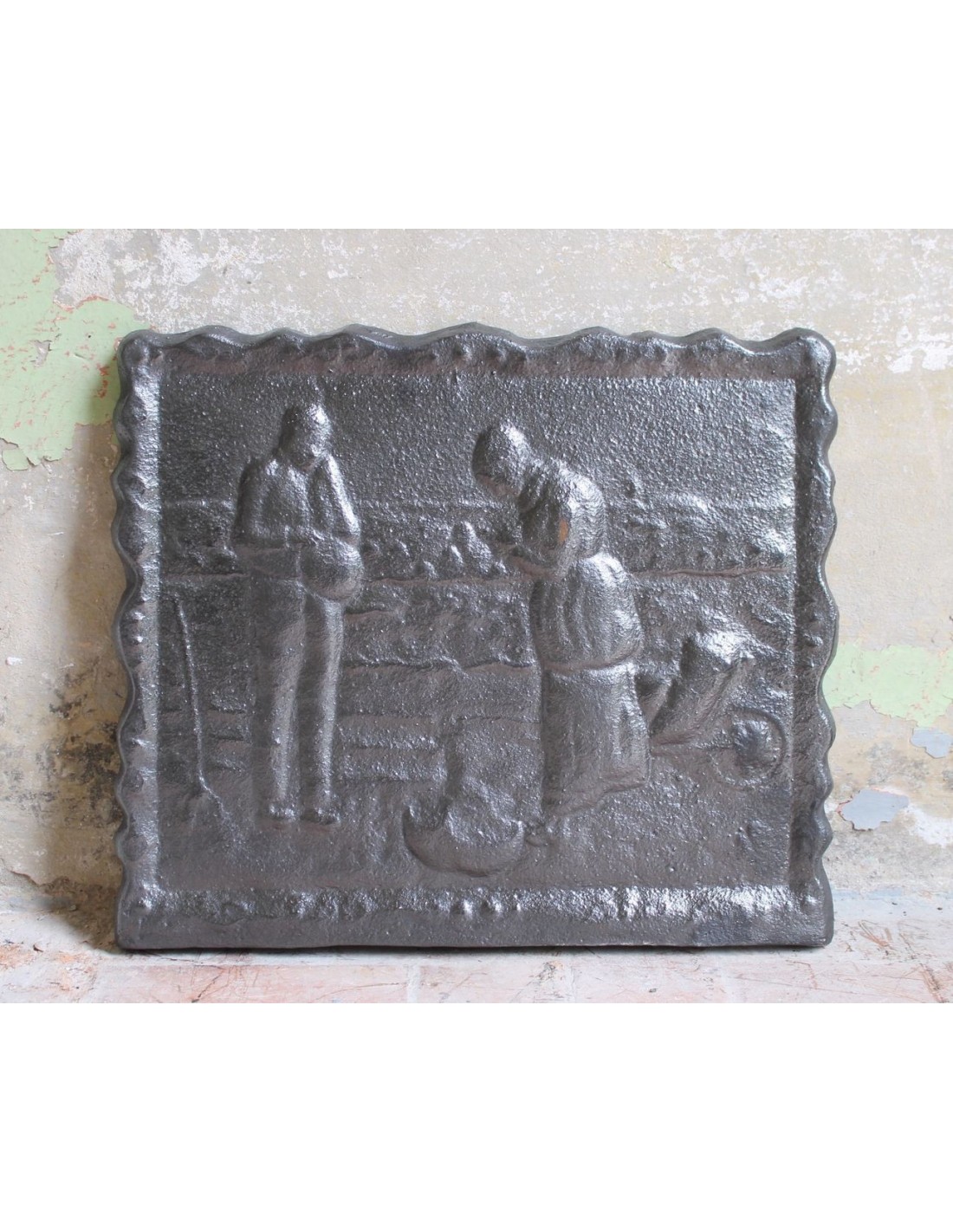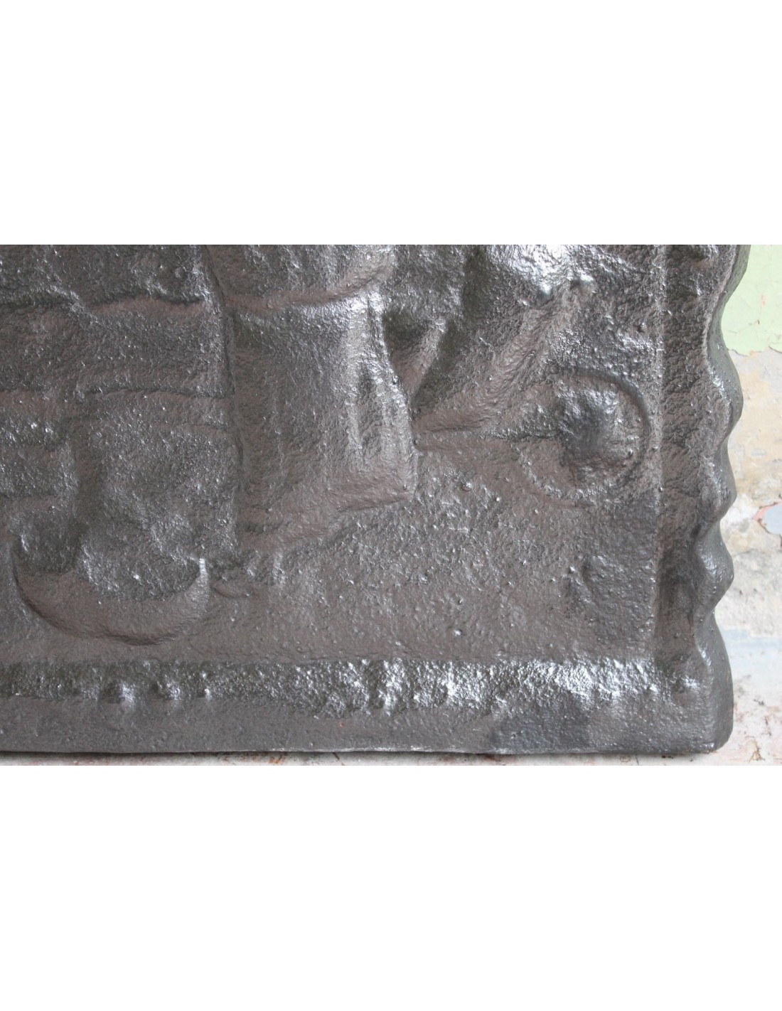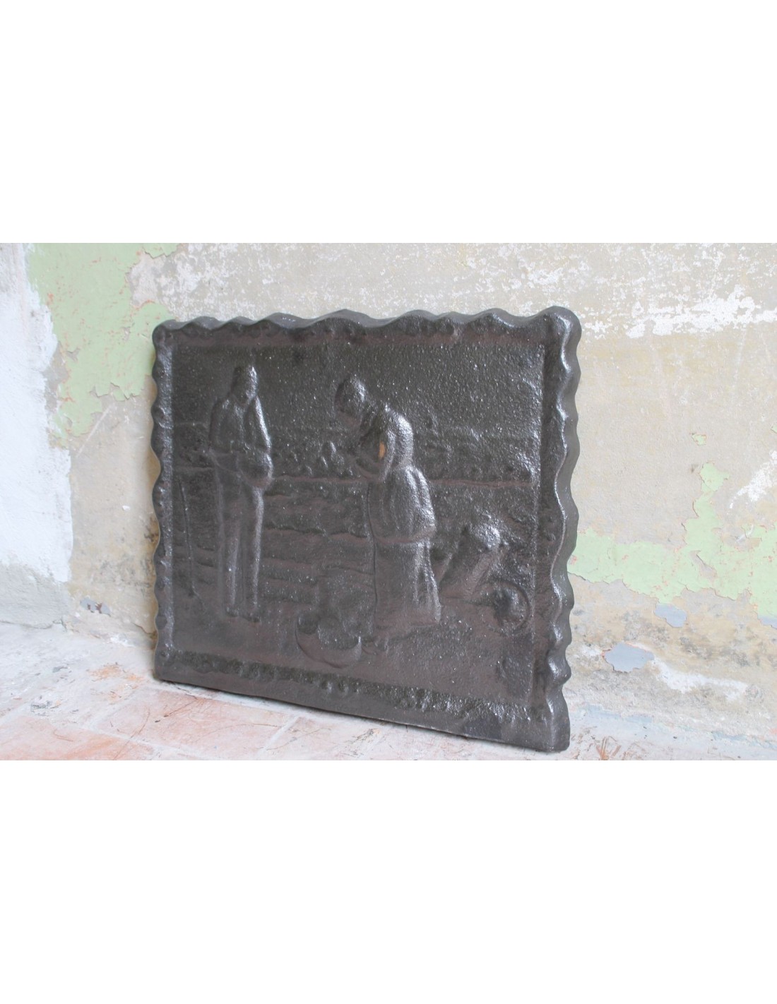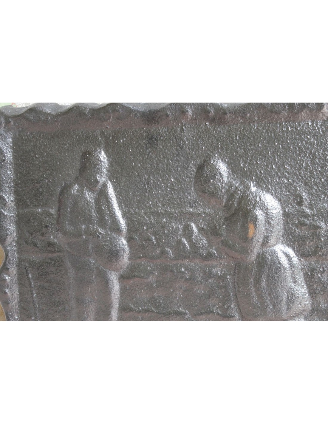 CERTAMENTE ISPIRATA ALLA PITTURA DI MAGRITTE, QUESTA PIASTRA PER FONDO CAMINETTO E', PRIM'ANCORA CHE UNA FUSIONE, UNA VERA E PROPRIA OPERA D'ARTE TRA SURREALISMO E FUTURISMO, IL TUTTO NEL PERIODO PIU' FECONDO DEI MOVIMENTI ARTISTICI (E NON SOLO PITTOREI) EUROPEI, CIOE' QUEL MOMENTO CHE STA TRA LA FINE DELLO STILISMO LIBERTY E L'INIZIO DEL PERIODO DECO'.