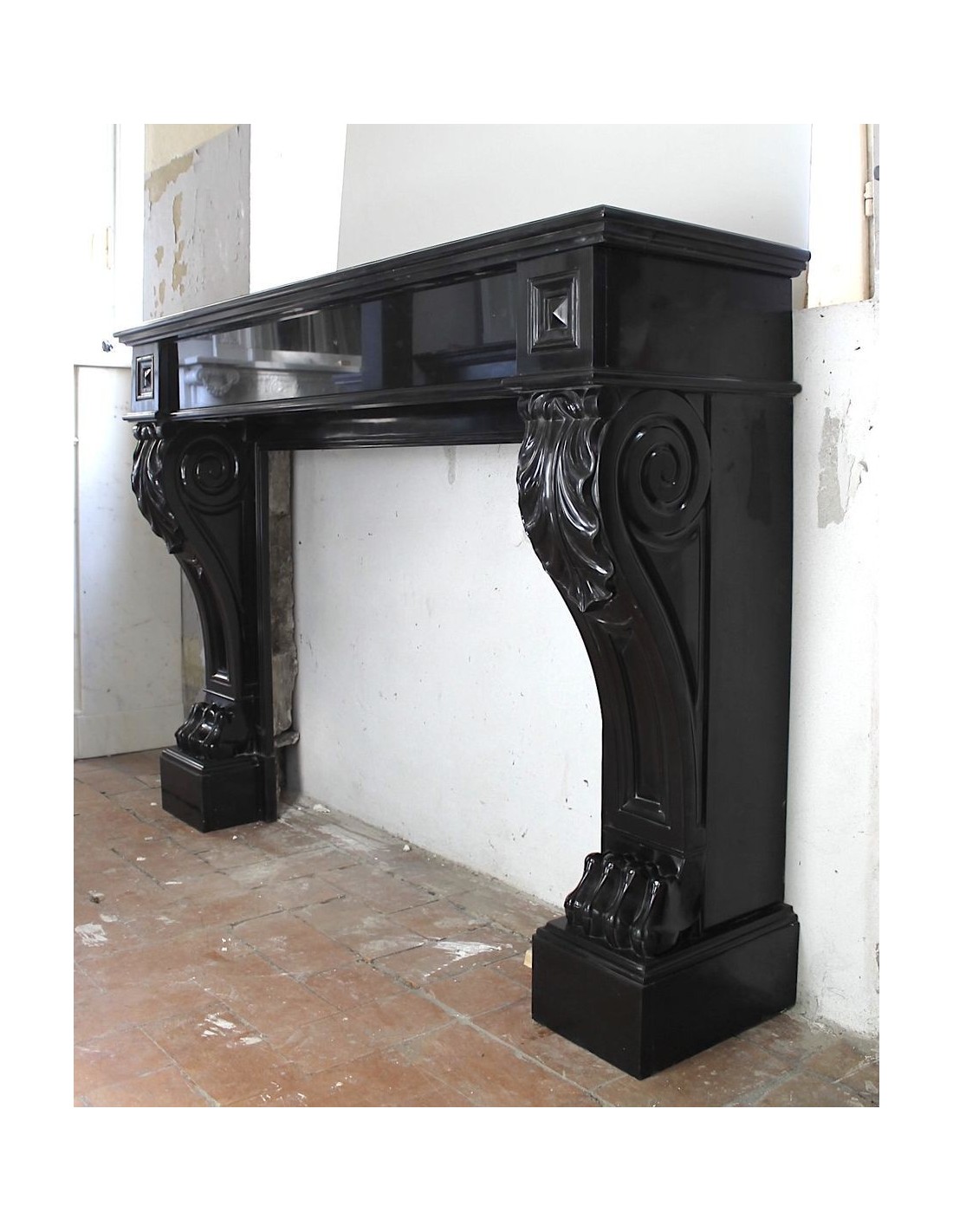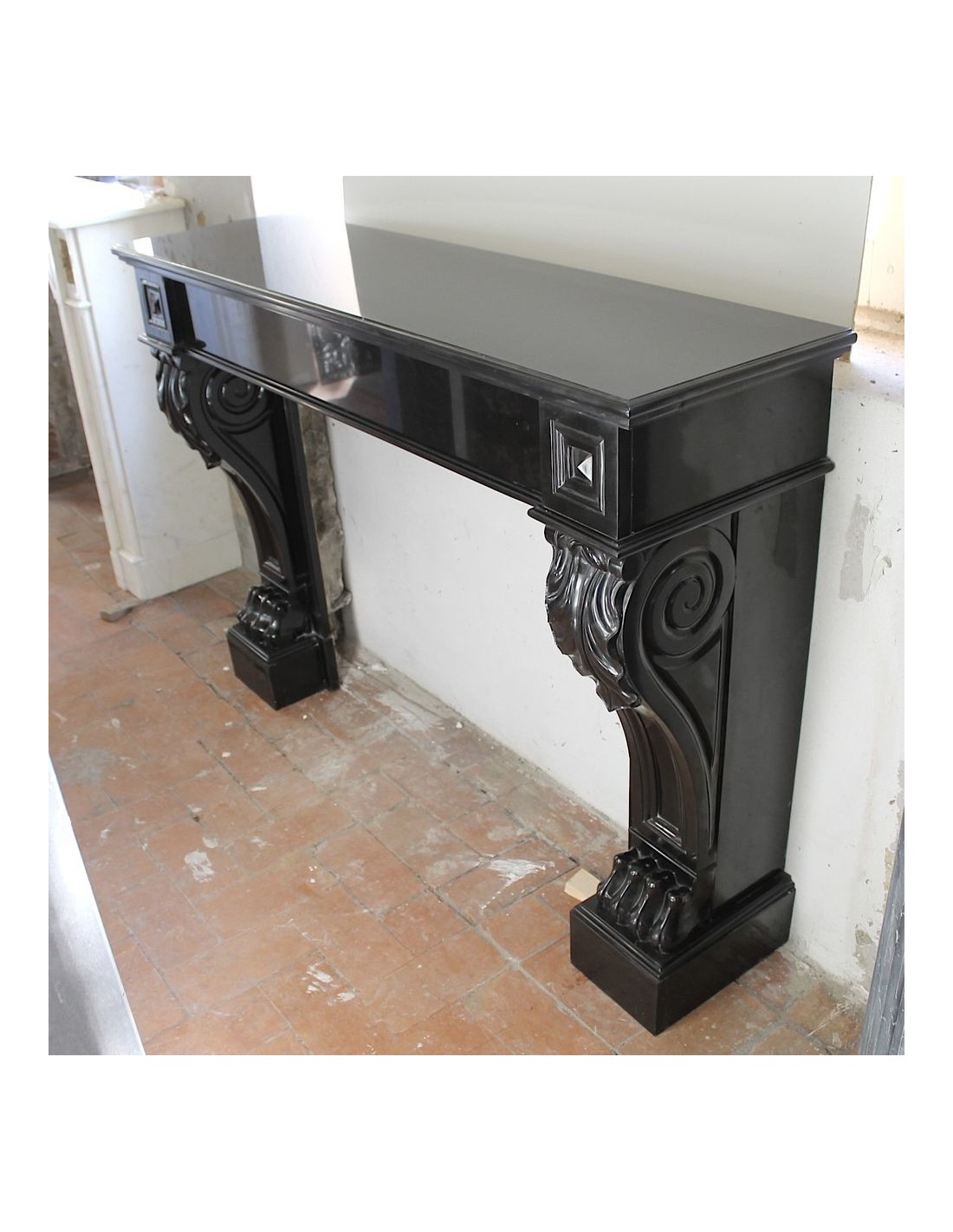 507 AG ANTIQUE “GRIFFE DE LION” FIREPLACE MANTEL IN BLACK BELGIUM MARBLE