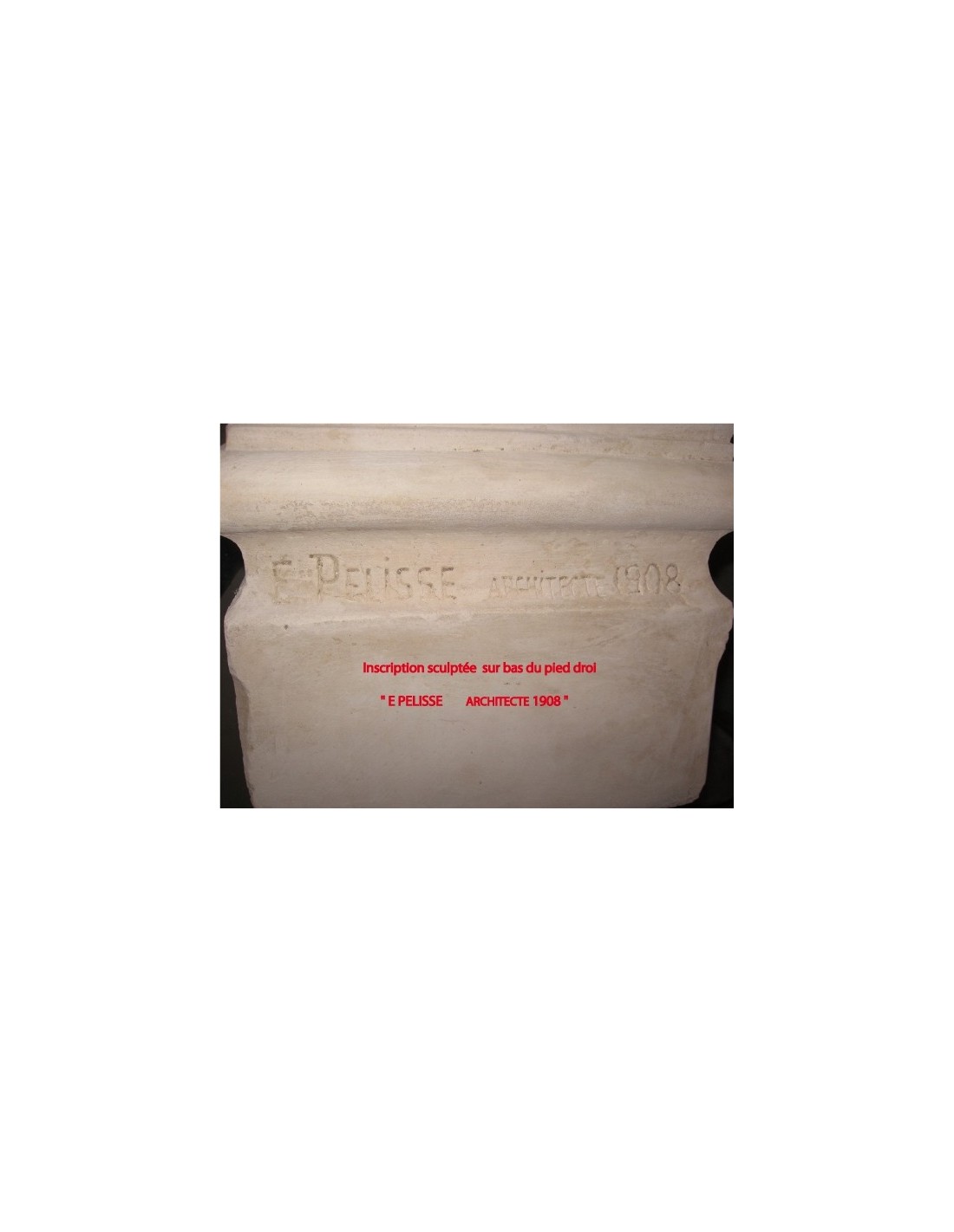His name was Emile, the architect Pelisse whose name is in the inscription carved in the right plinth of the fireplace (see image above right) along with the year of manufacture, 1908.. And it was precisely in the year 1908 that this professional was developing the design (later realized over the next two years) of an important (more than 300) group of houses and apartments in Clermont Ferrand (Auvergne region, bordering Burgundy) on behalf of Michel Michelin, the son of André, the founder of the tire factory of the same name.. These dwellings were intended, depending on their size and construction quality, for Michelin's executives and employees, and who knows, perhaps it was one of these executives who was the first patron of the fireplace we are examining..