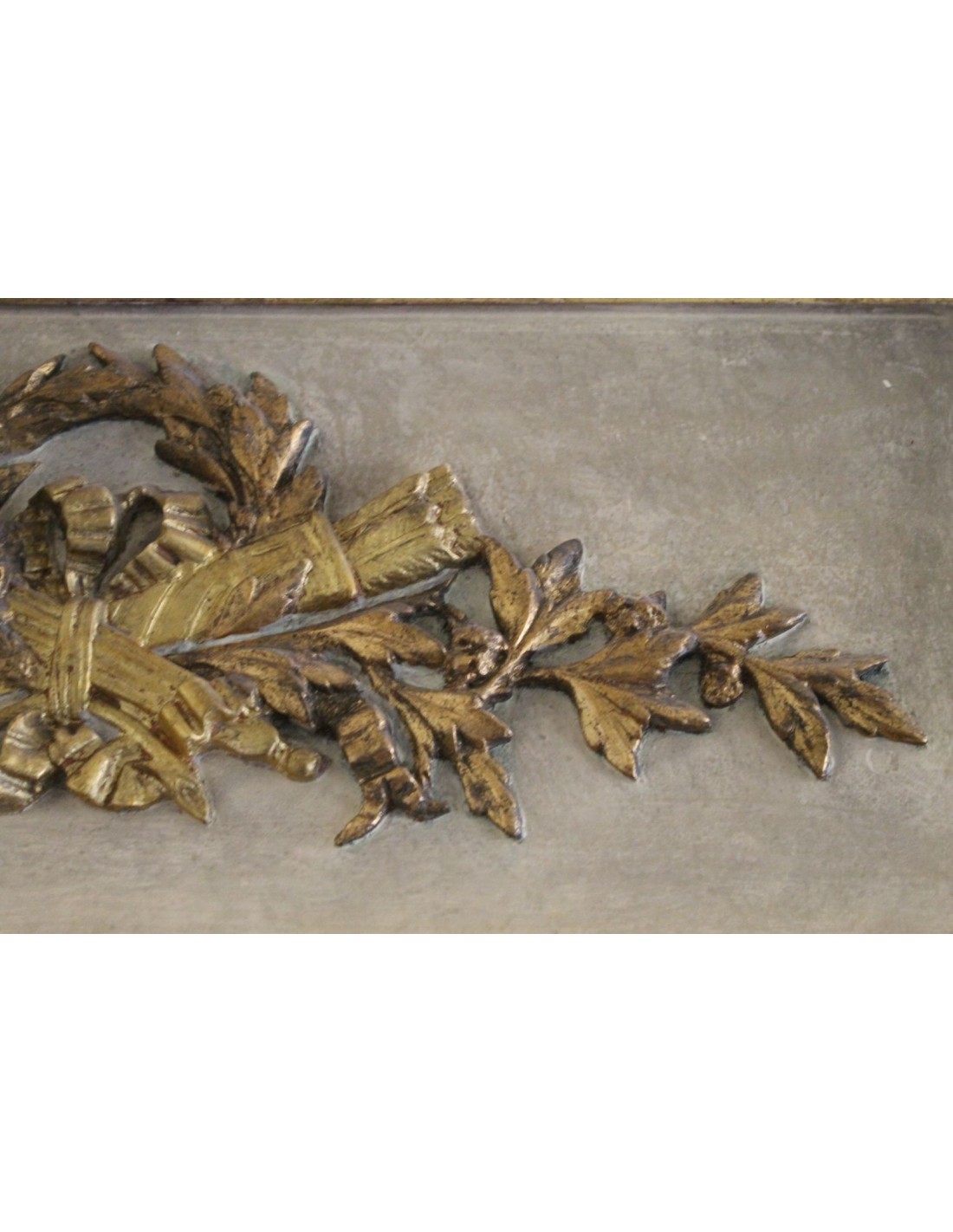 FORSE LA PIU' CLASSICA DELLE CAMINIERE A PANNELLO, PER VIA DELLA SUA PULIZIA STILISTICA ED ANCHE PER VIA DEI SUOI, OVVIAMENTE CLASSICISSIMI, DECORI DORATI: LA FARETRA, LA FIACCOLA (QUESTE DUE DECORAZIONI, QUASI SEMPRE RAFFIGURATE INSIEME, RAPPRESENTANO LA PASSIONE AMOROSA), LA CORONA D'ALLORO, IL TUTTO SU DI UN RAMO D'ULIVO DISTESO..