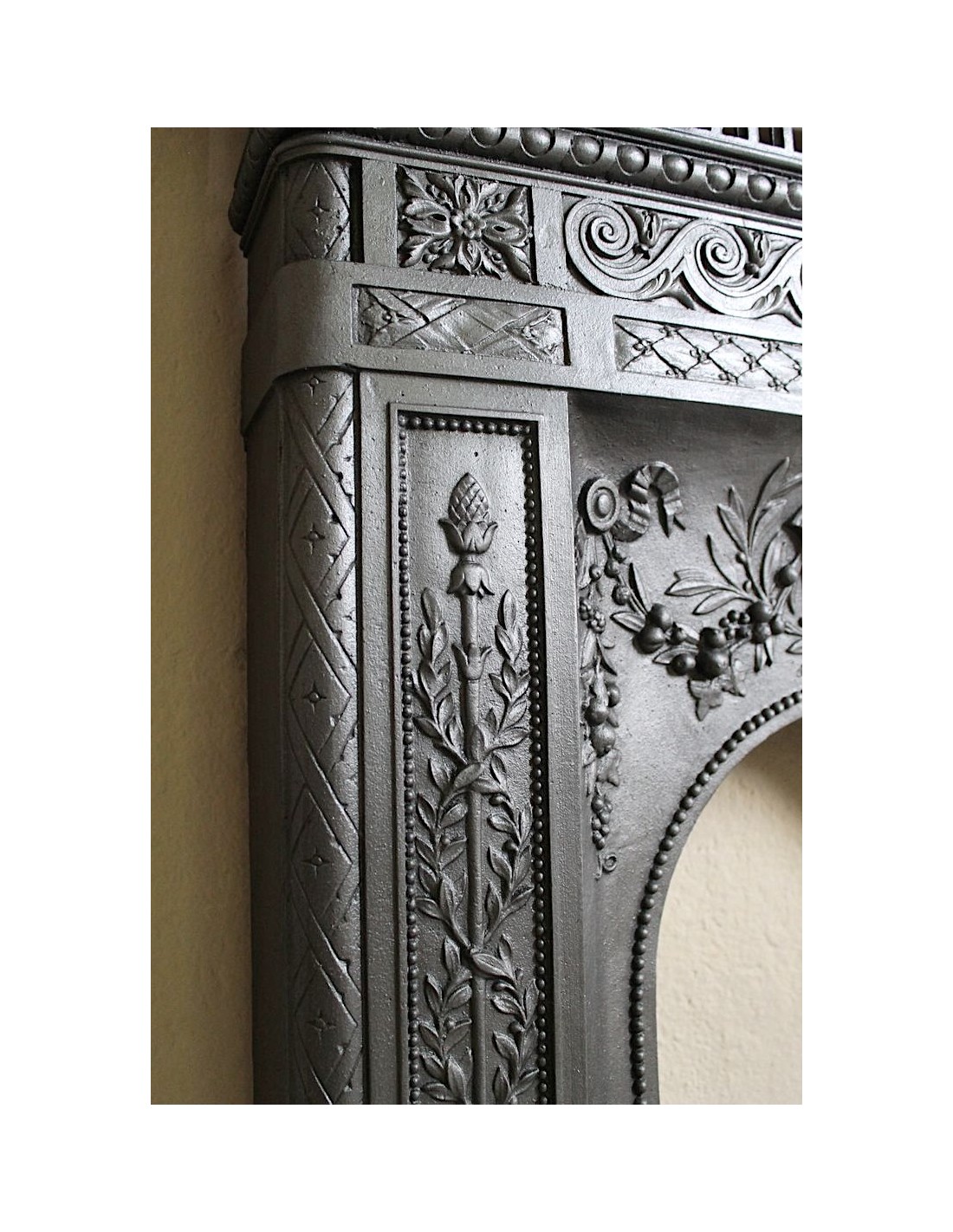 Well, the reason is simple, and it concerns all the various models of cast iron fireplaces of this brand: Before the last years of the nineteenth century there were no cast iron fireplace frames, only marble, stone and wood frames.