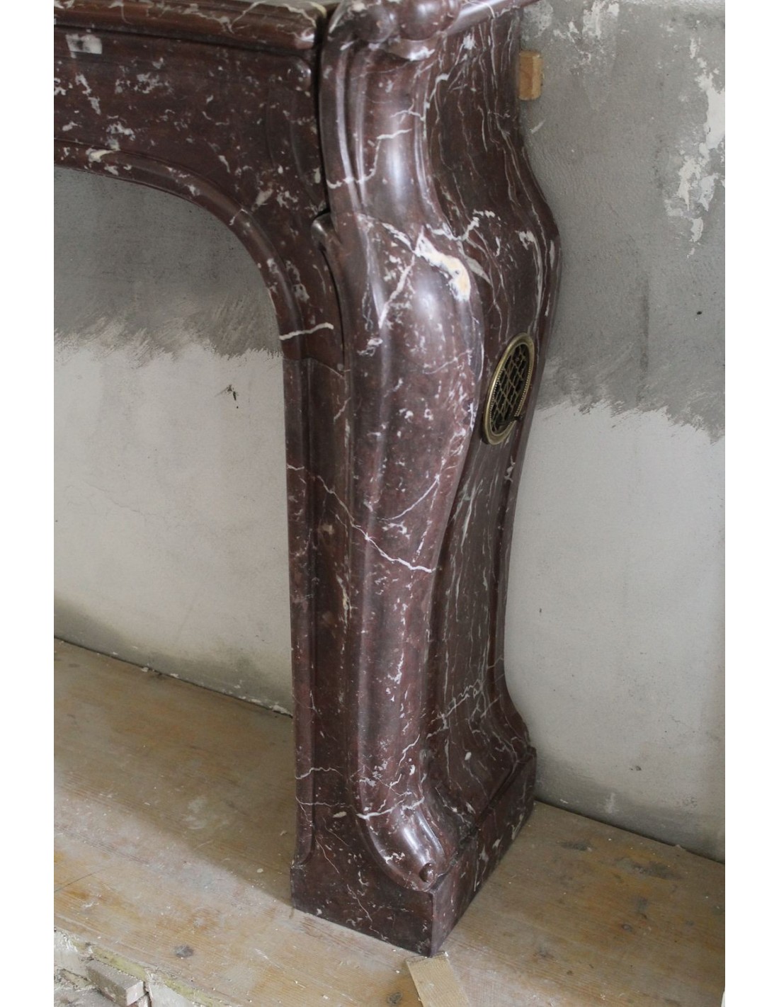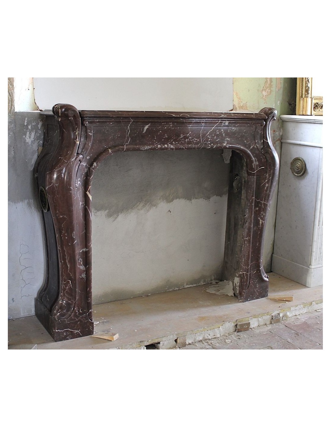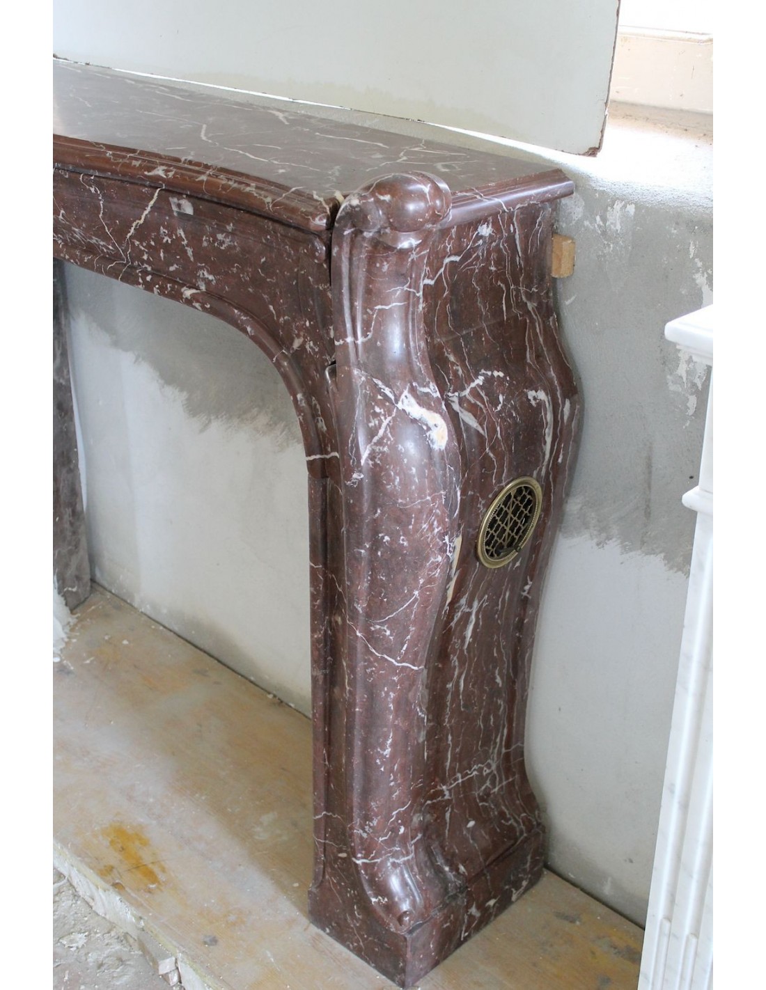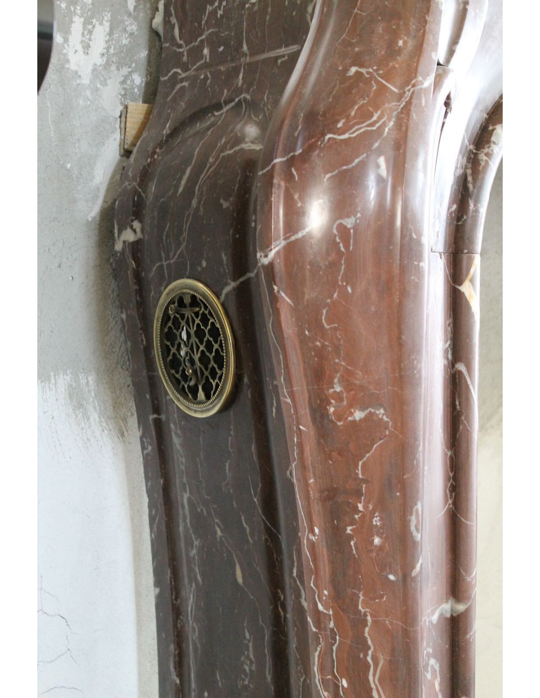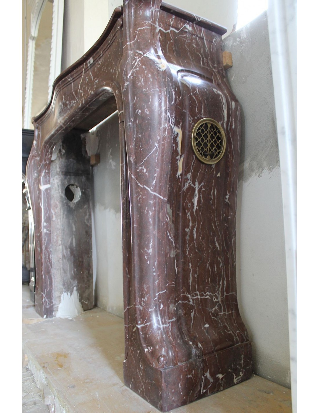 600 AG ORIGINAL ART NOUVEAU FIREPLACE MANTEL IN ROUGE ROYAL VERSAILLES MARBLE DESIGNED BY ARCHITECT MAJORELLE