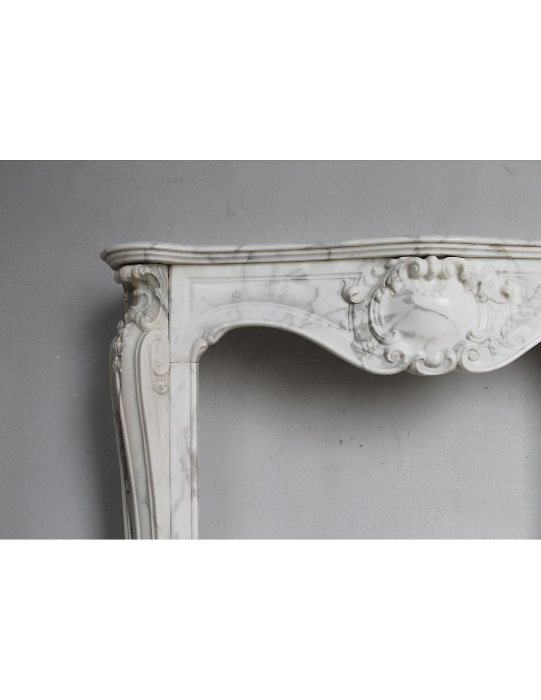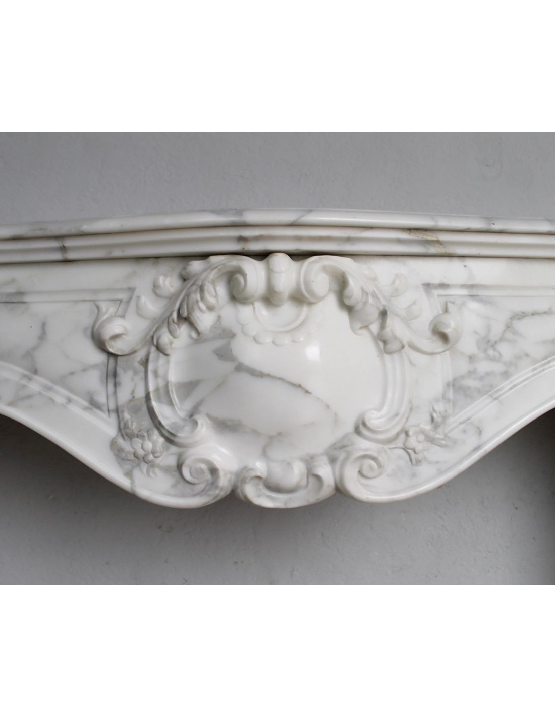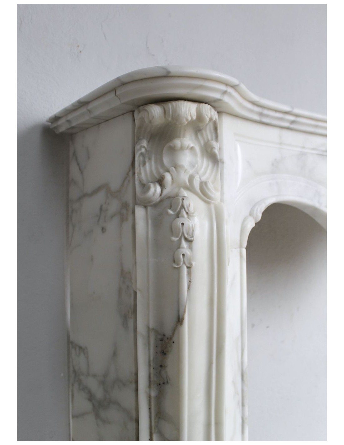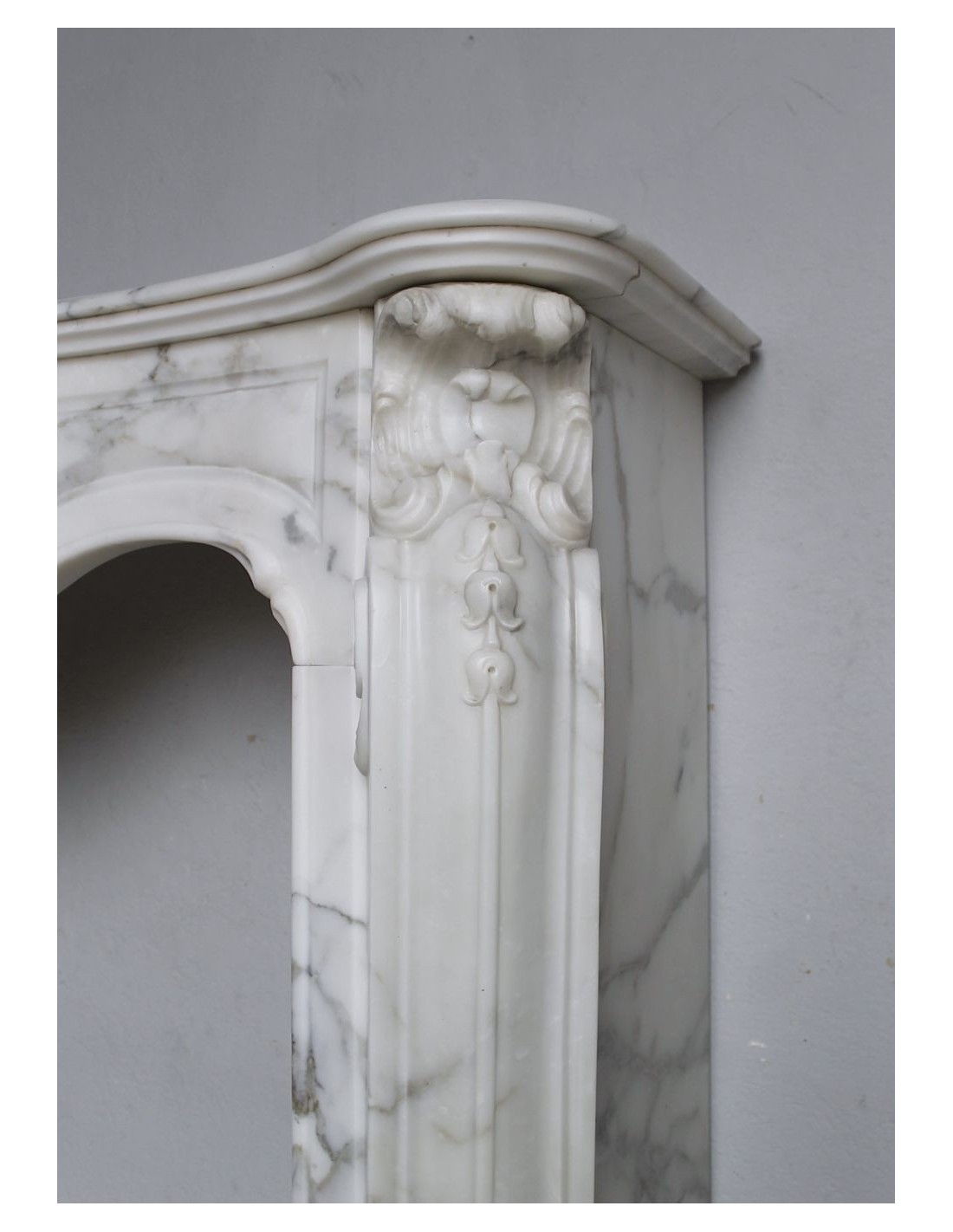 601 RARE ART NOUVEAU-STYLE "BOUCLES DE MER" FIREPLACE MANTEL IN SUPERB CLASSIC CALACATTA WHITE MARBLE