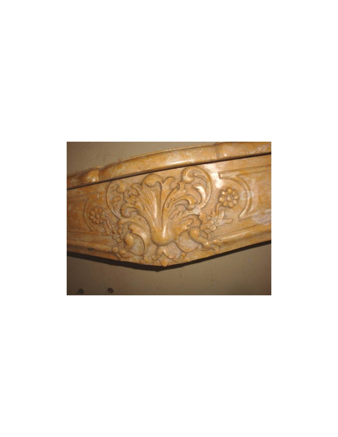 Of 'Art Nouveau, in this splendid artifact in equally splendid Royal Yellow marble, there is that very graceful floral addition to the classic central cartouche....