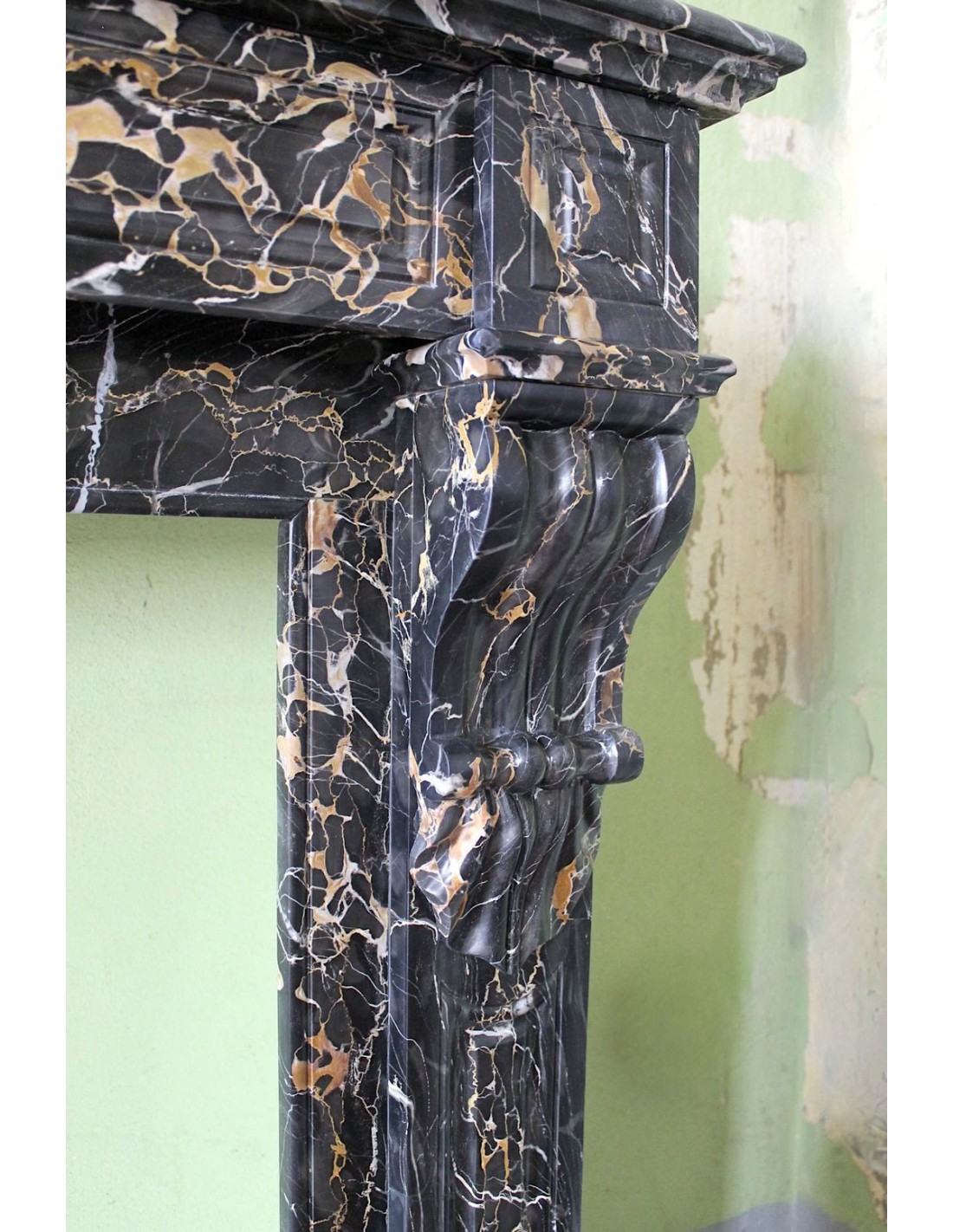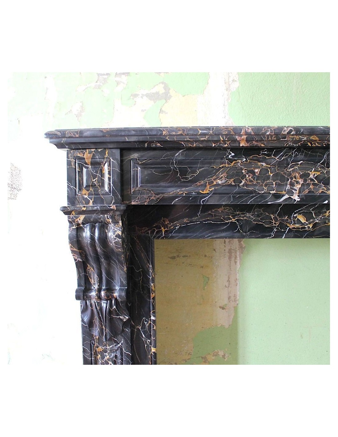 Portoro marble, quarried on the tiny island of Palmaria (located in the Gulf of La Spezia, Italy), formerly called “mischio giallo e nero,” then “marmo di Portovenere,” assumed its present name from the Italian translation 'Porta d'oro', from the French 'Porte d'Or."