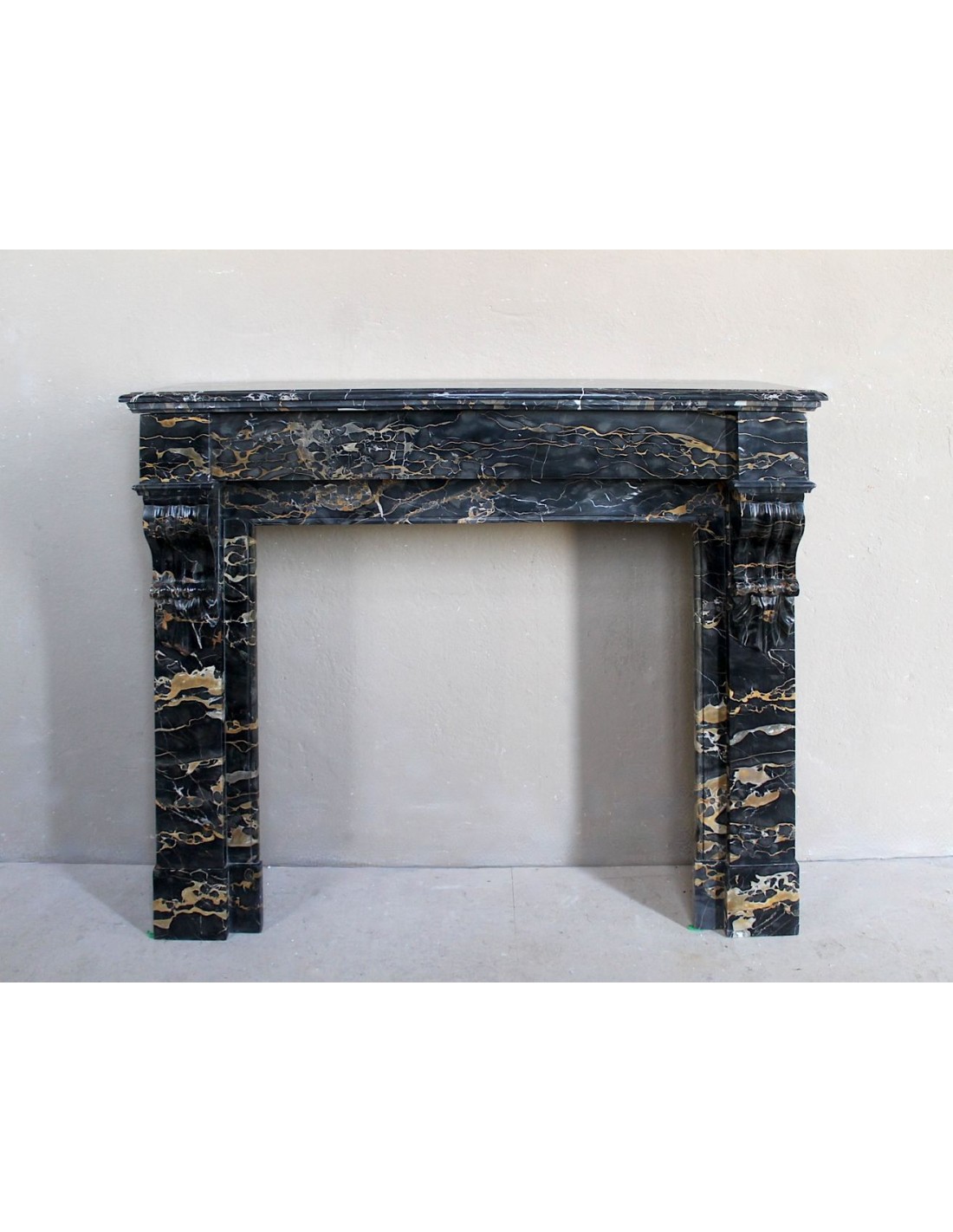 LOUIS PHILIPPE "PALMETTES” FIREPLACE MANTEL IN PORTORO GOLD MARBLE, 1840-60S ERA, PERFECTLY PRESERVED, PARISIAN PROVENANCE.
