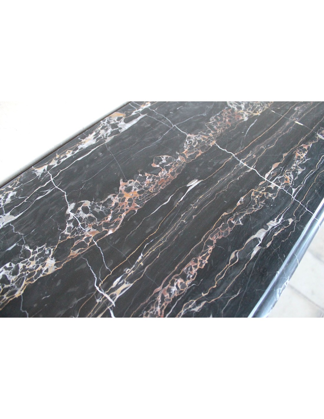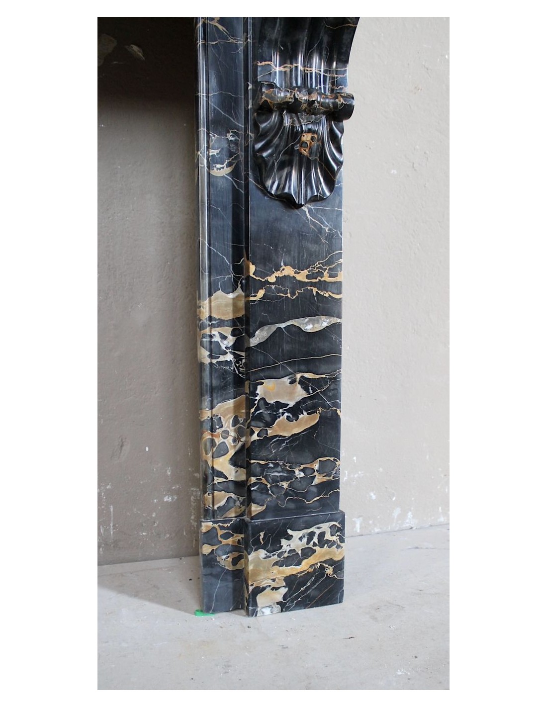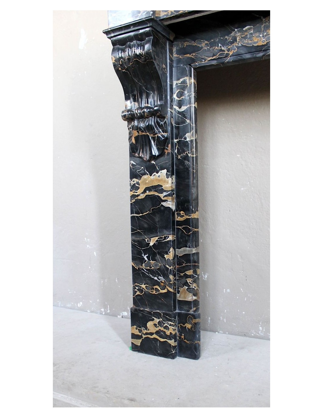HE, has the slabs all, save of course the leafy carvings of his capitals, with smooth surfaces, square corners, poise, in short, rather serious, without stylistic excesses, and this, how shall we say, resigned attitude of his, is given by the fact that, after all, HE strikes us and amazes us with the fabric of his marble dress, a PORTORO marble of great quality, indeed, of the highest quality. Here I think it is good to explain why our fireplace, seemingly “simple,” with no architectural flights of fancy, has been dressed in such an important and, what many imagine, also very expensive PORTORO marble.. Well, this marble today is extremely expensive (indeed, something more, Portoro GOLD is now THE most valuable marble in the world) but once upon a time our Portoro was quarried in abundance and the difference between the finest and scarcest choice was VERY limited... TODAY, since quarrying has been over for half a century, small lots of this quality of Portoro can be found on the market and whoever has them, sells them very dearly, we have now reached a price of € 1000 per square meter (mind you, we are talking about a 2 cm thick slab, eh, not about thicker “blocks”..