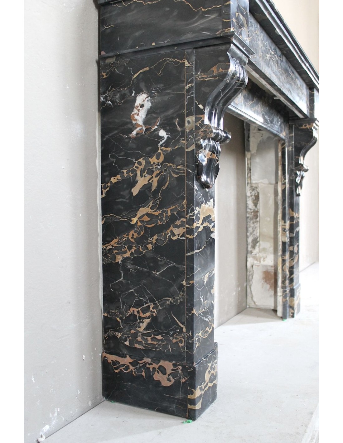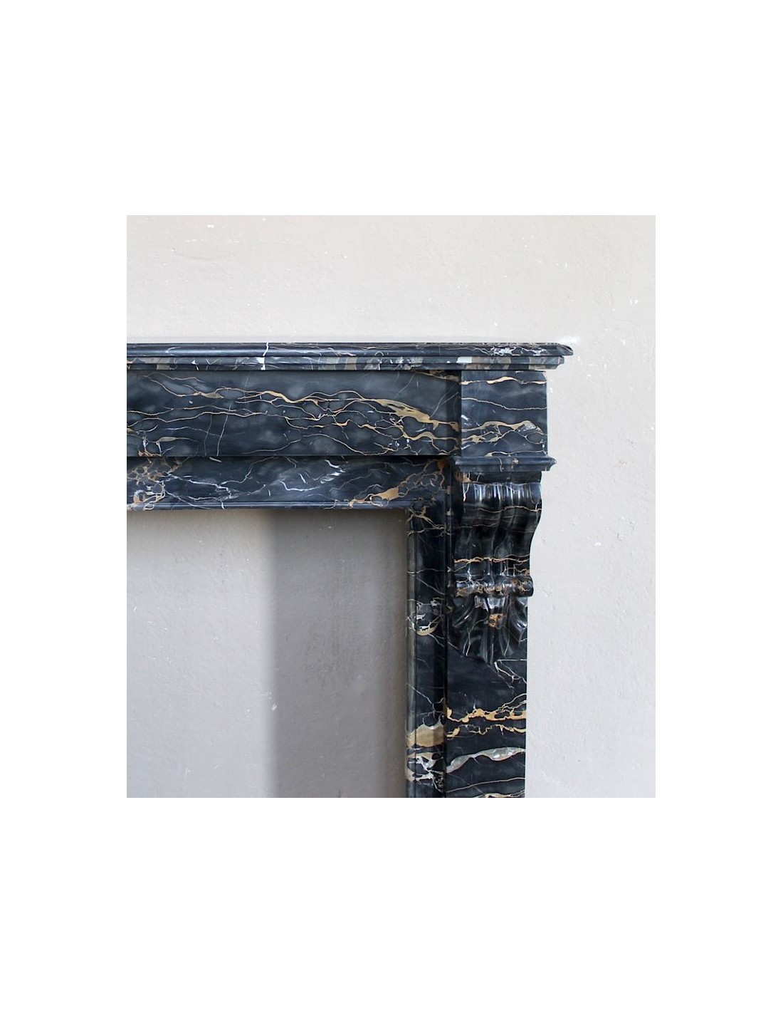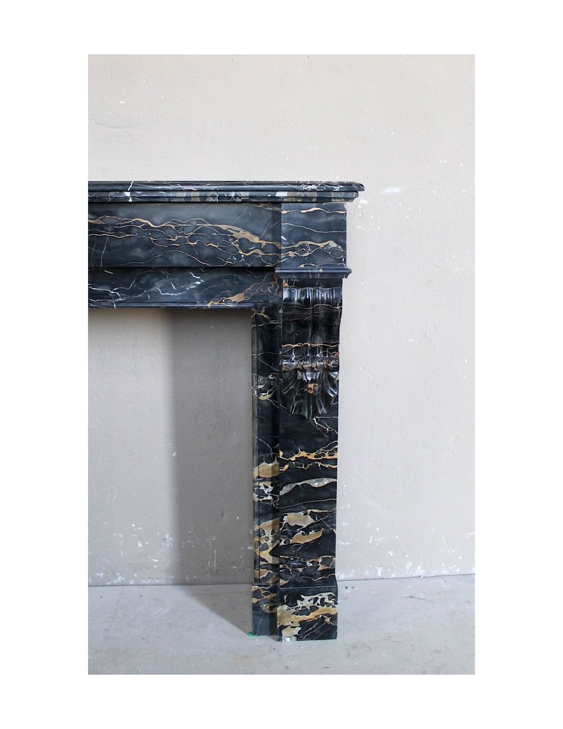 HE, has the slabs all, save of course the leafy carvings of his capitals, with smooth surfaces, square corners, poise, in short, rather serious, without stylistic excesses, and this, how shall we say, resigned attitude of his, is given by the fact that, after all, HE strikes us and amazes us with the fabric of his marble dress, a PORTORO marble of great quality, indeed, of the highest quality. Here I think it is good to explain why our fireplace, seemingly “simple,” with no architectural flights of fancy, has been dressed in such an important and, what many imagine, also very expensive PORTORO marble.. Well, this marble today is extremely expensive (indeed, something more, Portoro GOLD is now THE most valuable marble in the world) but once upon a time our Portoro was quarried in abundance and the difference between the finest and scarcest choice was VERY limited... TODAY, since quarrying has been over for half a century, small lots of this quality of Portoro can be found on the market and whoever has them, sells them very dearly, we have now reached a price of € 1000 per square meter (mind you, we are talking about a 2 cm thick slab, eh, not about thicker “blocks”..