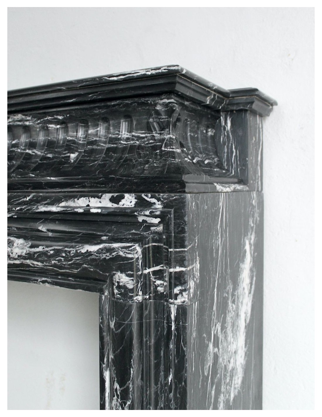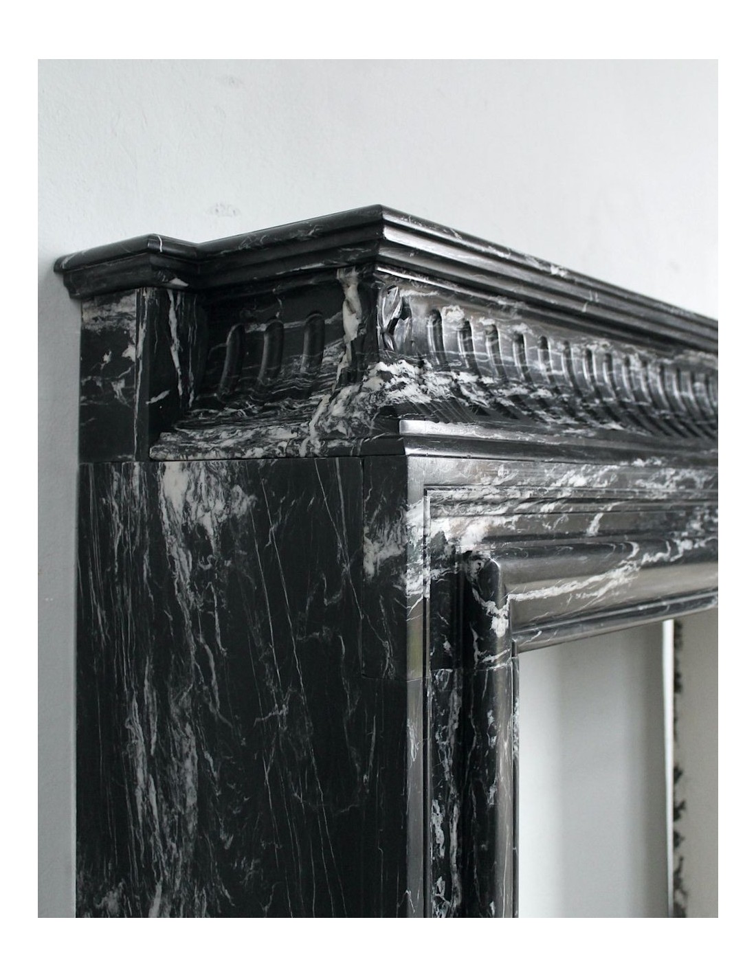 The one who carved in Noir Marquinia marble the fireplace I am presenting to you is the mythical Boudin, a sympathetic “fanatic” of French Grandeur, of Napoleon in particular, but also (and he couldn't help but be) of the equally mythical Sun King, Louis XIV, the one who with Versailles realized the most beautiful Maison in the world.