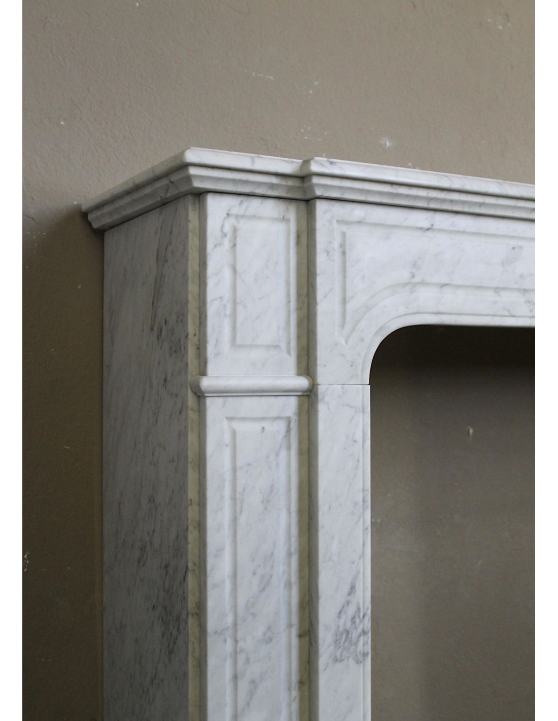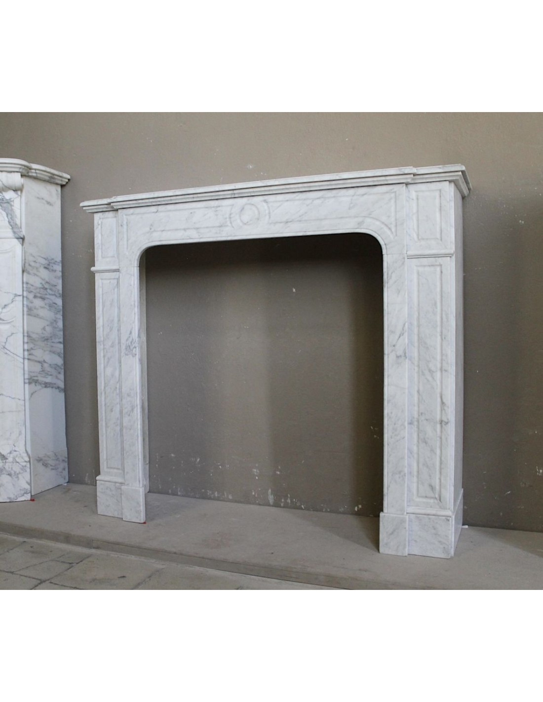 Antique fireplace mantel carved from white Carrara marble, called "Parisienne." This name comes from the fact that this fire surround is very present in the city center of Paris, among the beautiful apartments that characterize the heart of the French capital. However, the fireplace was carved in Italy, by a skilled Tuscan sculptor, and was made from the very Italian white Carrara marble. It was sculpted between 1860 and 1880.