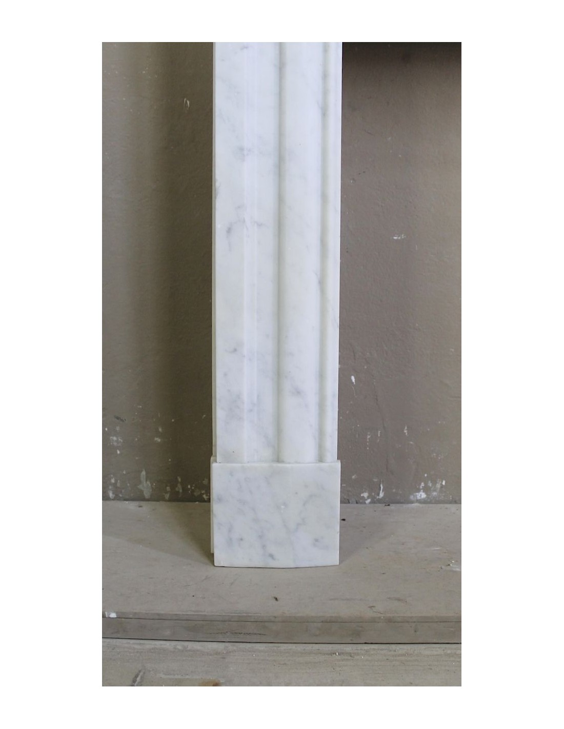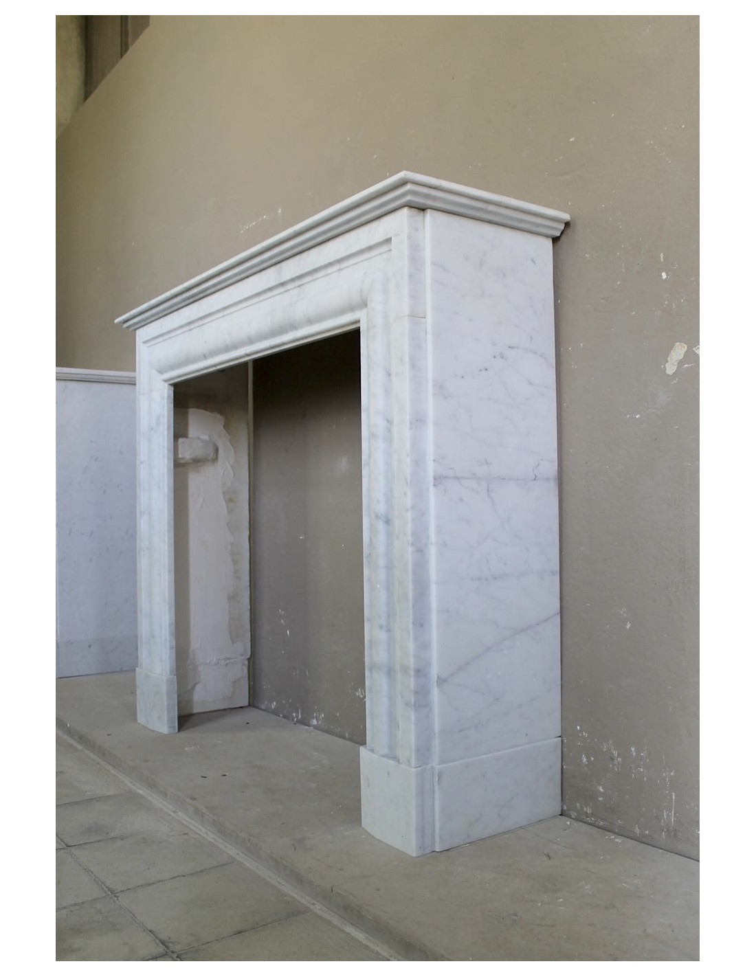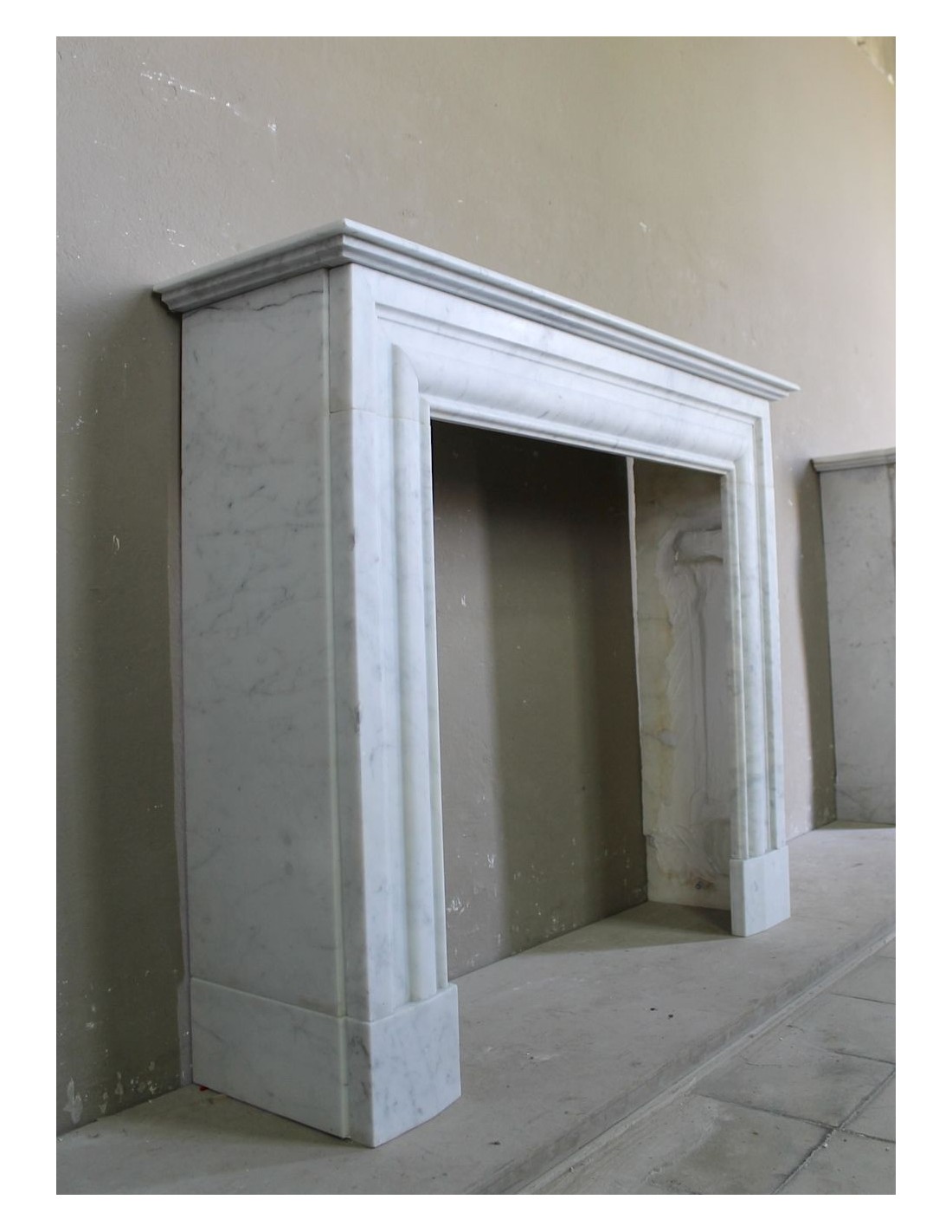 THE CARRÉ MODEL IS THE MOST SOUGHT-AFTER (PERHAPS BECAUSE IT IS THE MOST CLASSIC..) AND THAT IS WHY IT COSTS A LITTLE MORE THAN THE OTHER BOUDIN MODELS. THE MANTEL I PRESENT HERE WAS CARVED FROM A PARTICULARLY CANDID “JOY-WHITE” MARBLE, ITS AGE IS RIGHT (1840-60), ITS PRESERVATION PERFECT (PARTLY BECAUSE THESE STRUCTURES ARE OF SIGNIFICANT THICKNESS, DECISIVELY MORE IMPORTANT THAN ALMOST ALL OTHER ANTIQUE CHIMNEYS ON THE MARKET), ITS RECOVERY HAPPENED IN THE LAND OF BEAUJOLAIS, LYON AREA.