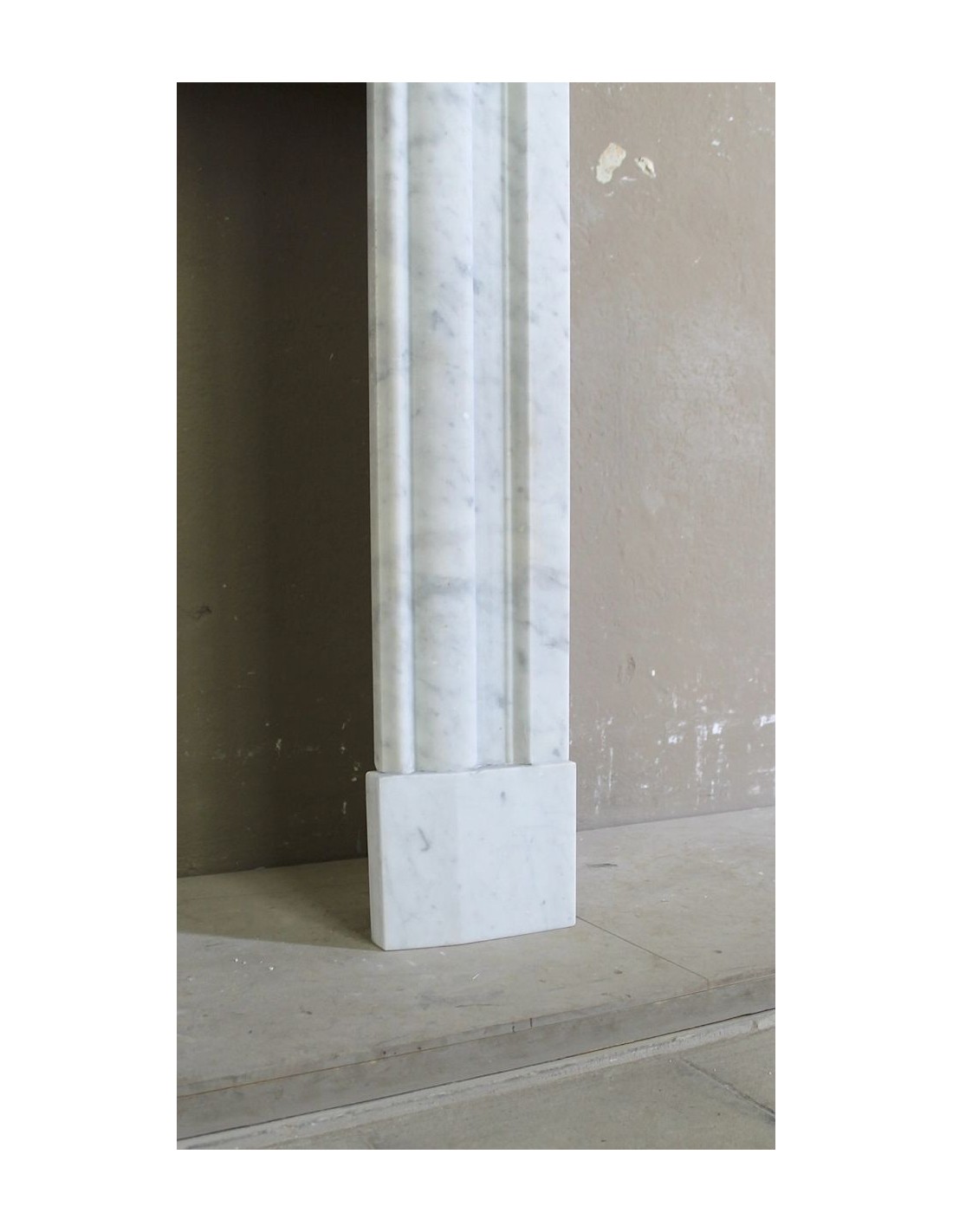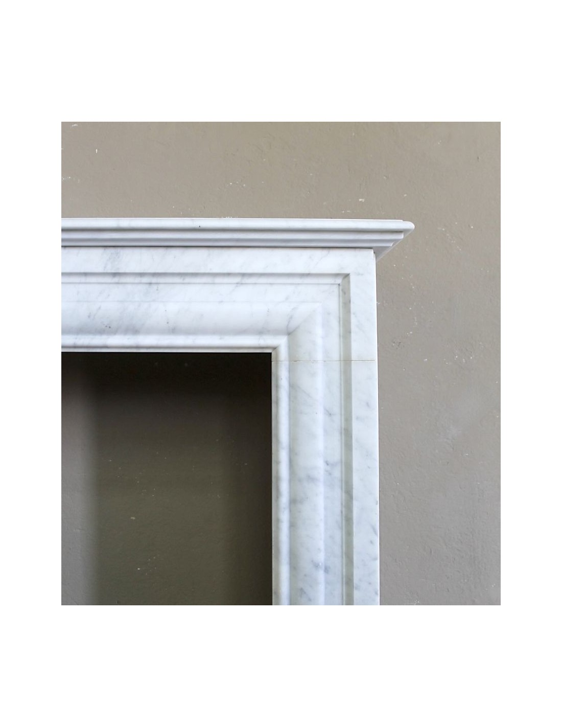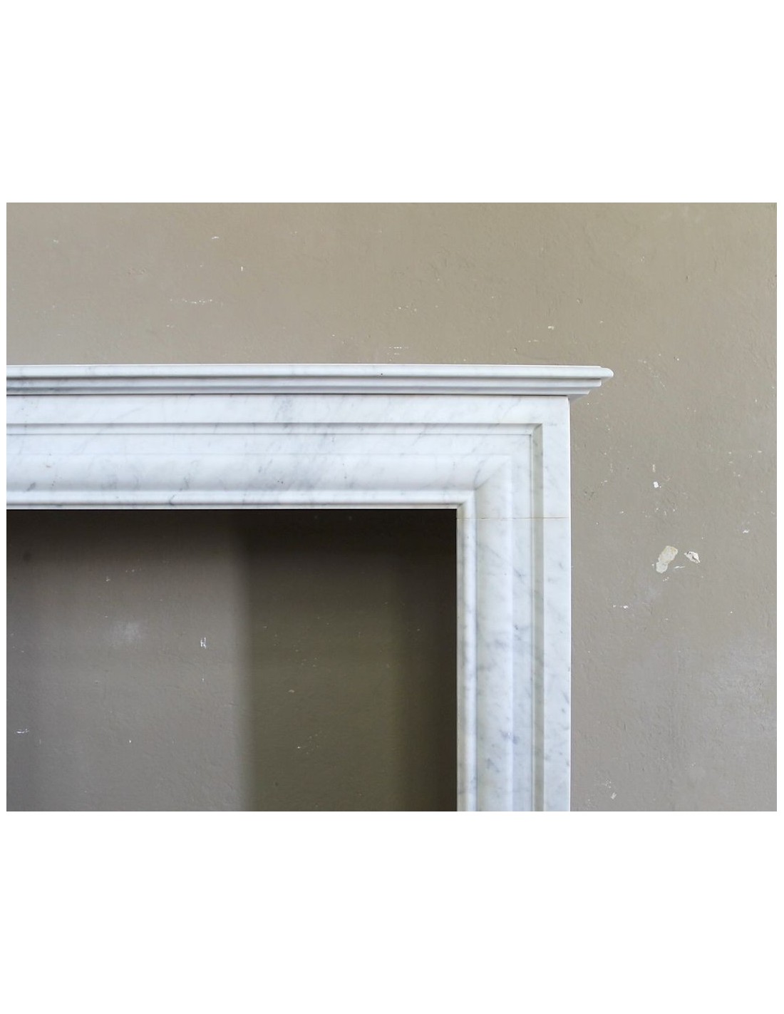 THE CARRÉ MODEL IS THE MOST SOUGHT-AFTER (PERHAPS BECAUSE IT IS THE MOST CLASSIC..) AND THAT IS WHY IT COSTS A LITTLE MORE THAN THE OTHER BOUDIN MODELS. THE MANTEL I PRESENT HERE WAS CARVED FROM A PARTICULARLY CANDID “JOY-WHITE” MARBLE, ITS AGE IS RIGHT (1840-60), ITS PRESERVATION PERFECT (PARTLY BECAUSE THESE STRUCTURES ARE OF SIGNIFICANT THICKNESS, DECISIVELY MORE IMPORTANT THAN ALMOST ALL OTHER ANTIQUE CHIMNEYS ON THE MARKET), ITS RECOVERY HAPPENED IN THE LAND OF BEAUJOLAIS, LYON AREA.