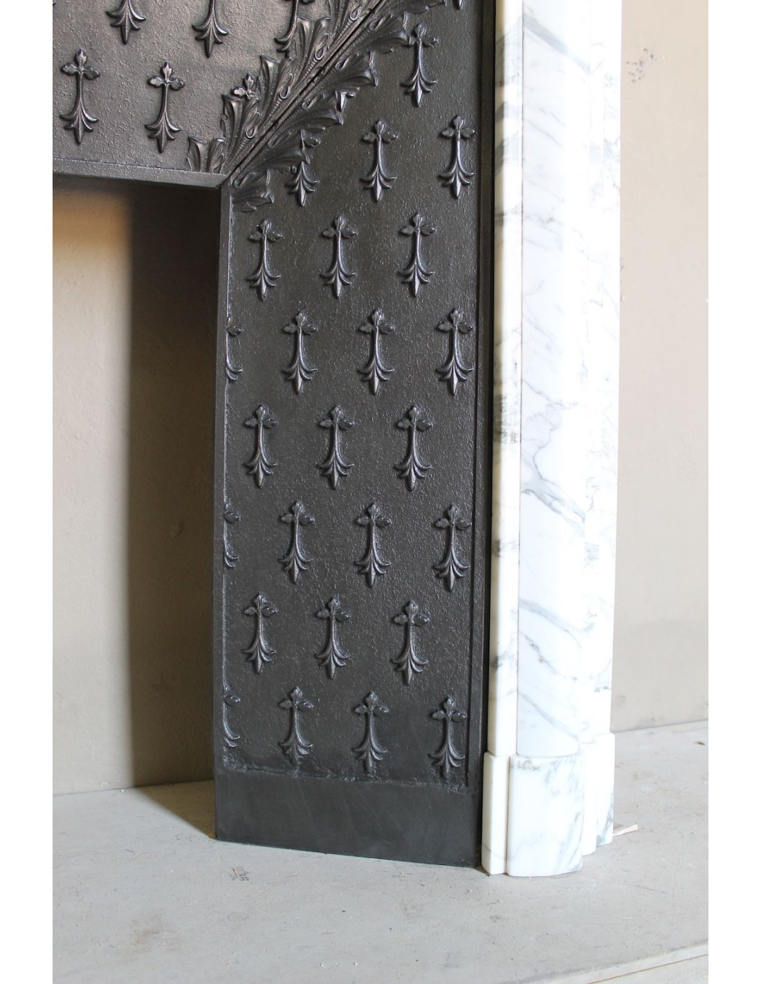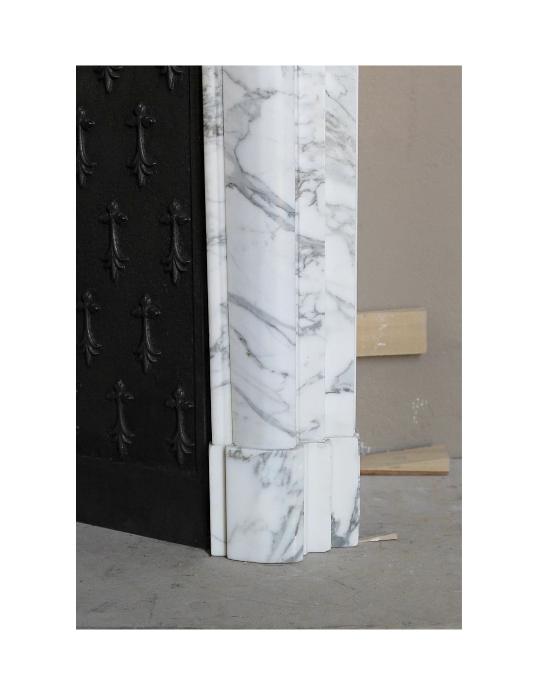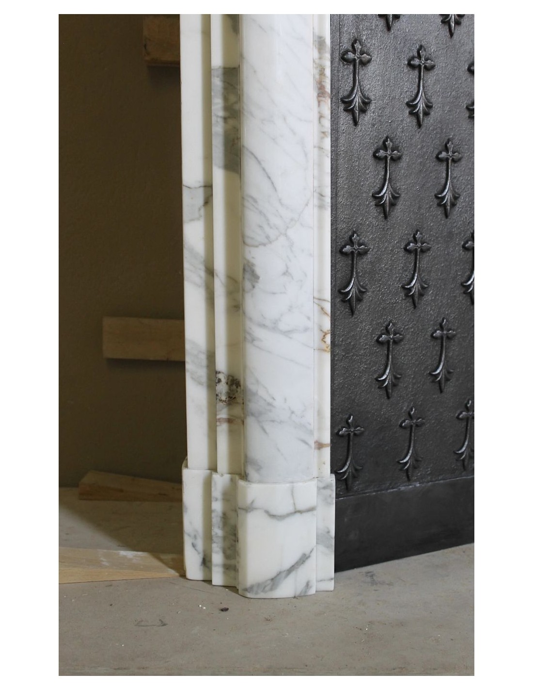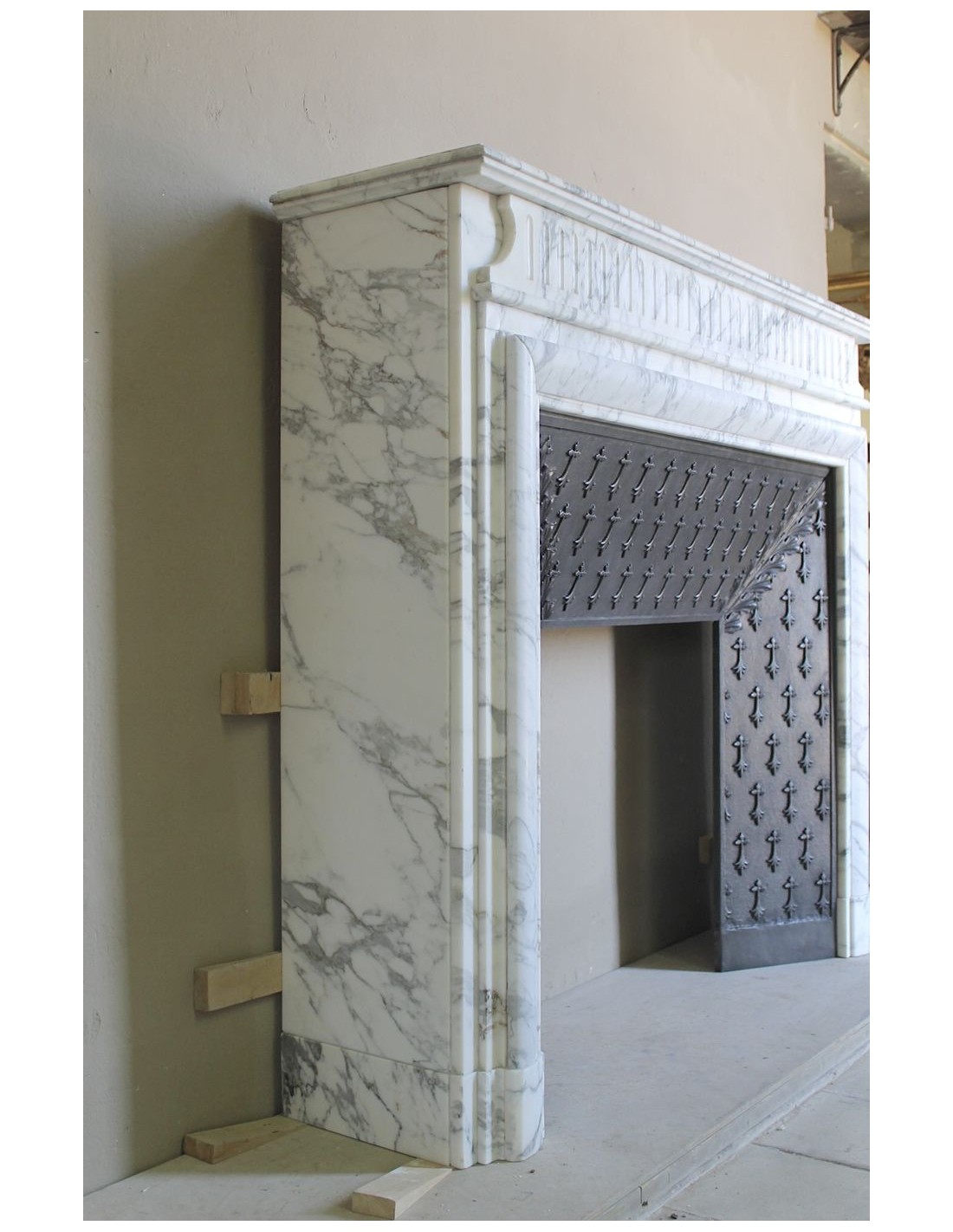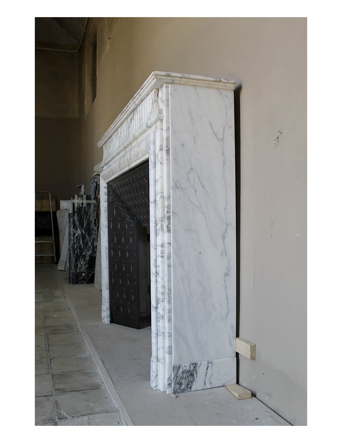 Boudin's fireplaces may or may not be liked, but they are always of great constructive quality, no sparing was made in the sculpting workshops of this builder (in its heyday there were two such sculpting places, one in Nice and one in Marseilles, it was to those ports that the marbles came from Lunigiana), the thicknesses were important and the materials had to be first-rate, and, since Calacatta Classico marble was one of the top of the class, well, two and two make four..