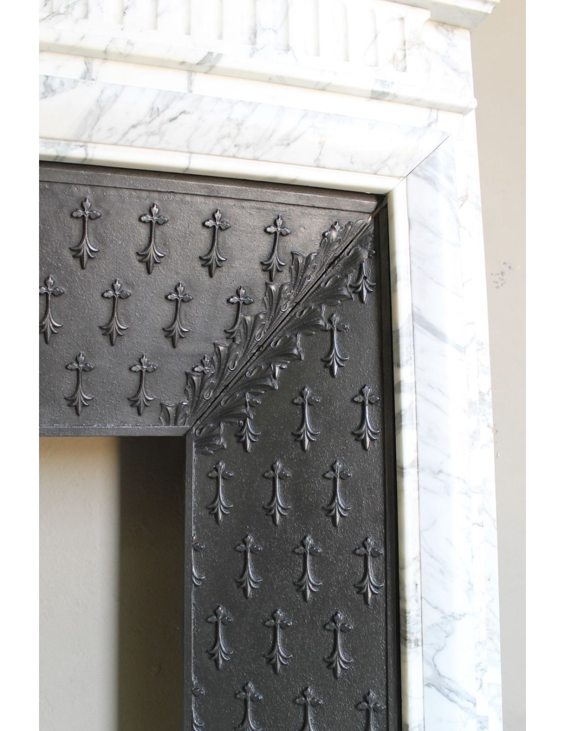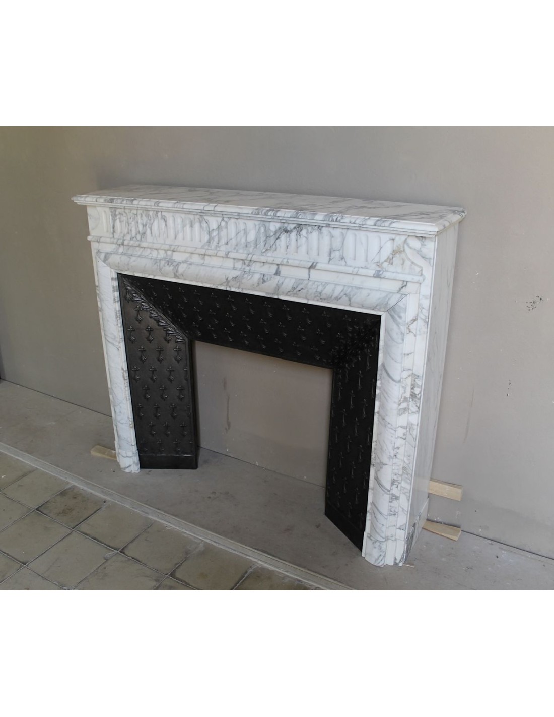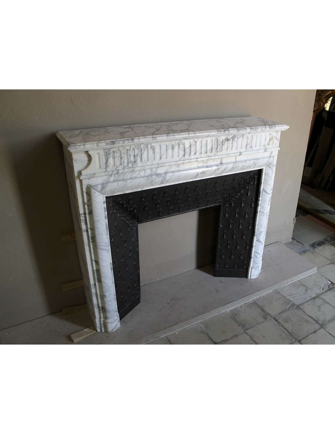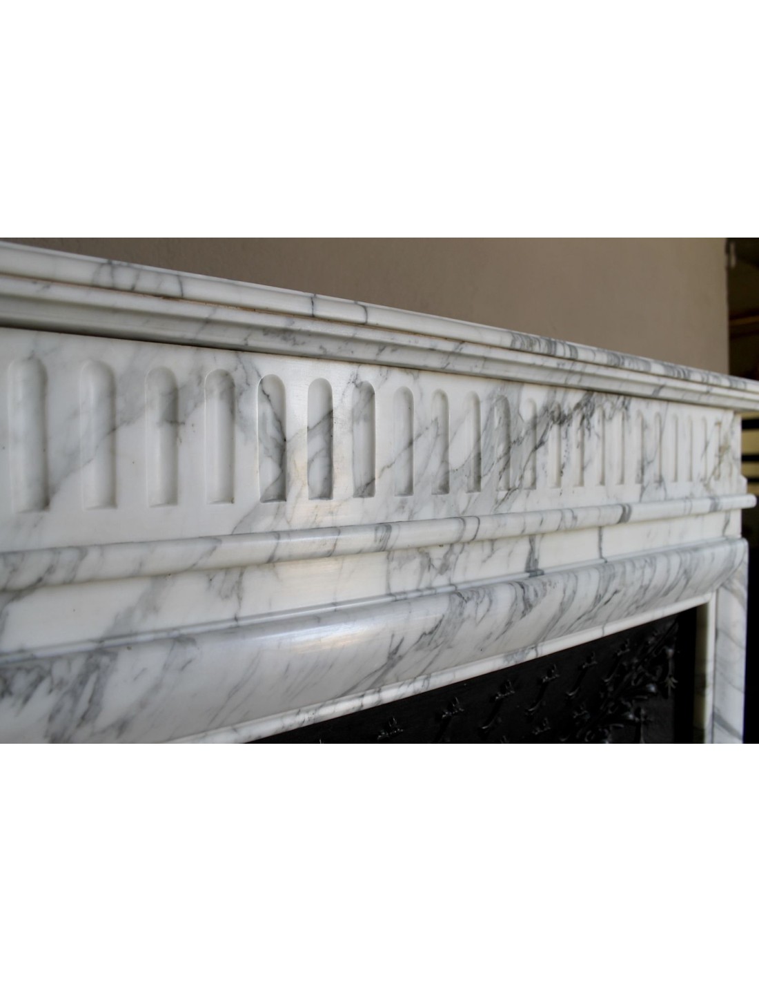 The person who carved in Calacatta Classico marble the fireplace I am presenting to you is the mythical Boudin, a sympathetic “fanatic” of French Grandeur, of Napoleon in particular, but also (and he couldn't help but be) of the equally mythical Sun King, Louis XIV, the one who in Versailles created the most beautiful maison in the world.