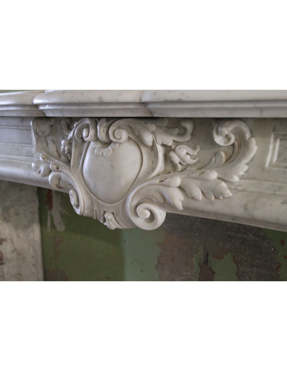 THE FIREPLACE I PRESENT TODAY IS A VERY RARE LOUIS XIV MANTEL IN CARRARA WHITE MARBLE, OF PARISIAN PROVENANCE, GREAT “CLEANLINESS” AND HOMOGENEITY, MID-NINETEENTH CENTURY ERA, EXCELLENT OVERALL CONSERVATION.