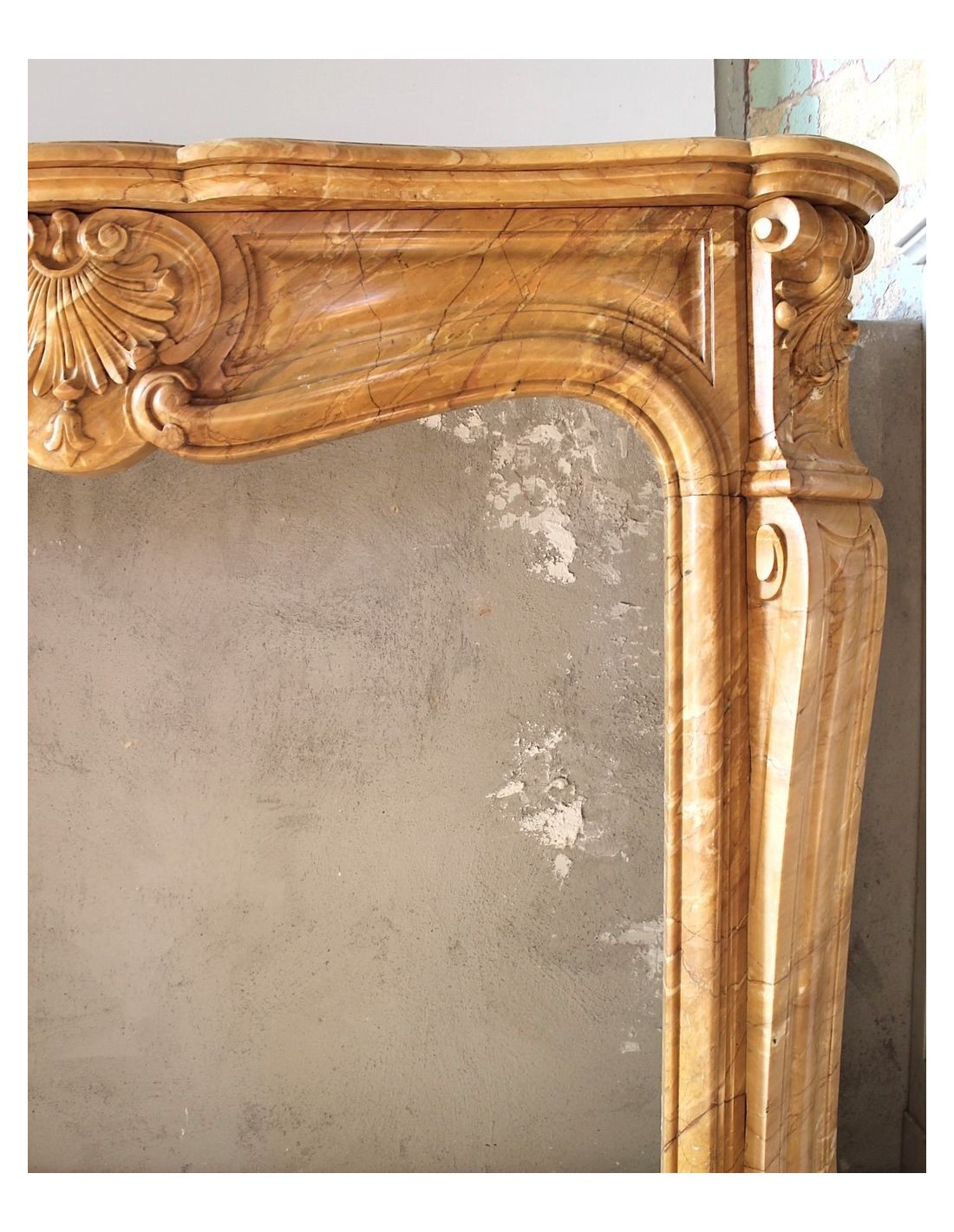 In more than 40 years of (very happy) “work” among antique fireplaces, ONLY ONCE (A TWENTY YEARS AGO) had I come across a specimen of this stylistic model carved in Giallo Siena marble.