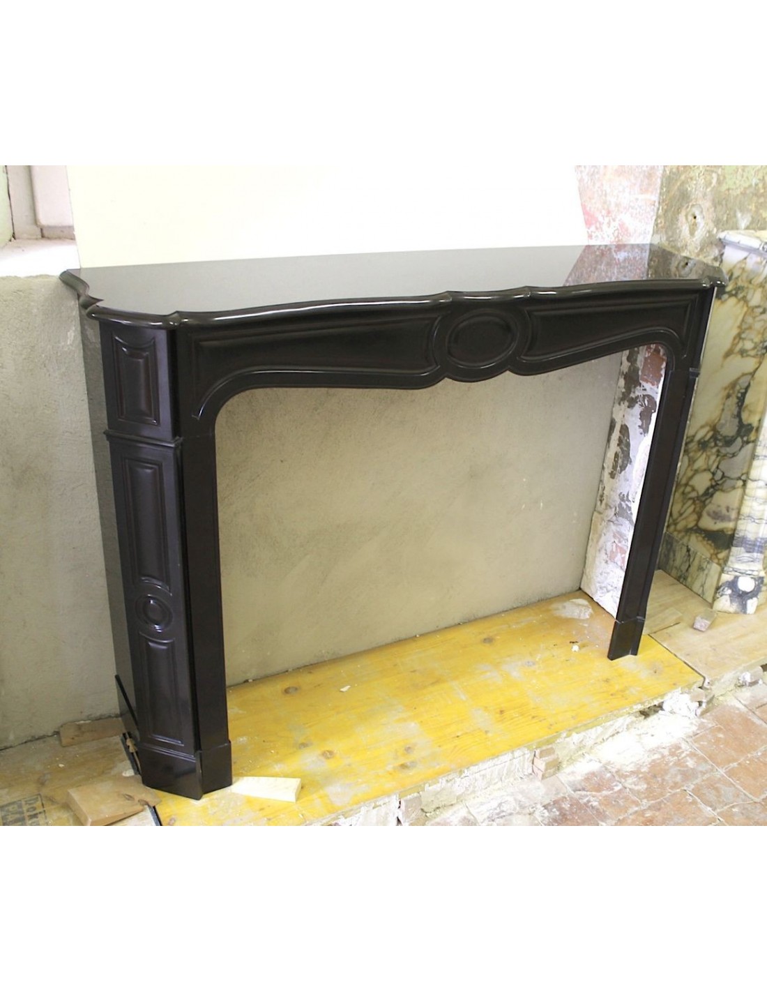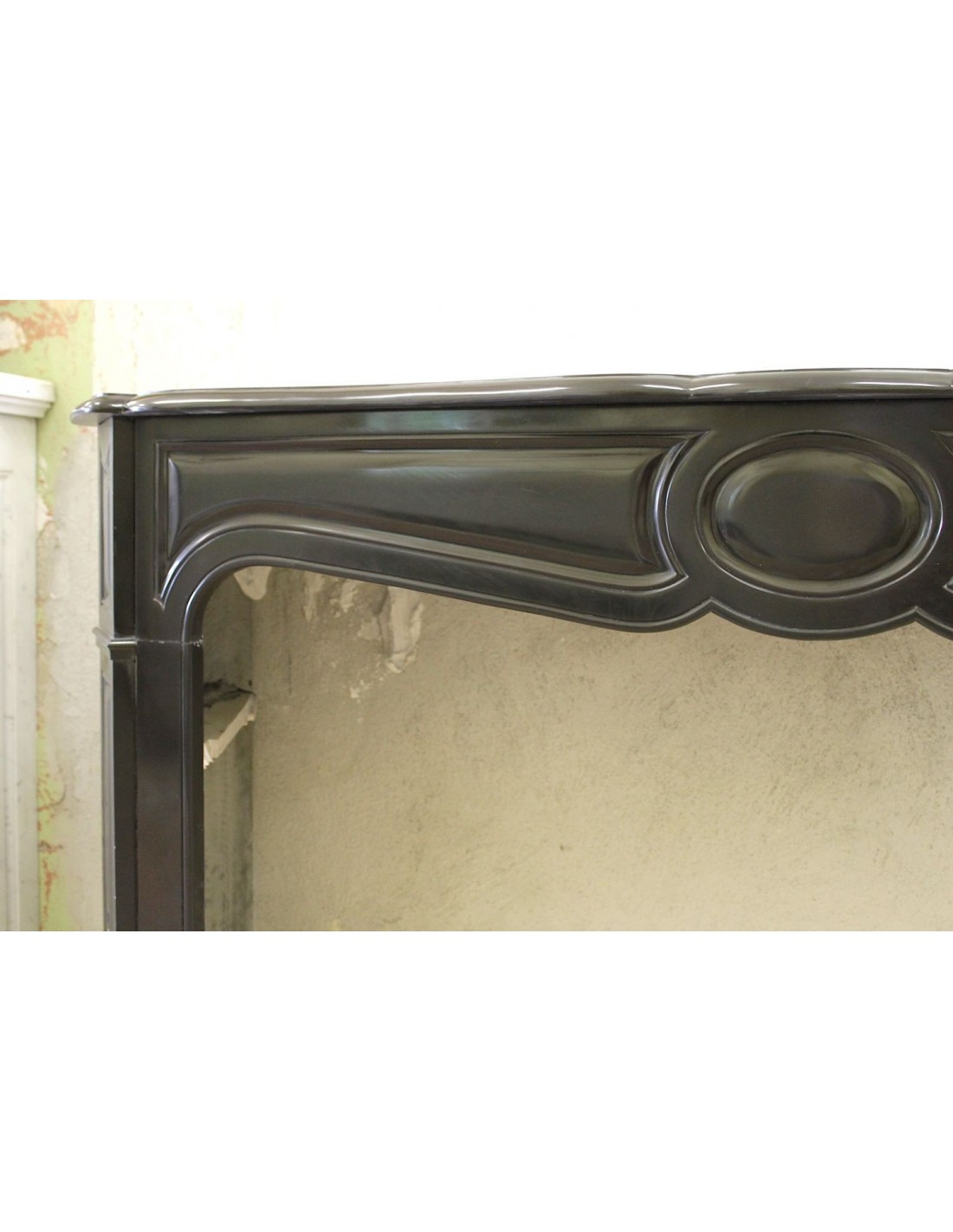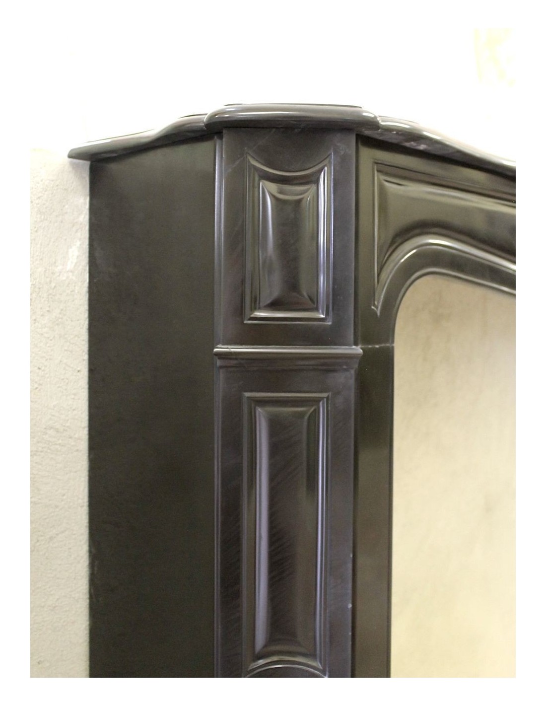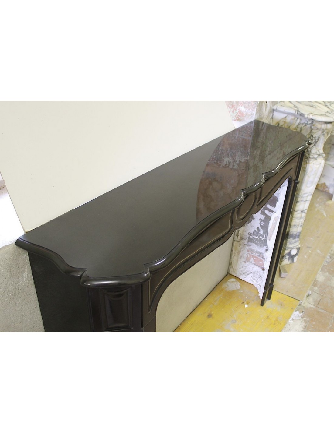 054 ANTIQUE ORIGINAL "POMPADOUR BOMBÉ" FIREPLACE MANTEL CARVED IN BLACK BELGIUM MARBLE