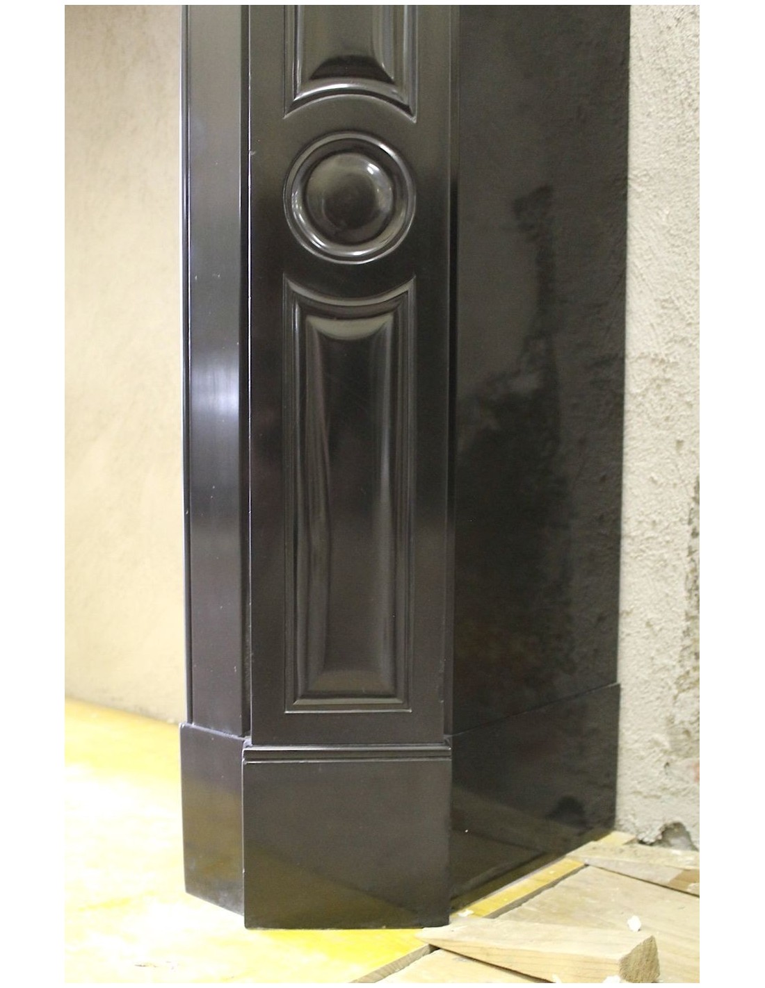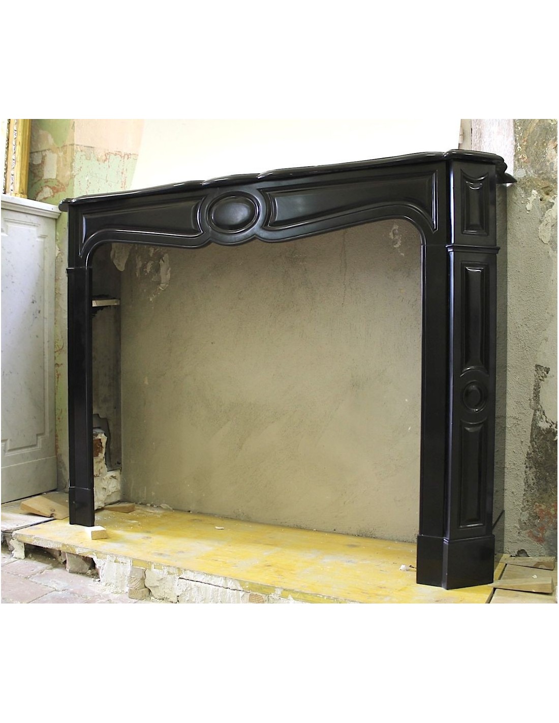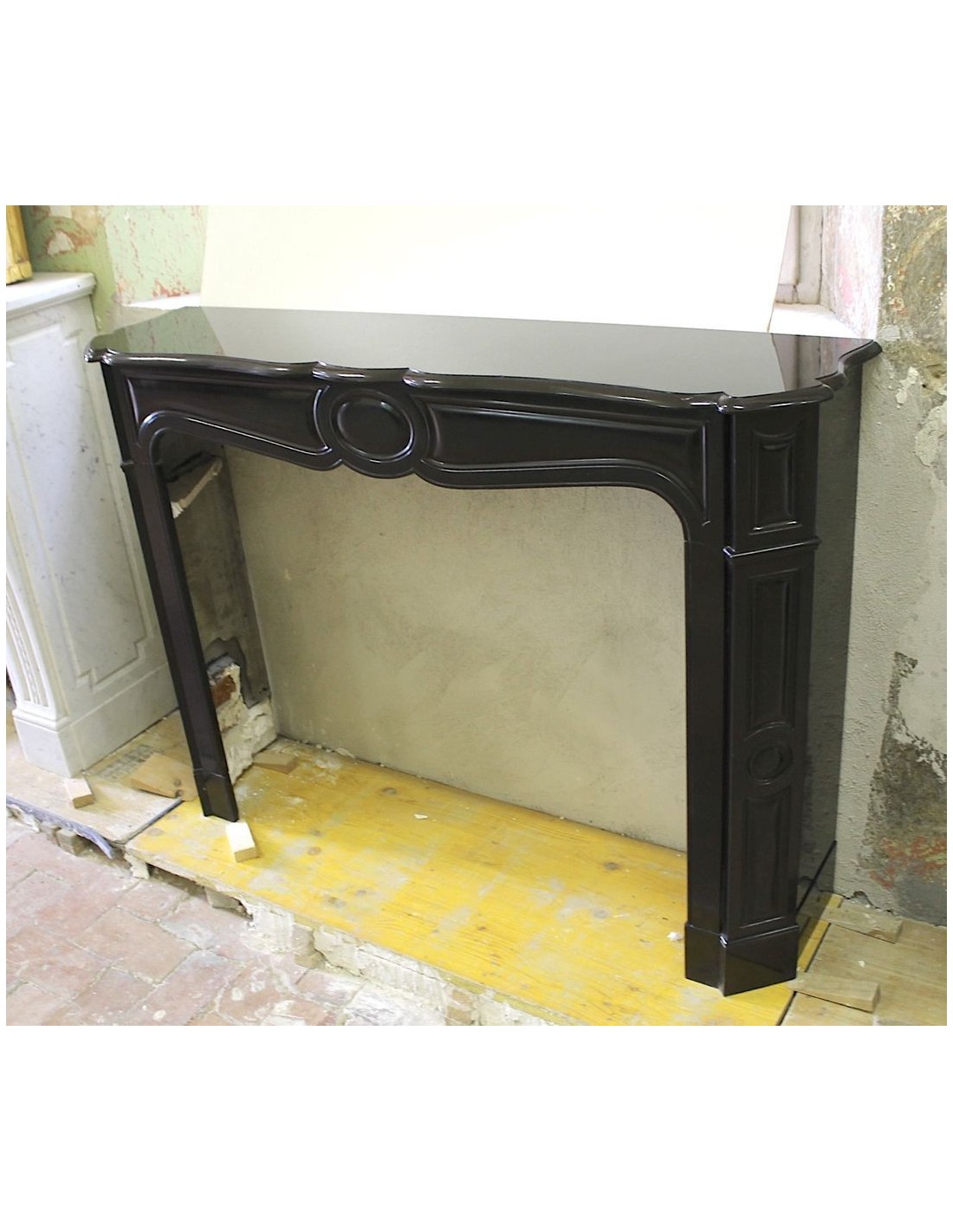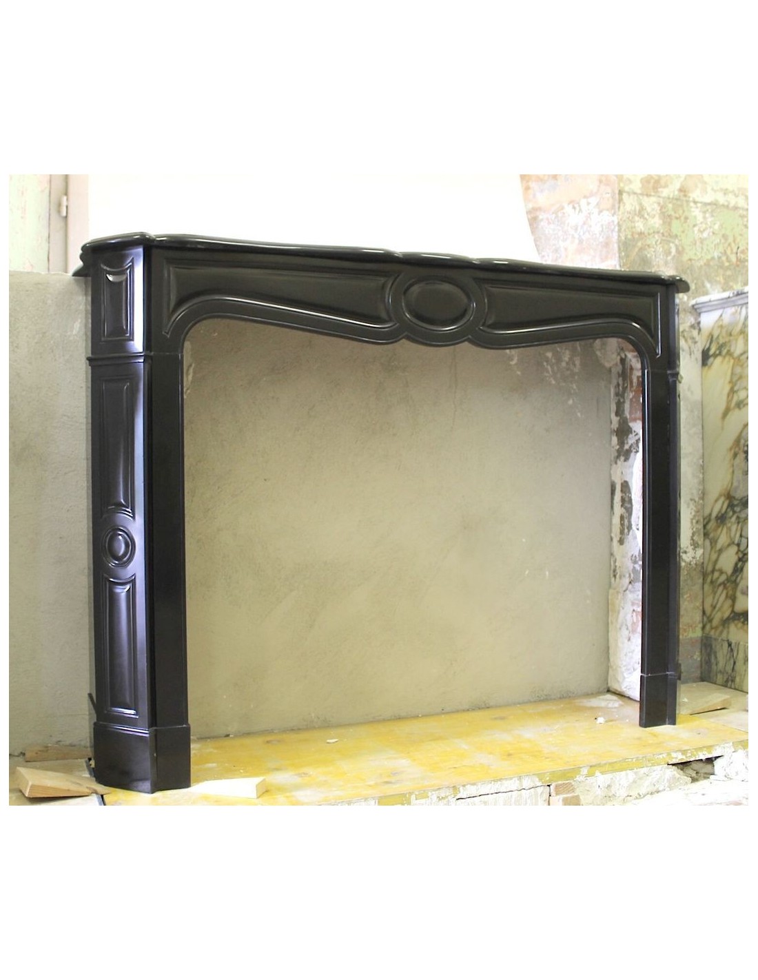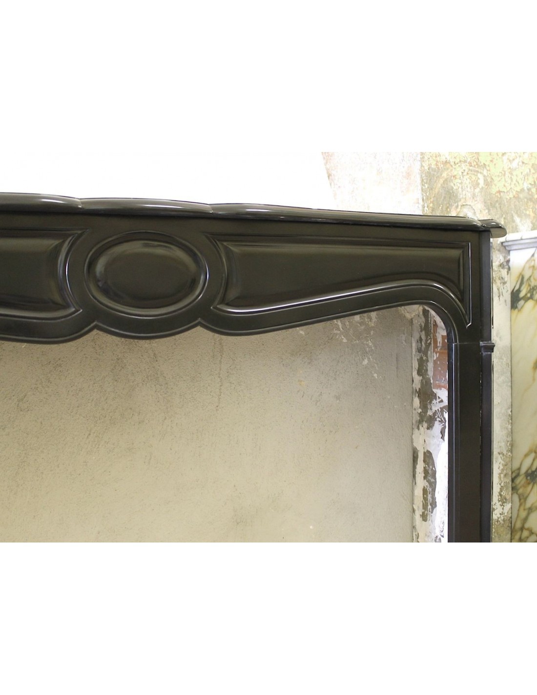 054 ANTIQUE ORIGINAL "POMPADOUR BOMBÉ" FIREPLACE MANTEL CARVED IN BLACK BELGIUM MARBLE