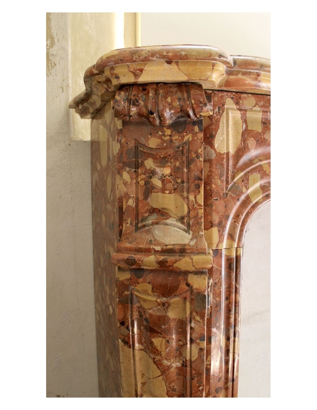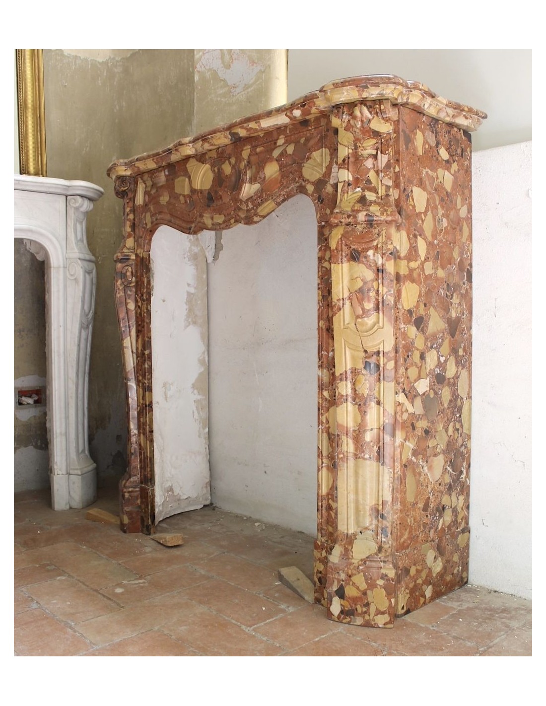 ANTIQUE LOUIS XV POMPADOUR PIED GALBE' FIREPLACE IN PRECIOUS BRECCIA D'ALEPPO MARBLE, FOUND IN PARIS.