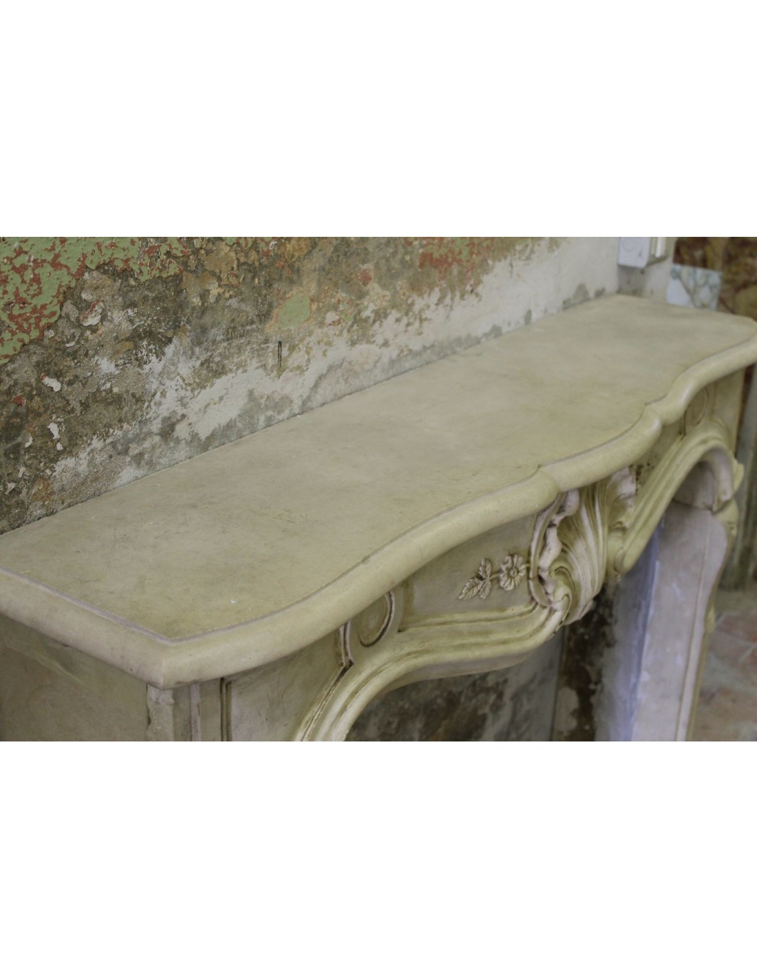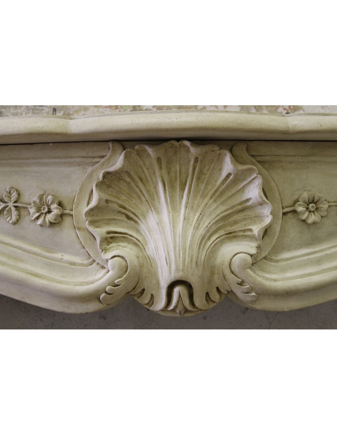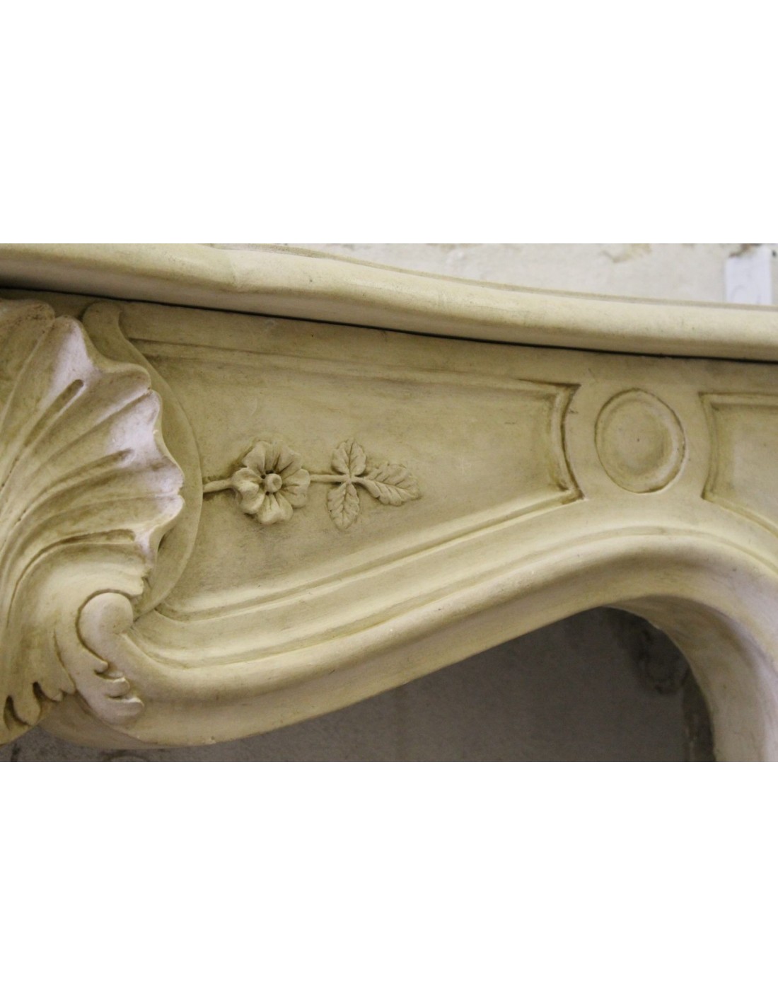 926 VERY RARE, FLORAL AND LOVELY “TRANSITION” FIREPLACE IN PIERRE DORÉE STONE