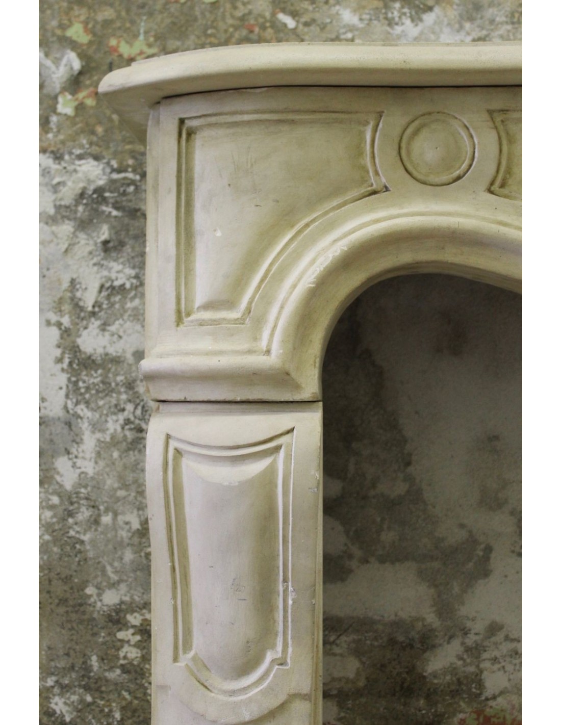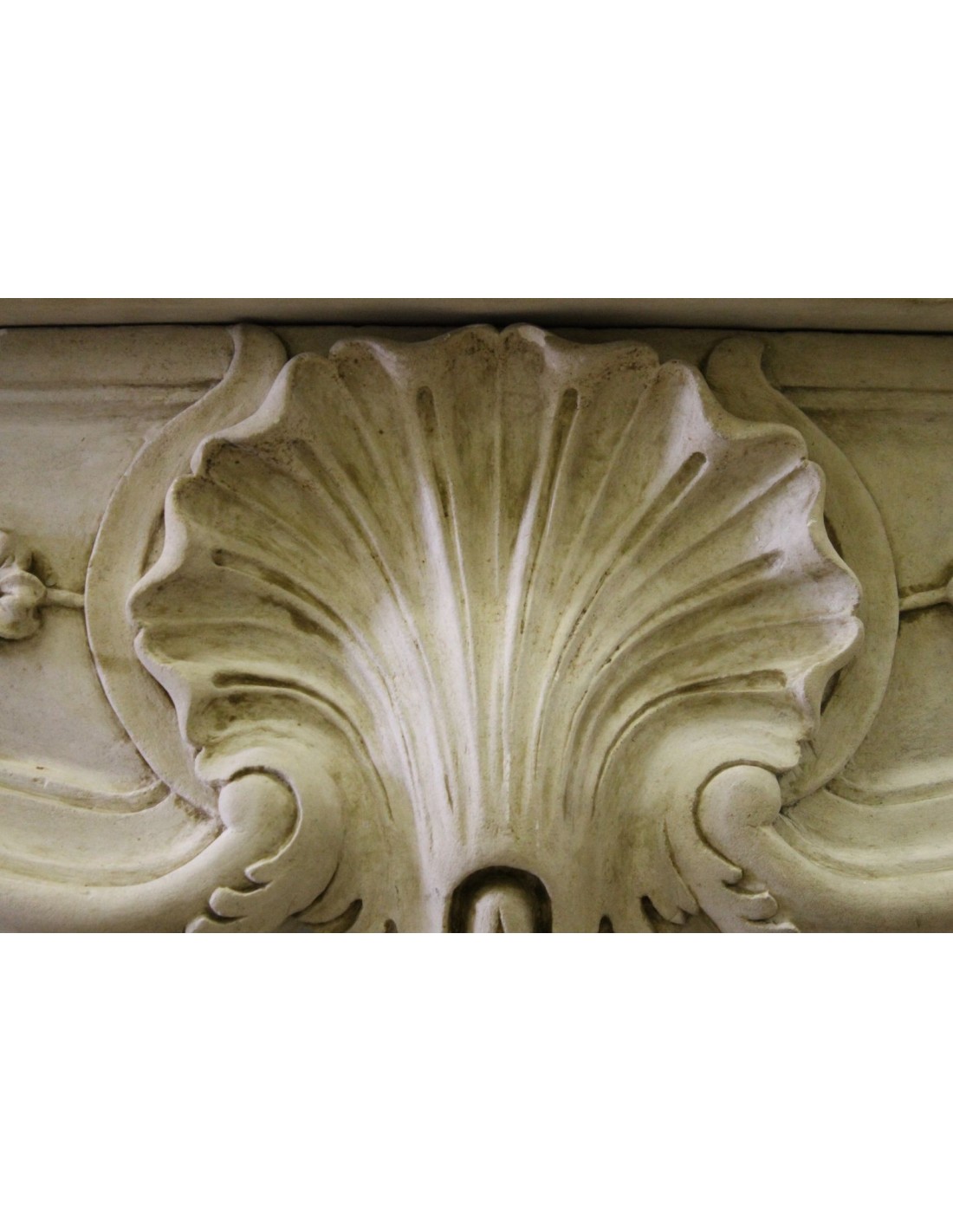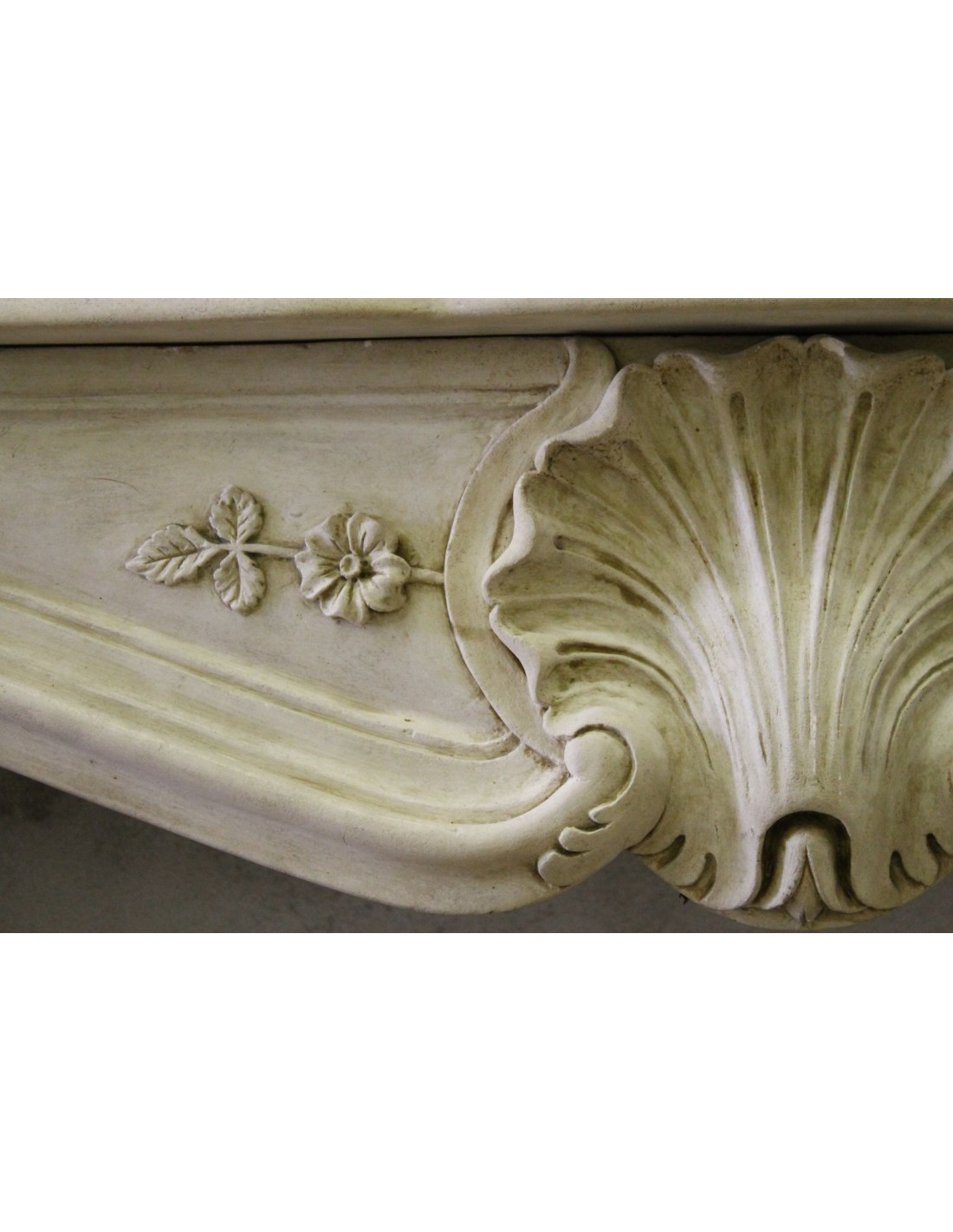 926 VERY RARE, FLORAL AND LOVELY “TRANSITION” FIREPLACE IN PIERRE DORÉE STONE