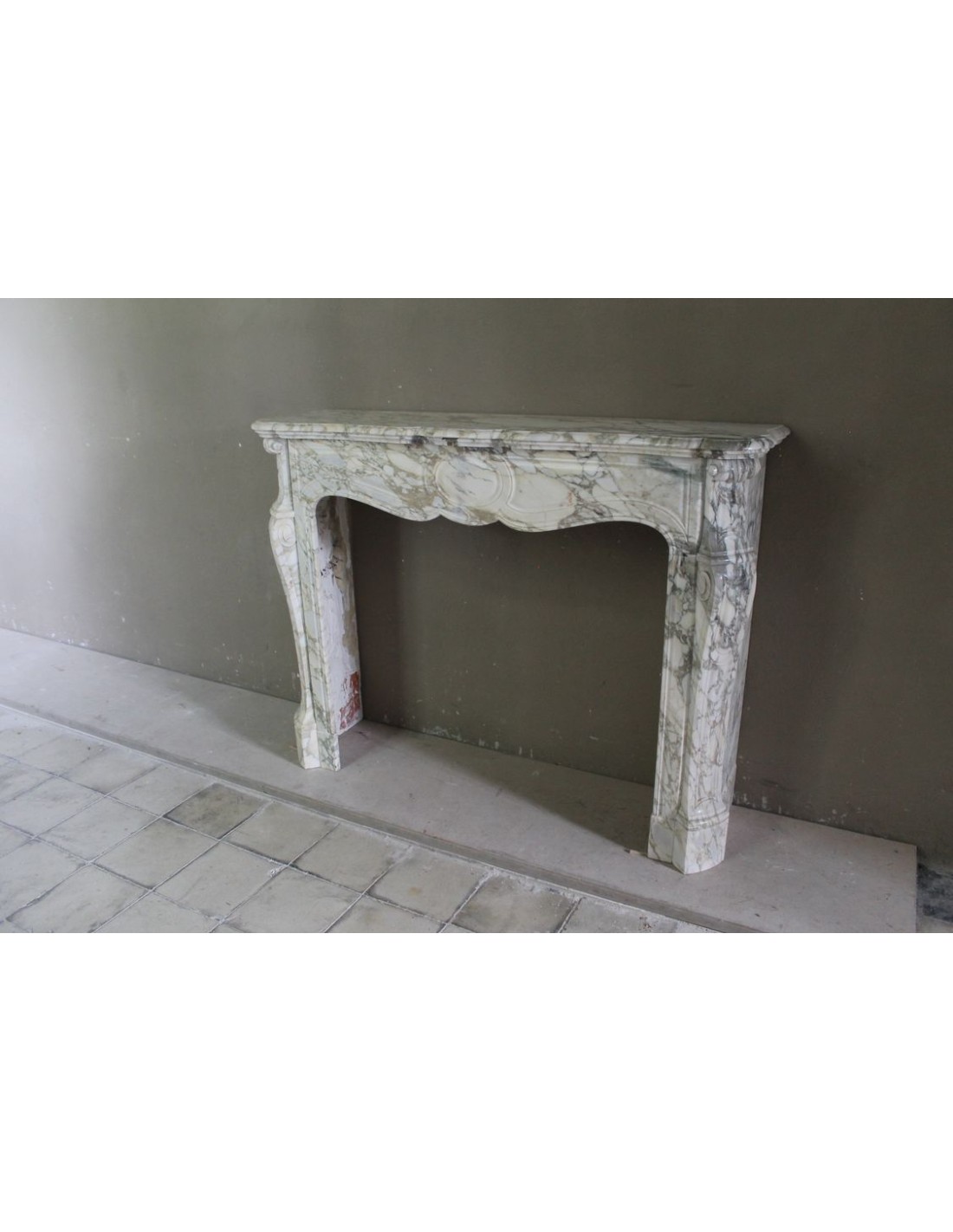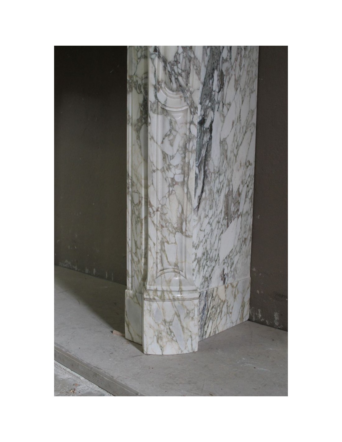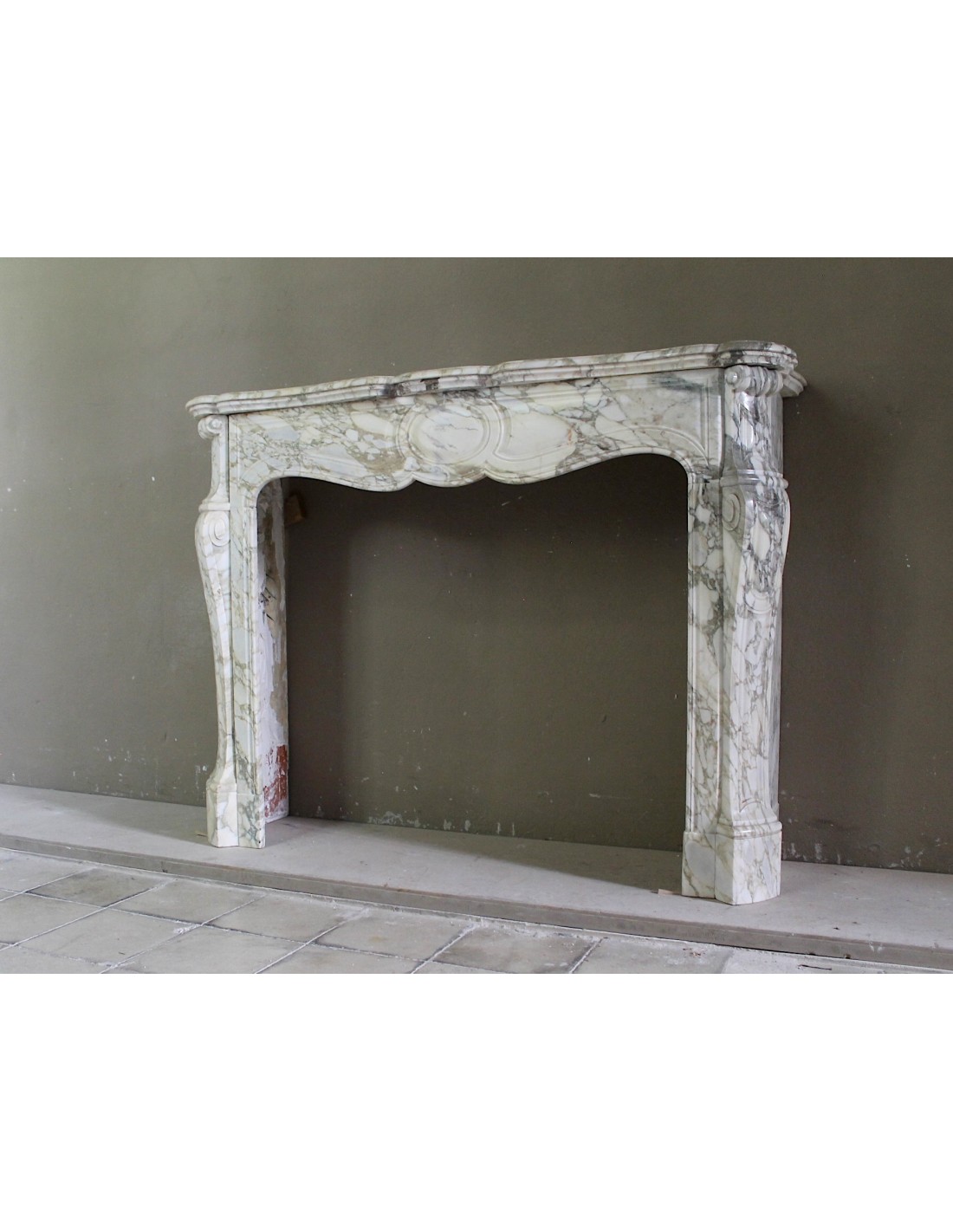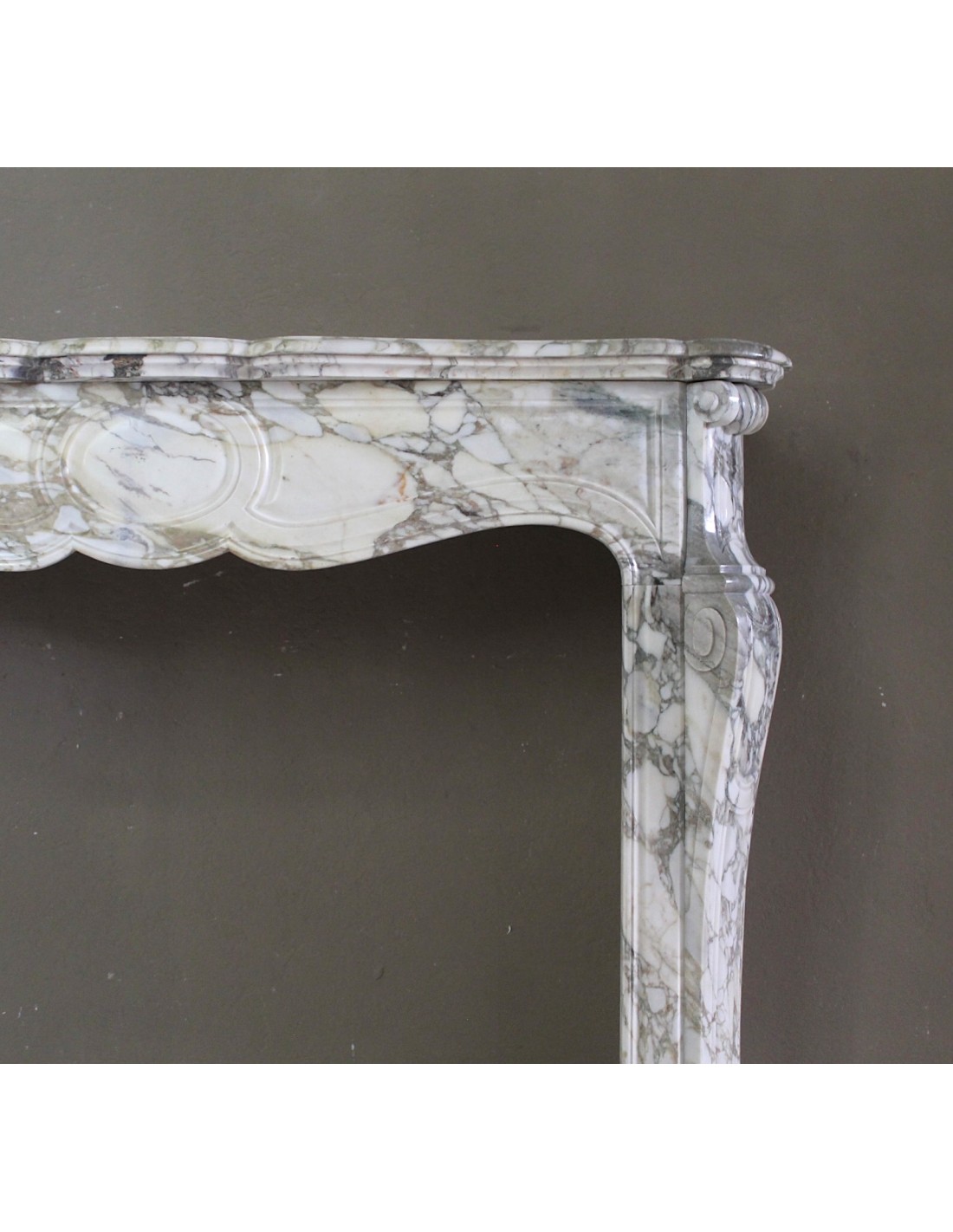 Antique Louis XV "Pompadour Pied Galbé" fireplace mantel sculpted out of an exceptional Calacatta Gold marble. This mantel is antique, original, authentic and dates back to the Second Half of the XIXth century and it is an Italian work of art.