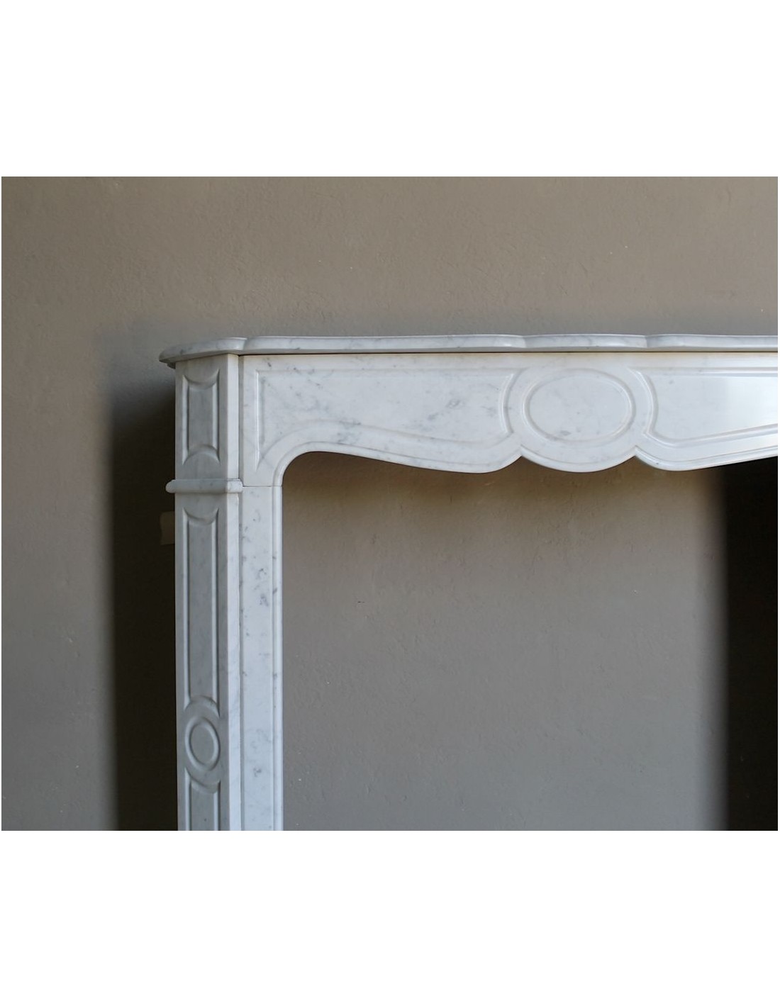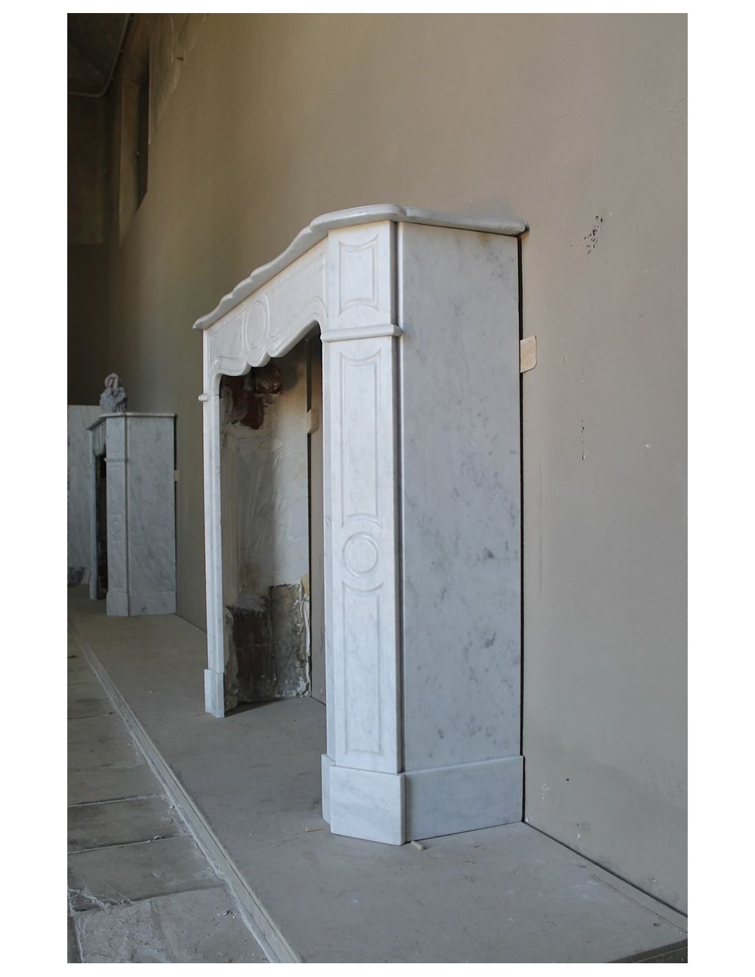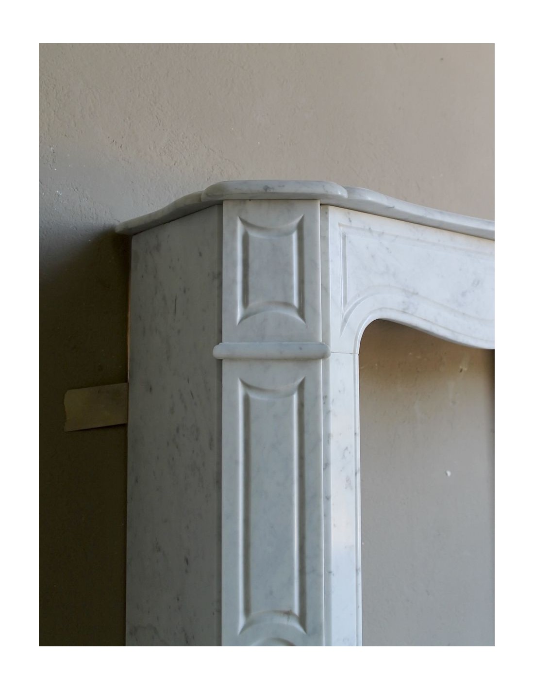 PARISIAN “ POMPADOUR PLAT” MANTELPIECE*** IN WHITE CARRARA MARBLE, EXCELLENT CONDITION, LATE 19TH CENTURY AND A VERY IMPORTANT DETAIL IN MY OPINION, IN A WIDTH (119 CM) AMONG THE MOST SUITABLE FOR OUR INCREASINGLY SMALL APARTMENTS.