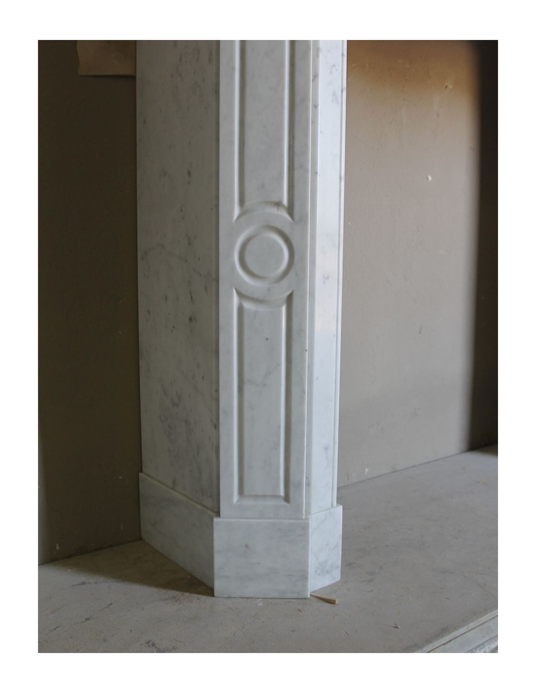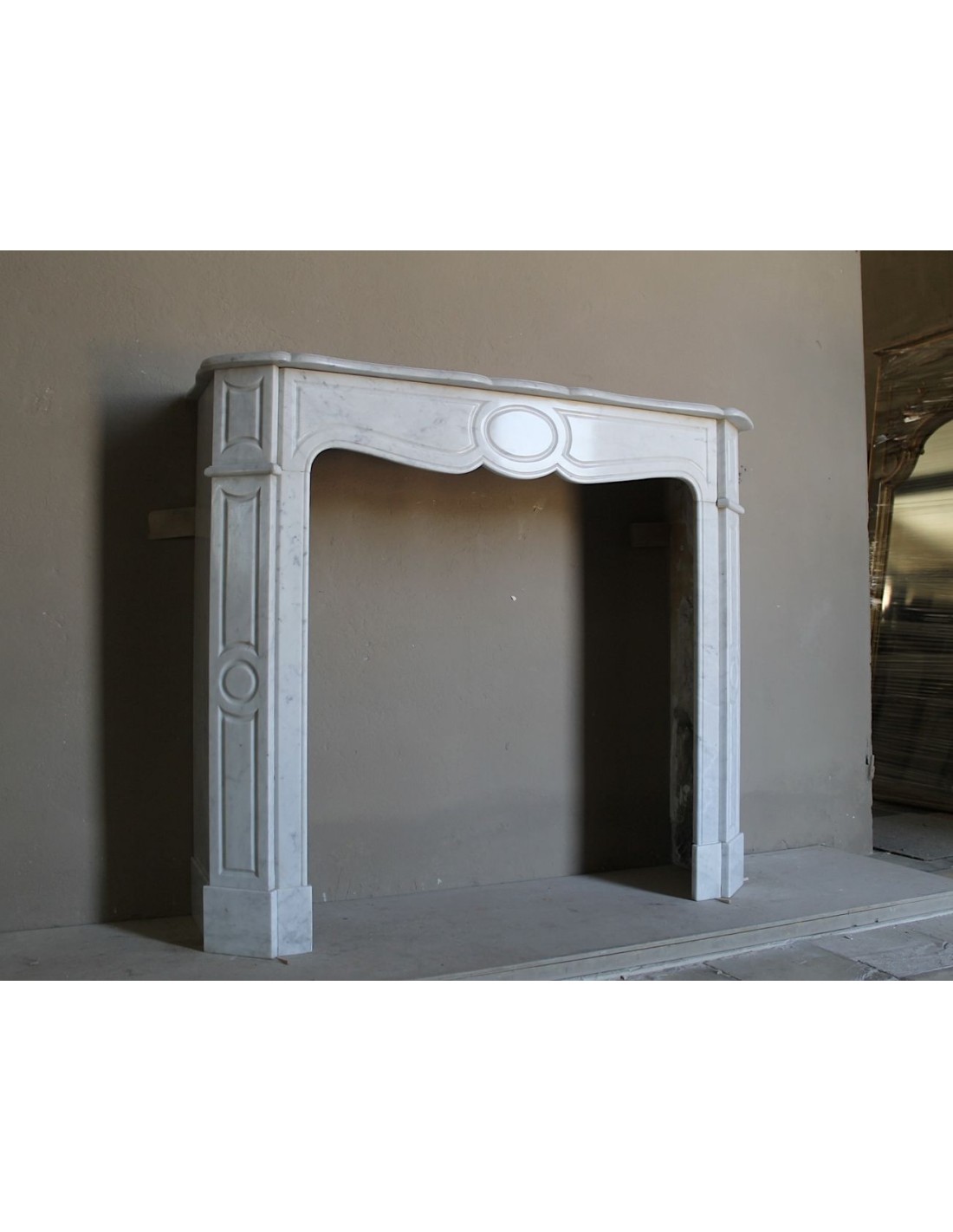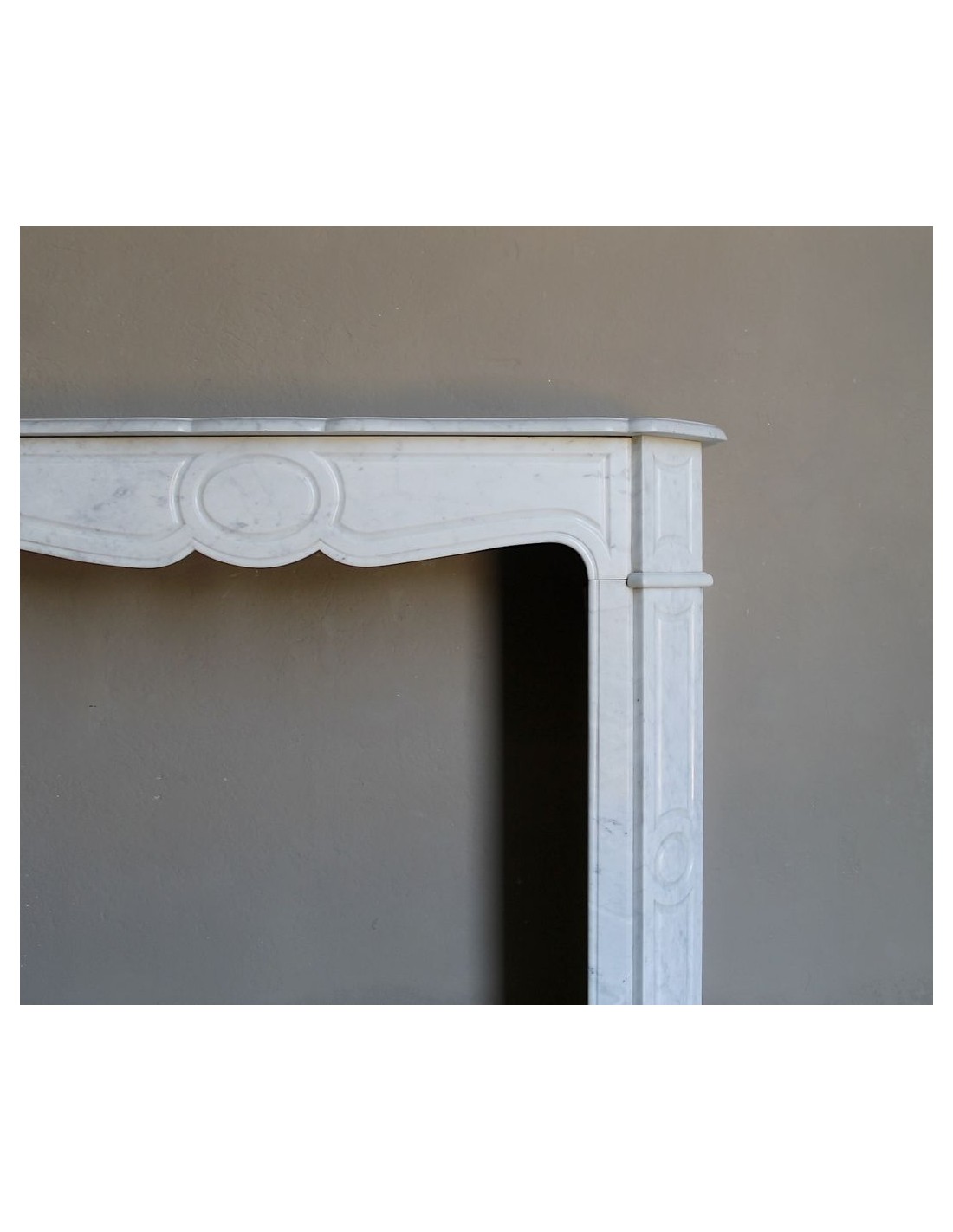 PARISIAN “ POMPADOUR PLAT” MANTELPIECE*** IN WHITE CARRARA MARBLE, EXCELLENT CONDITION, LATE 19TH CENTURY AND A VERY IMPORTANT DETAIL IN MY OPINION, IN A WIDTH (119 CM) AMONG THE MOST SUITABLE FOR OUR INCREASINGLY SMALL APARTMENTS.