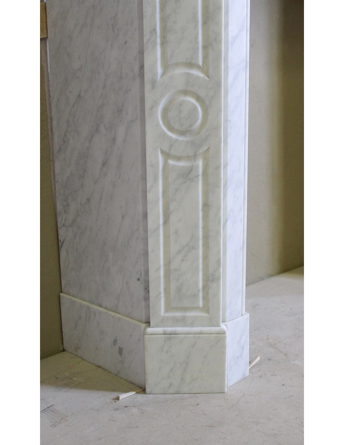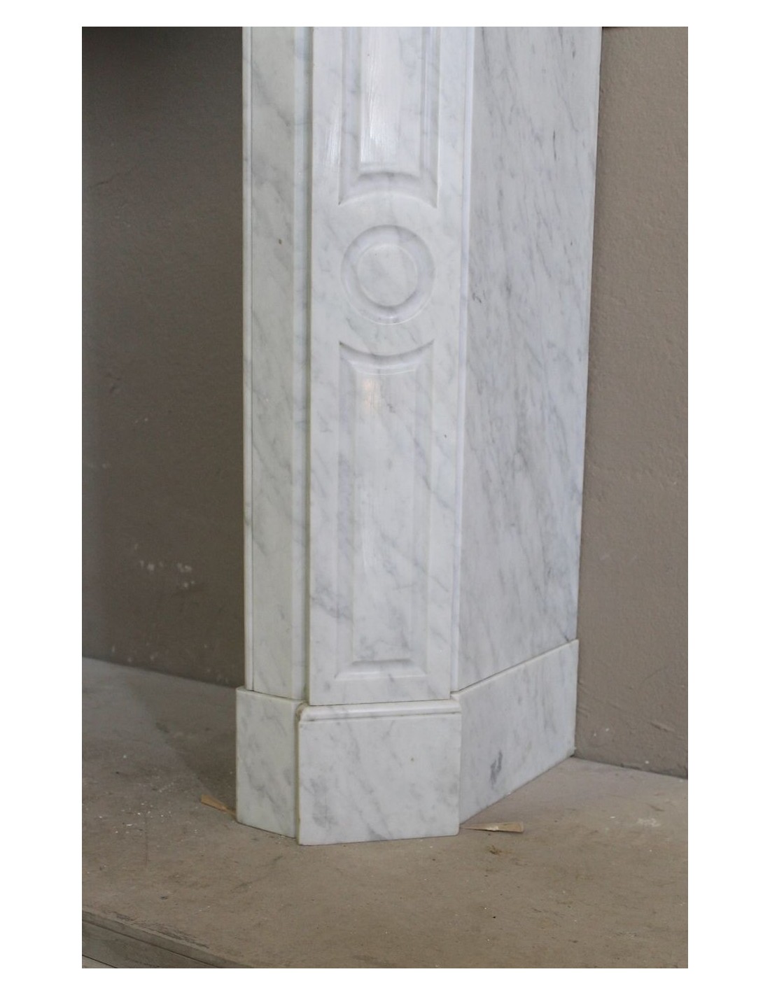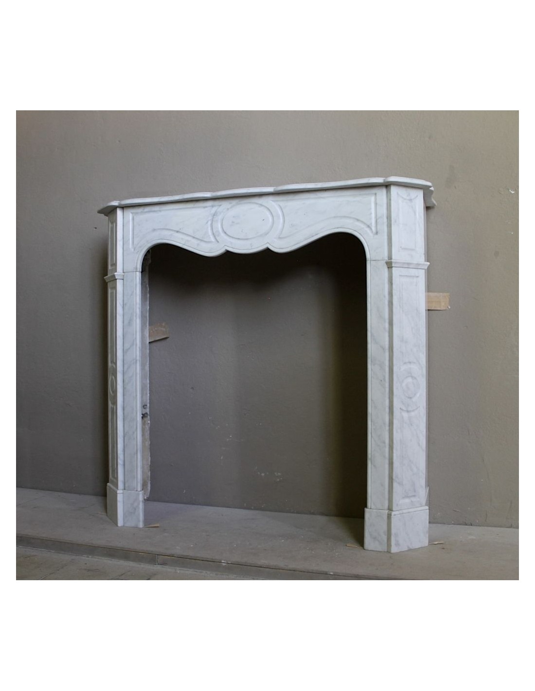 Pompadour plat mantel in decent quality White Carrara marble, decidedly homogeneous in the color of its slabs, decidedly perfect in preservation, sculpture period late 1800s, ridiculous price if we think of how much the costs alone amount to for research, disassembly on site, transport to our storage, cleaning/sanitizing, restorations if applicable, waxing with traditional systems, mounting in exhibition, photographs and internet publications, possible delivery expenses if and when carried out by us with our own means and personnel...