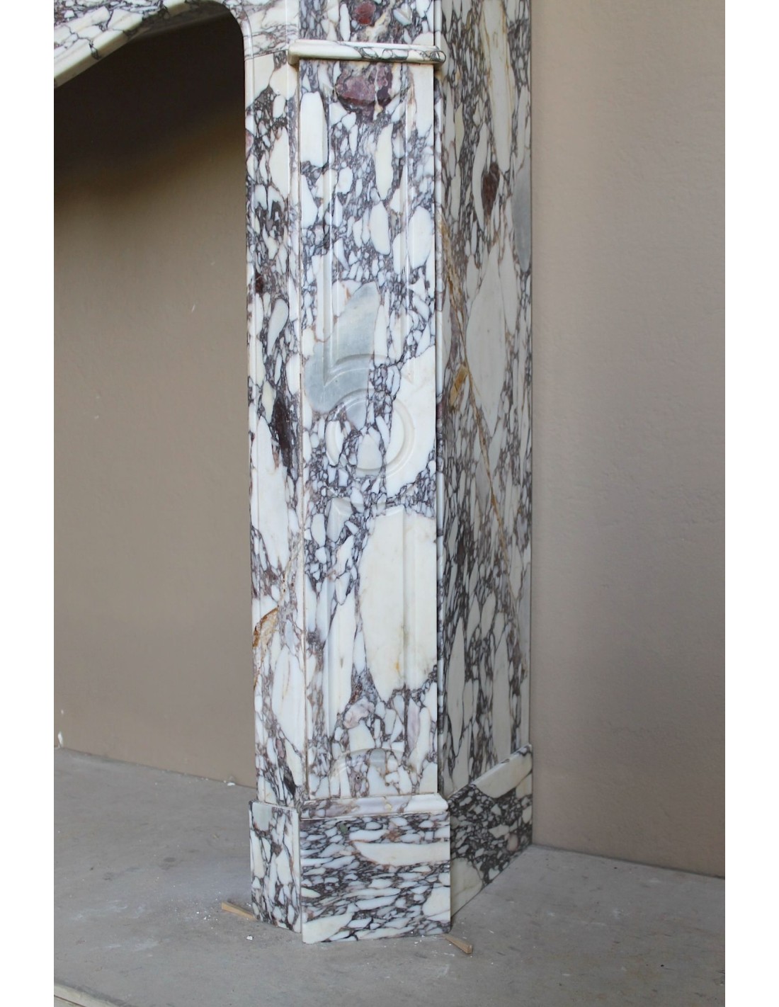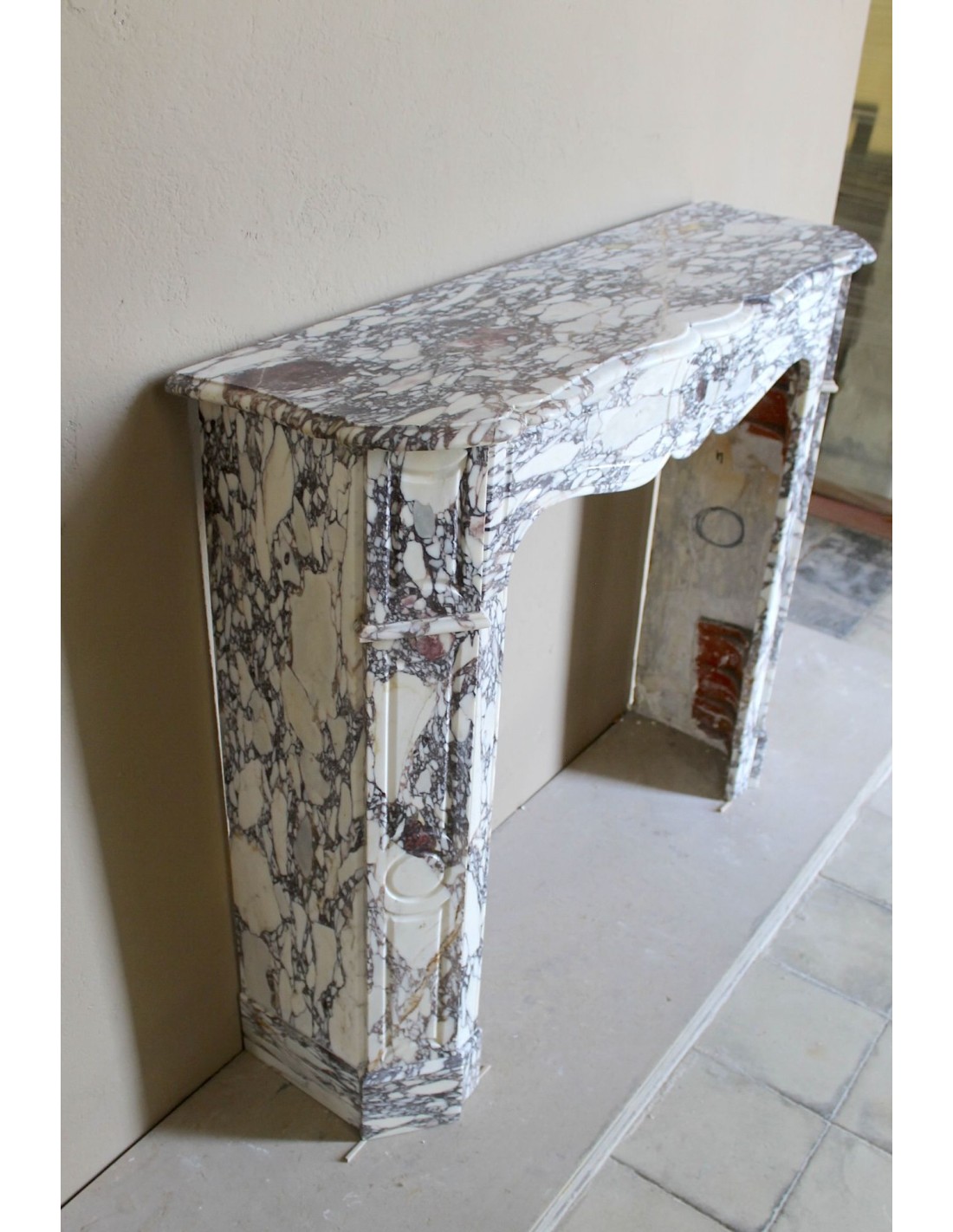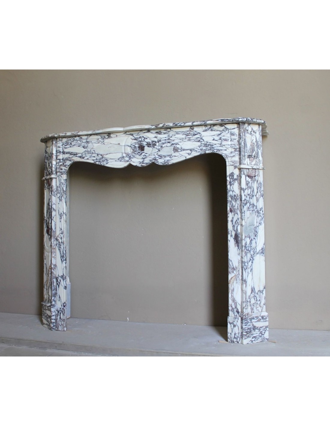 053 LOUIS XV “POMPADOUR PLAT” FIREPLACE MANTEL CARVED IN EXTREMELY RARE BRECCIA VIOLETTA MARBLE