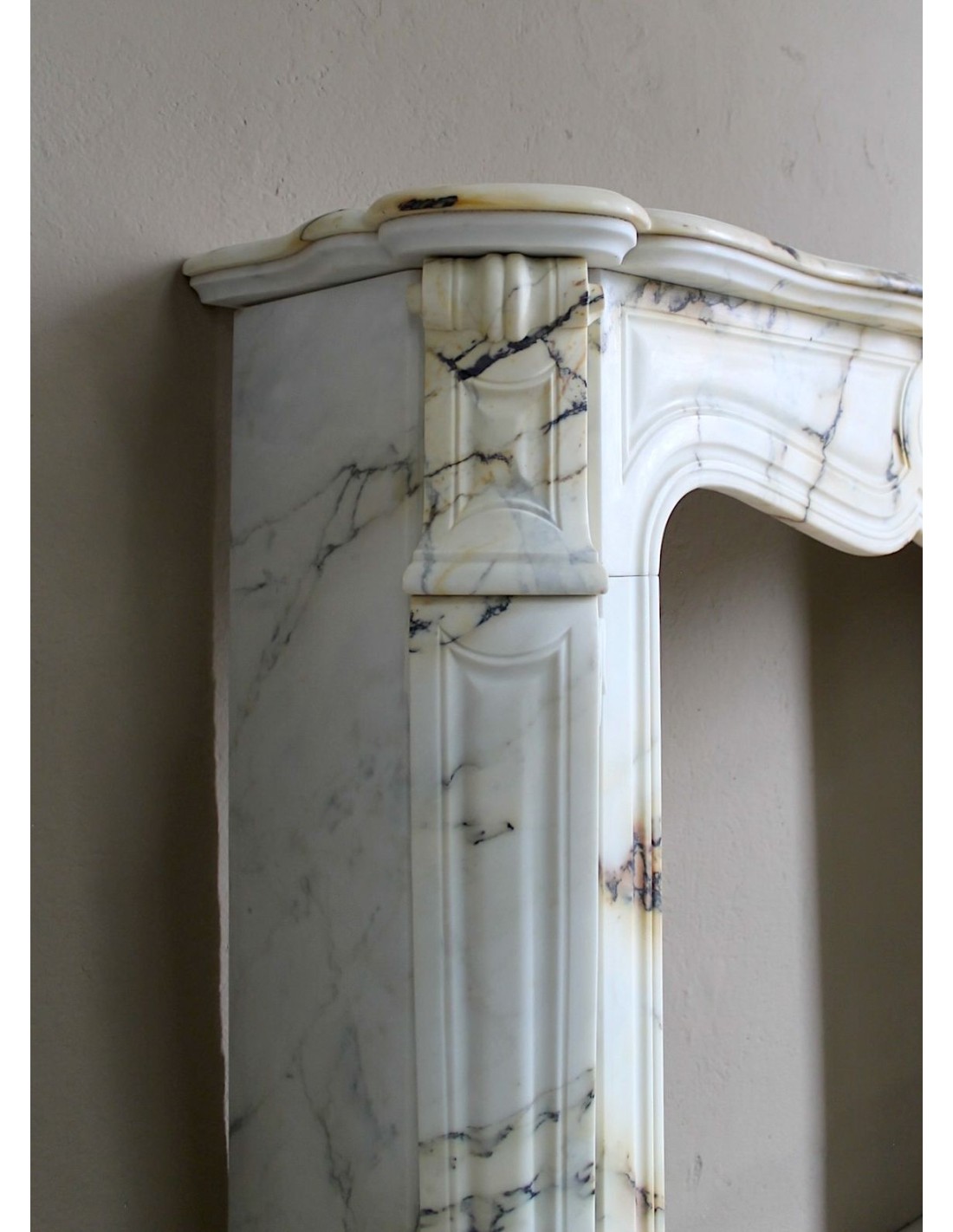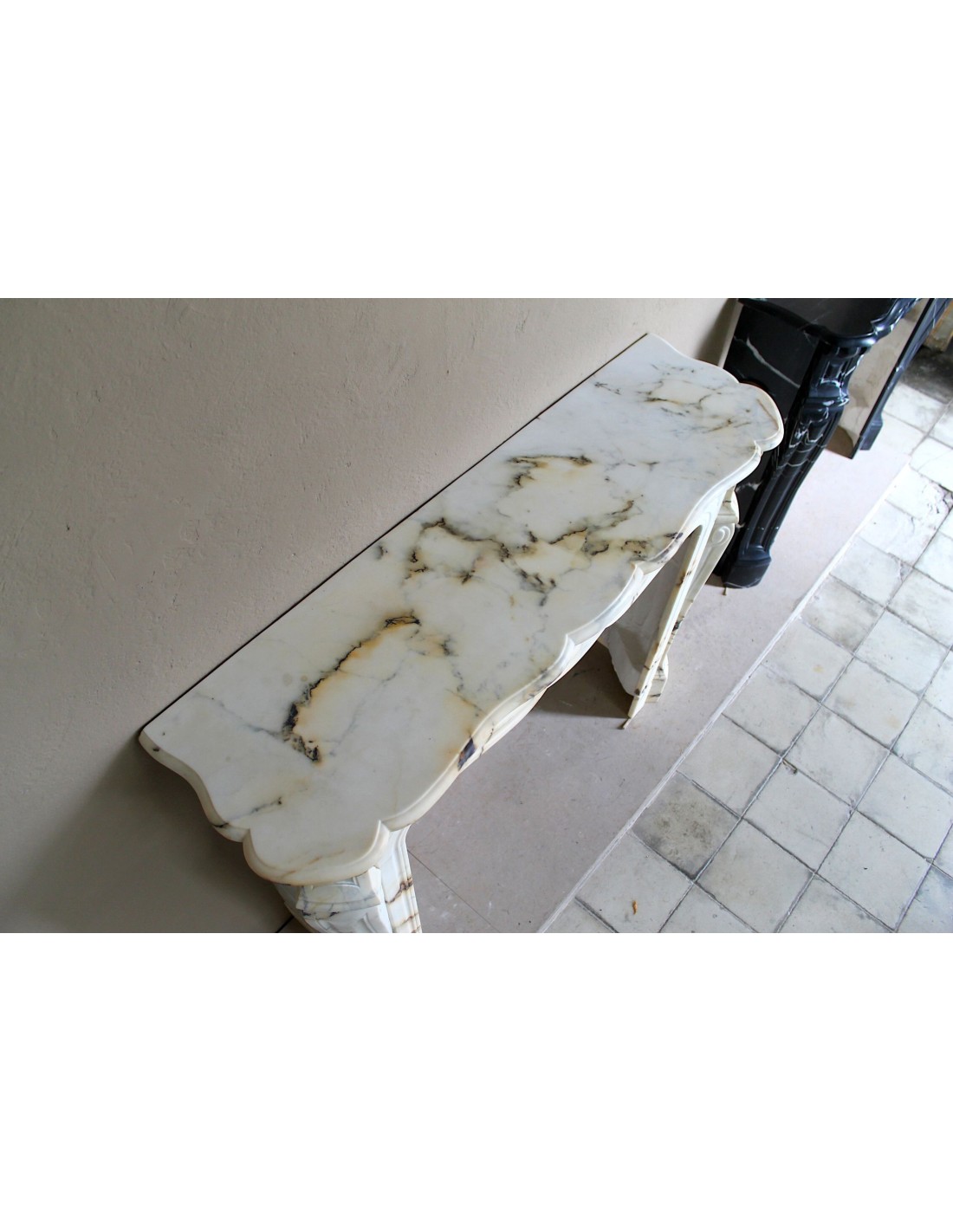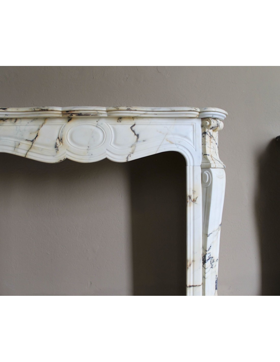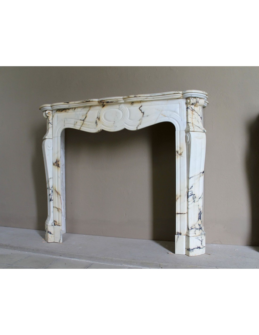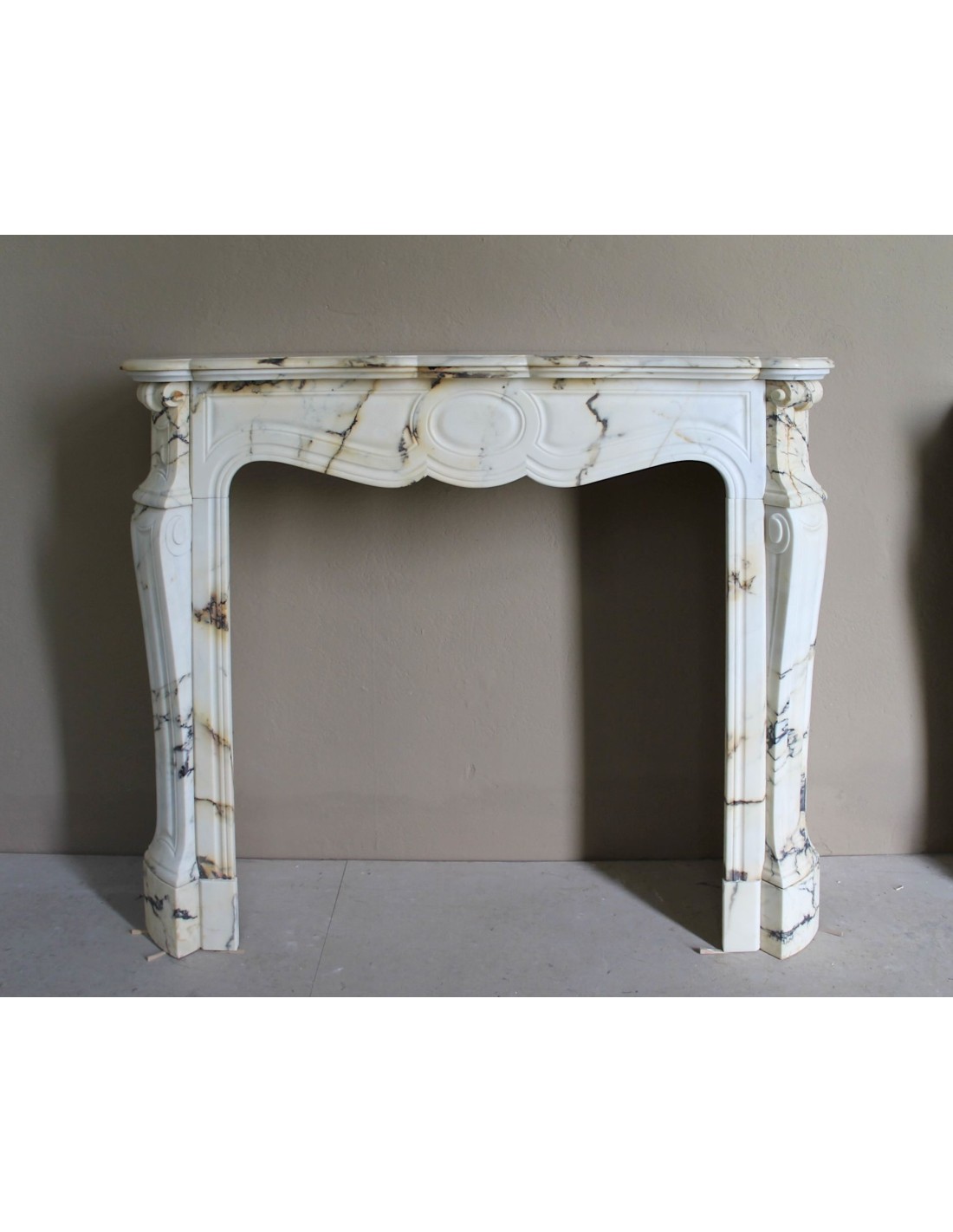 007 ANTIQUE LOUIS XV “PIED GALBÉ” FIREPLACE MANTEL CARVED IN PRECIOUS AND EXTREMELY ELEGANT PAONAZZETTO MARBLE